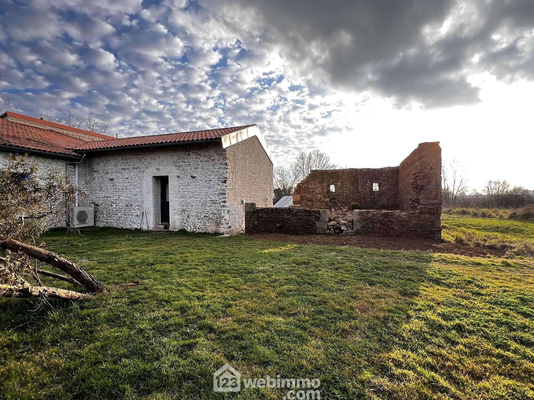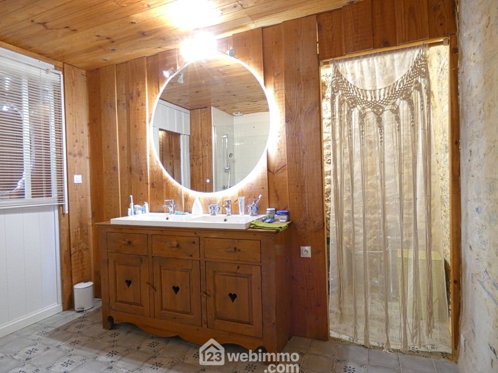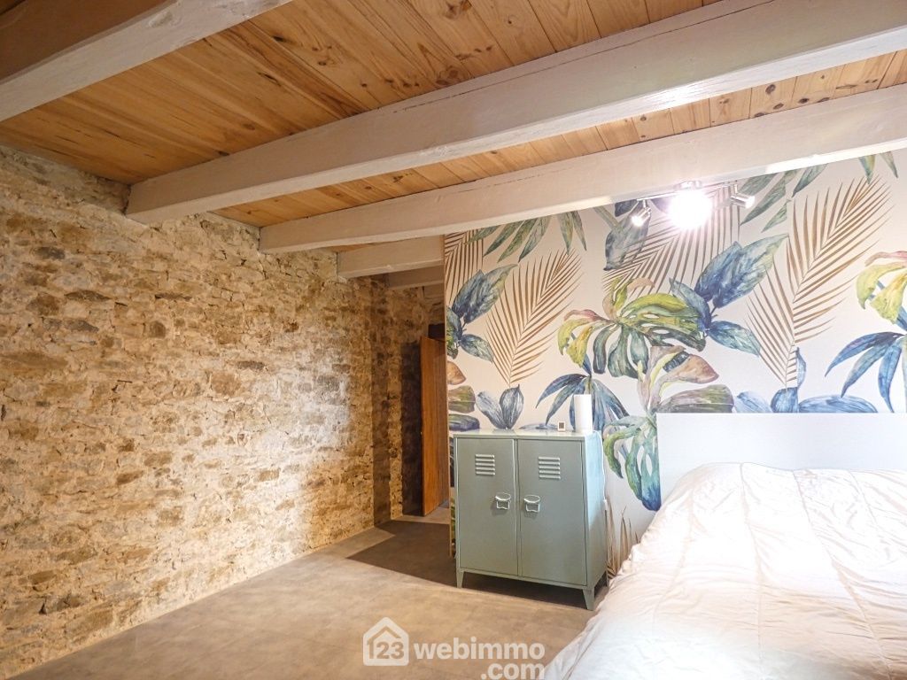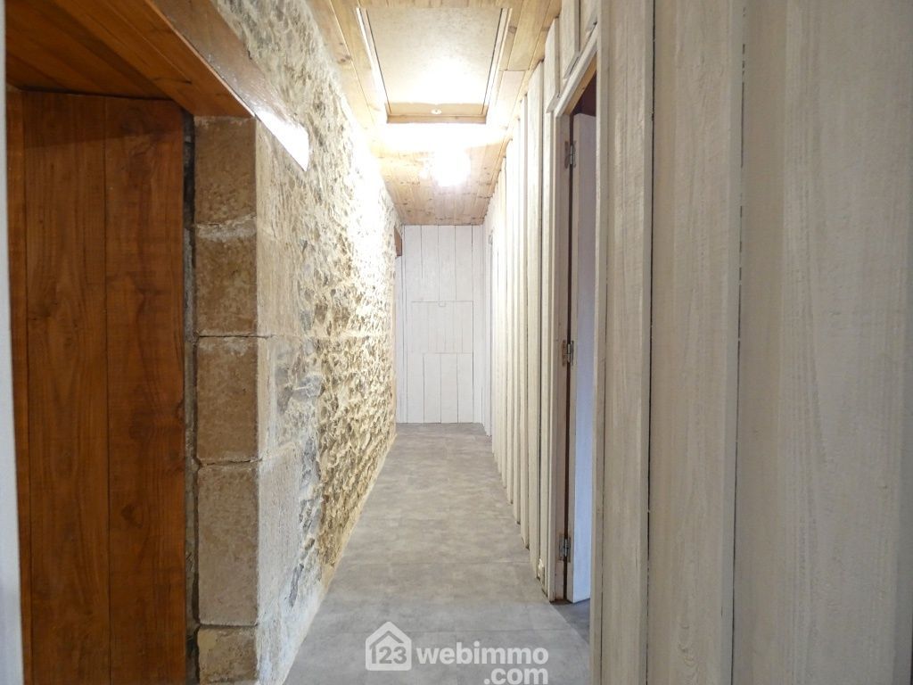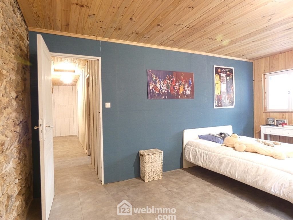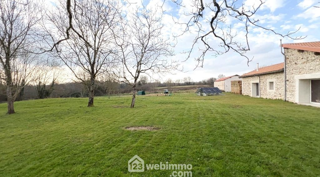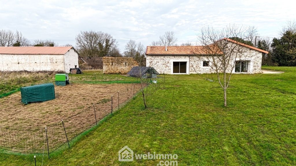 Propriété sans voisins avec maison de plain-pied entièrement rénovée avec des matériaux nobles : séjour (25 m2), cuisine aménagée et équipée (25 m2), salon avec poêle à bois (35 m2), 4 chambres de 9 à 25 m2 dont 1 équipée d'un grand dressing, salle d'eau, WC, lingerie, cellier avec chaufferie. Grange d'environ 102 m2, anciennes ruines en pierres, petits toits, barbecue, poulailler.