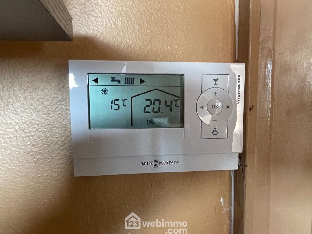 Pompe à chaleur avec thermostat d'ambiance de marque Viessmann de moins d'un an. Isolation extérieure et changement des huisseries avec volets roulants électriques entre 15 et 20 ans.
