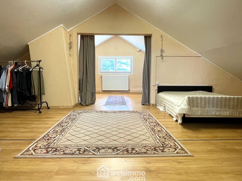 A l'étage : en enfilade, une pièce mansardée avec pièce d'eau et WC, 2 chambres.