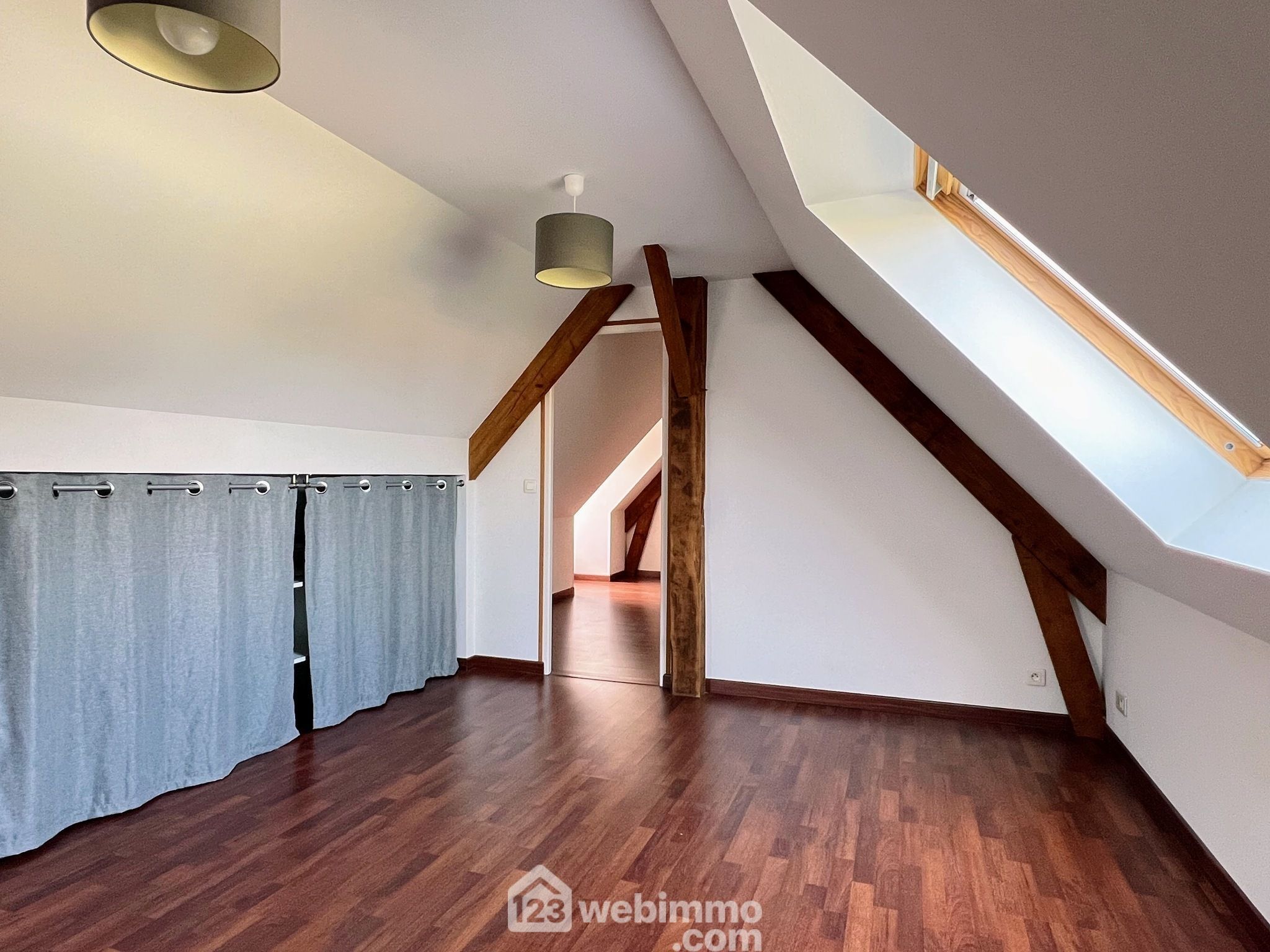 À l’étage, une mezzanine dessert deux grandes chambres (14 et 13 m²), une vaste pièce pouvant servir d’espace jeux ou de bureau, une salle de douche neuve et des WC séparés.
