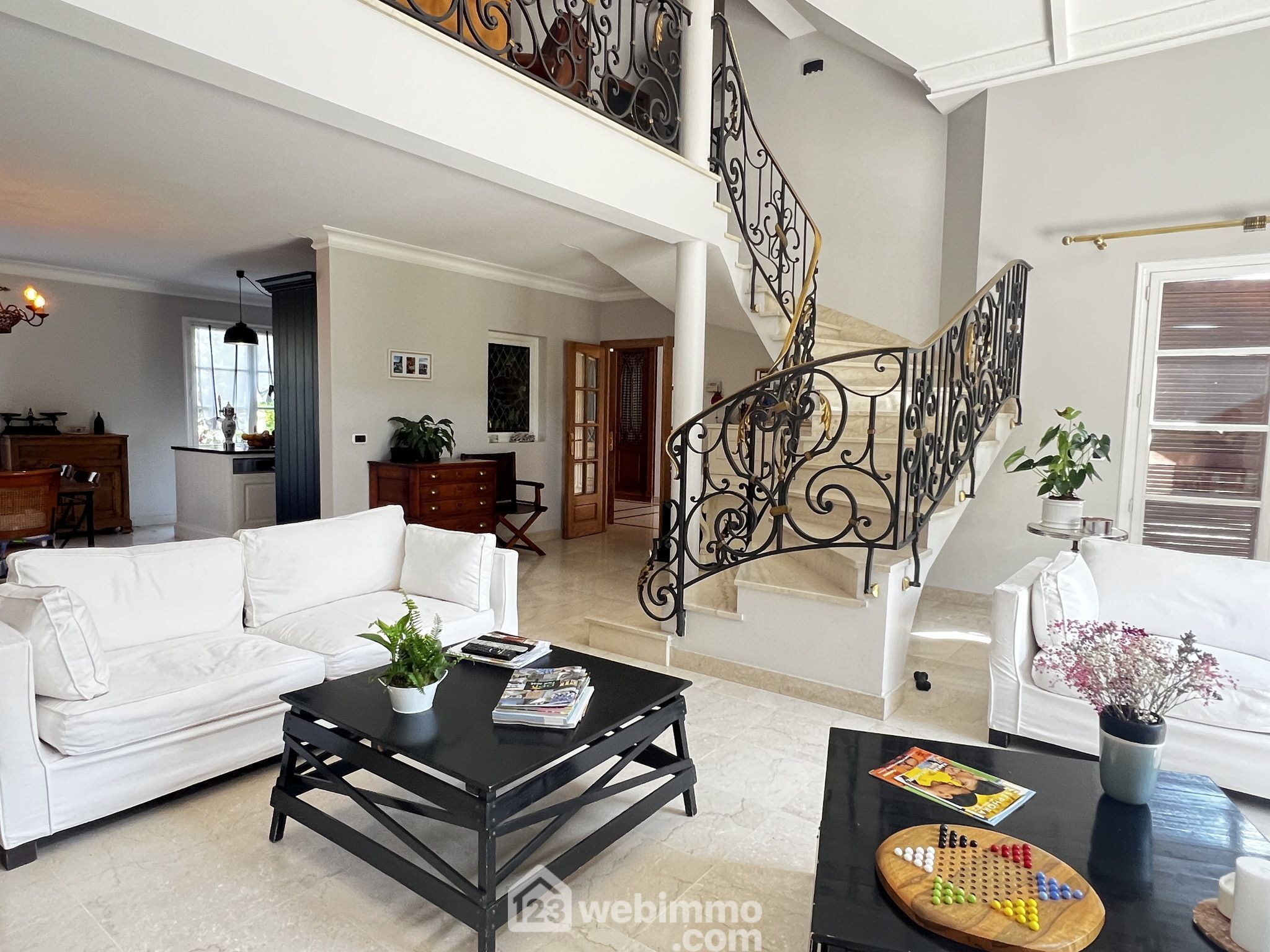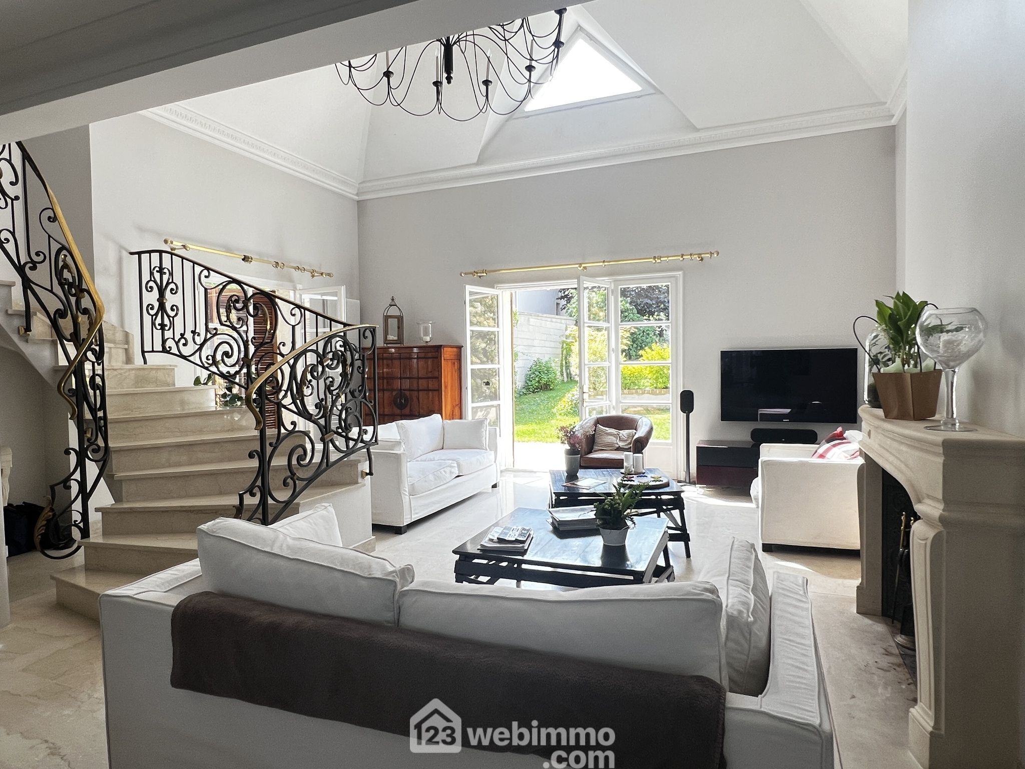 Le séjour cathédrale, véritable pièce d’exception, bénéficie d’une luminosité remarquable grâce à de larges ouvertures sur le jardin. Cheminée, hauteur sous plafond,...