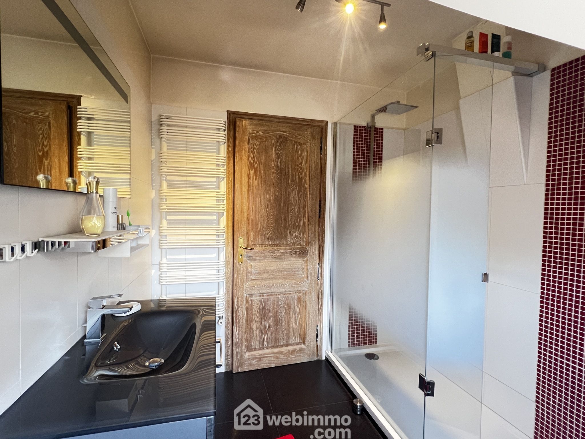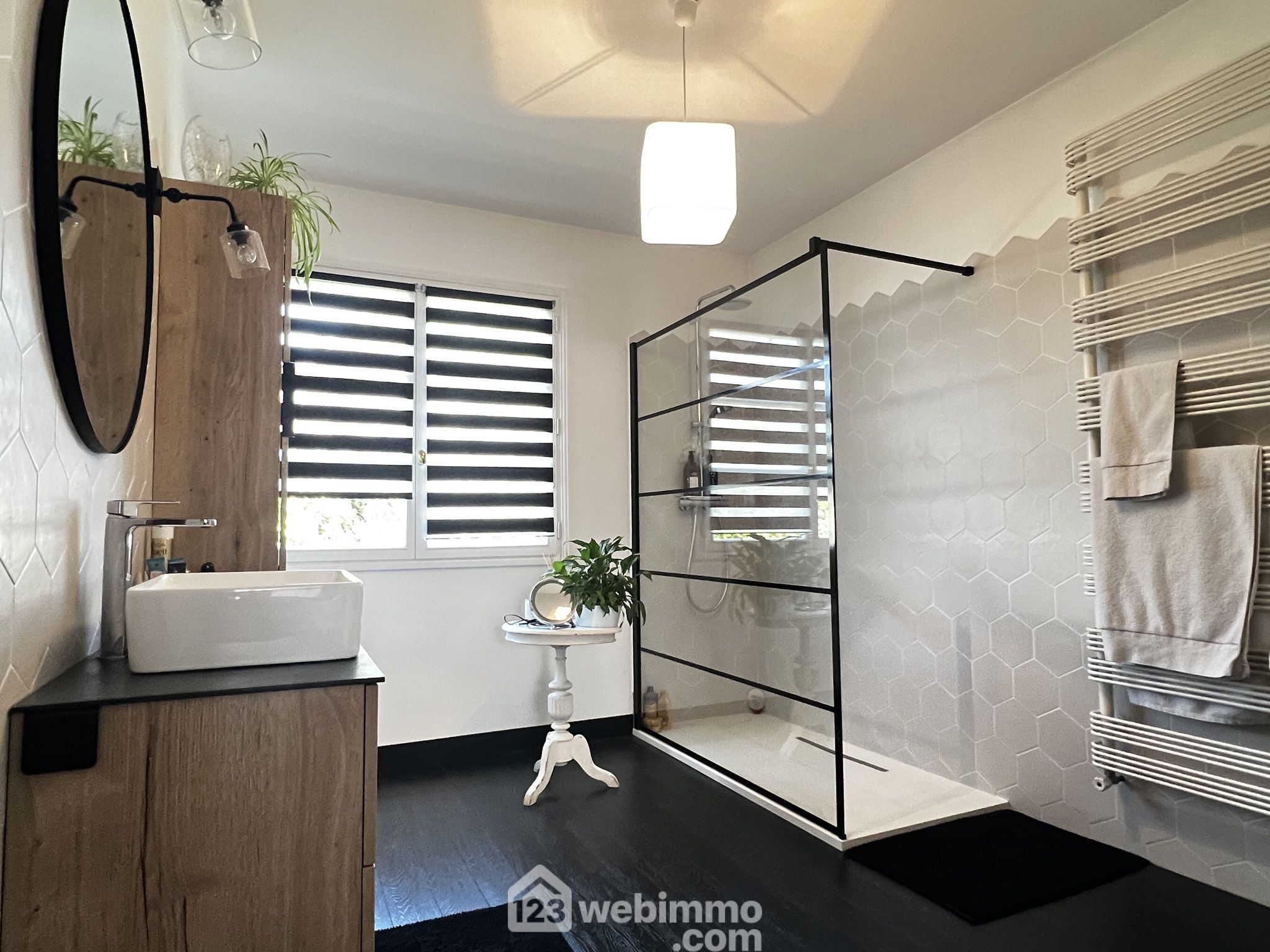 À l’étage, une vaste mezzanine, idéale pour un bureau ou tout autre espace, distribue deux belles chambres, une salle d’eau et un wc séparé, offrant un niveau dédié aux enfants.