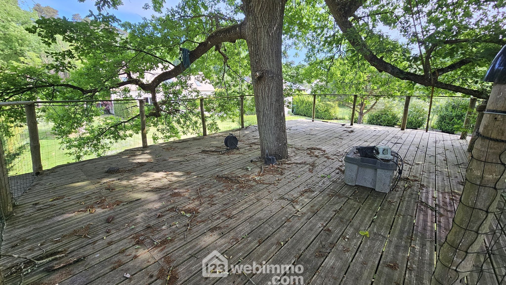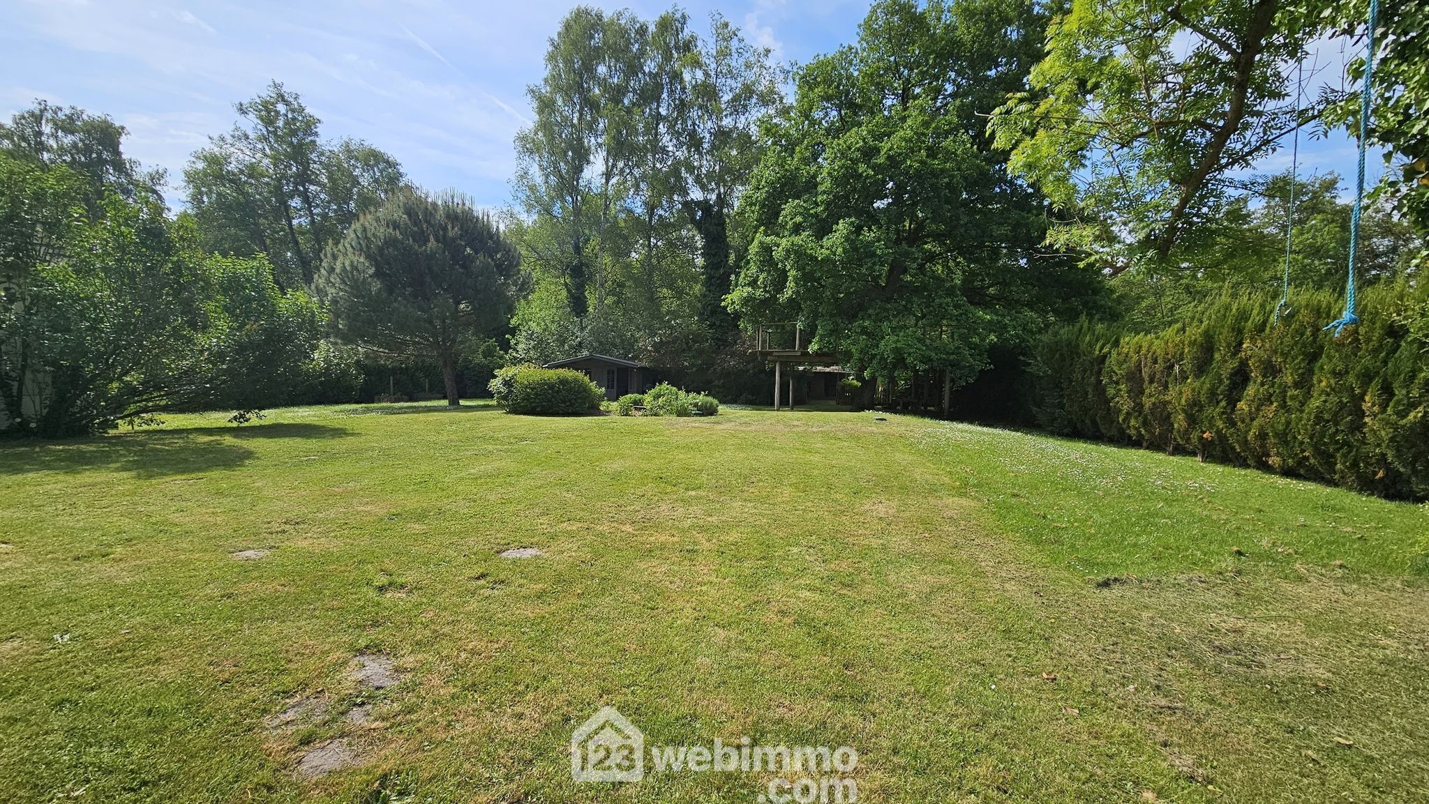 À l’extérieur, deux chalets, une plateforme perchée dans un arbre pour les aventuriers en herbe, et un magnifique jardin arboré de 2611 m², clos et sans vis-à-vis, créent un véritable havre de paix.