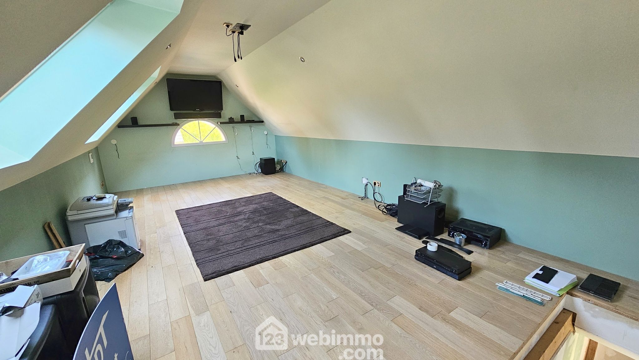 À l’étage, une mezzanine spacieuse de 25 m² offre un bel espace ouvert pouvant servir de bureau ou de salle de jeux. Trois chambres confortables, une salle d’eau communicante, ainsi qu’une suite parentale avec salle d’eau/bain et dressing complètent ce niveau. Un second WC indépendant est également présent.