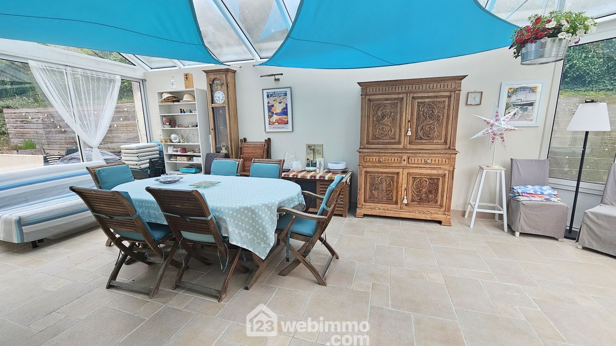 Dès l’entrée, la maison dévoile des espaces lumineux et chaleureux. La spacieuse cuisine de 21 m², moderne, entièrement aménagée et équipée, dispose d’un agréable coin repas, idéal pour les moments du quotidien. Elle s’ouvre sur un grand séjour traversant d’environ 50 m², baigné de lumière, qui se prolonge naturellement vers une véranda de 30 m², offrant un espace supplémentaire très apprécié pour profiter du jardin en toute saison.