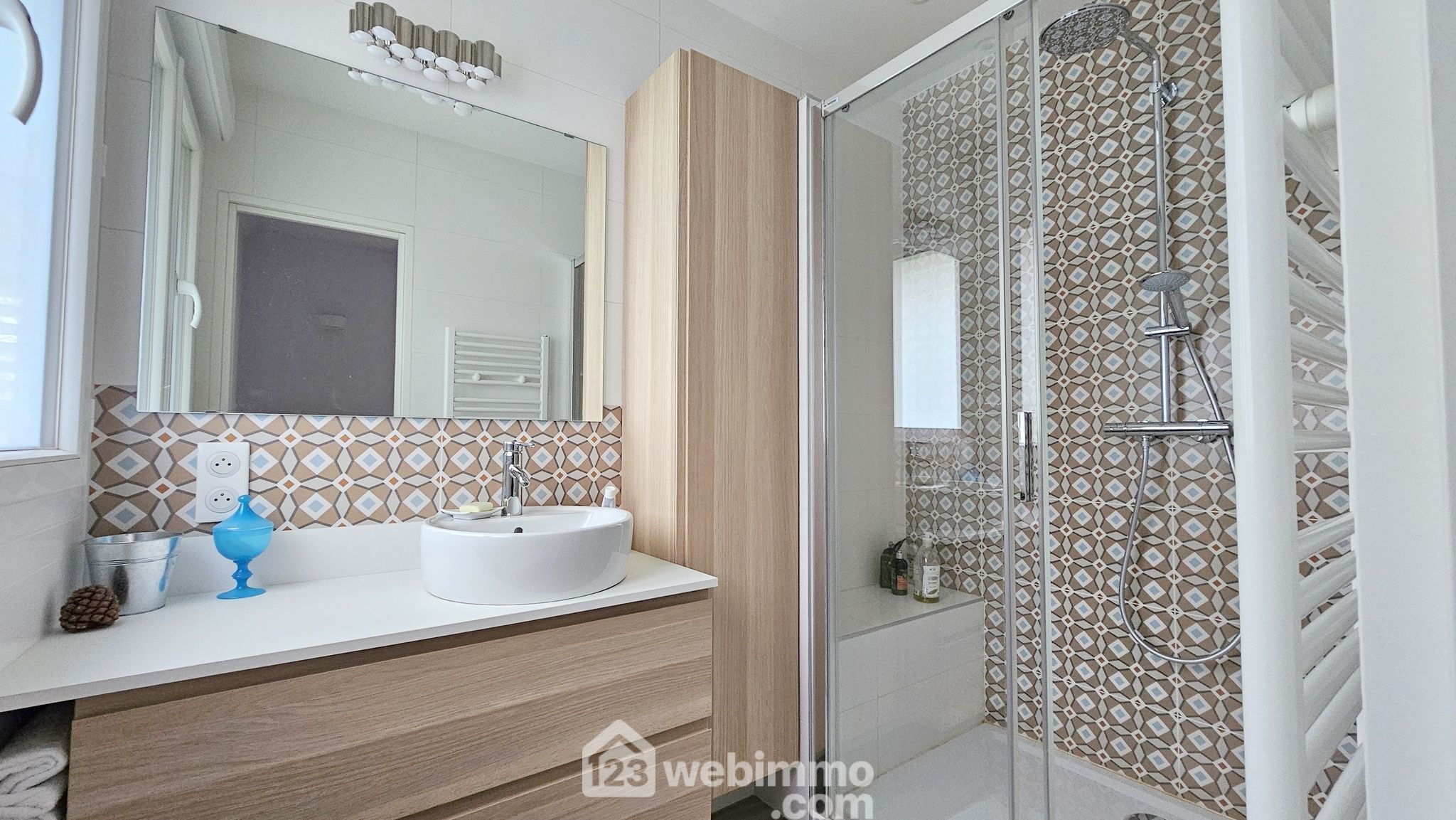Le rez-de-chaussée permet une véritable vie de plain-pied grâce à une suite parentale comprenant une chambre confortable, une salle d’eau attenante ainsi qu’un WC.