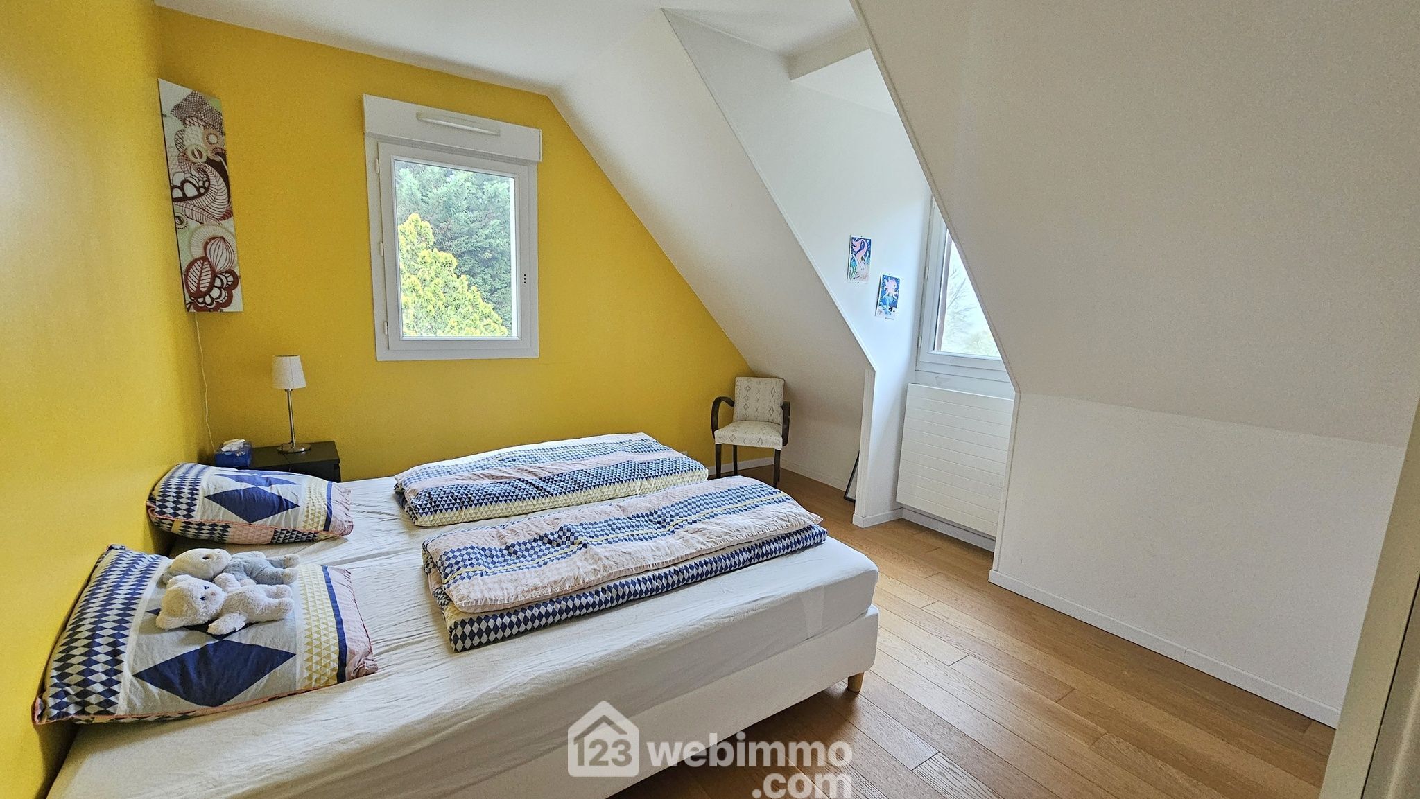 À l’étage, une mezzanine dessert quatre chambres, toutes avec rangements, ainsi qu’une salle de bains/salle d'eau, une salle d’eau supplémentaire et un WC séparé, offrant un espace nuit parfaitement adapté à la vie de famille.