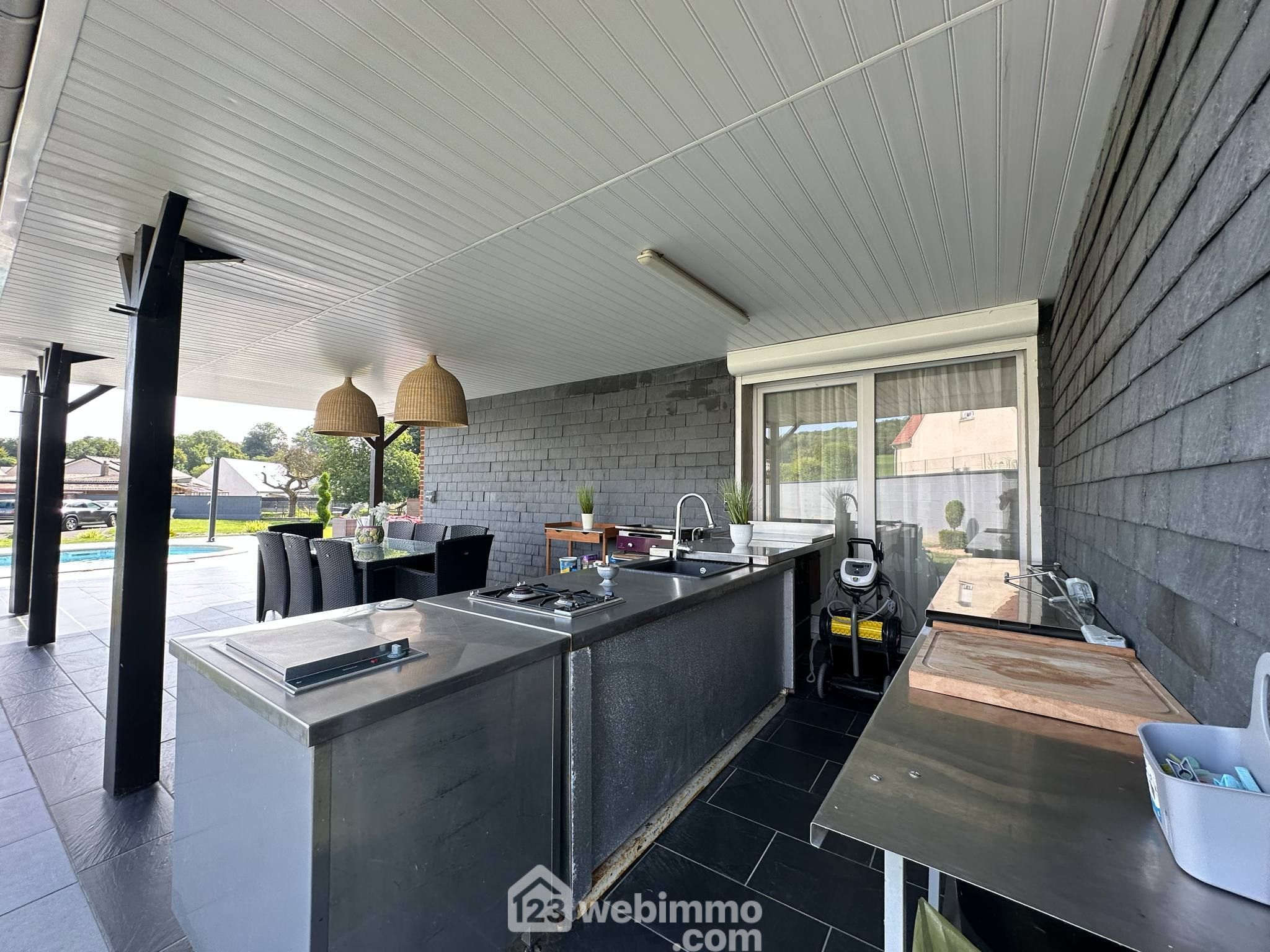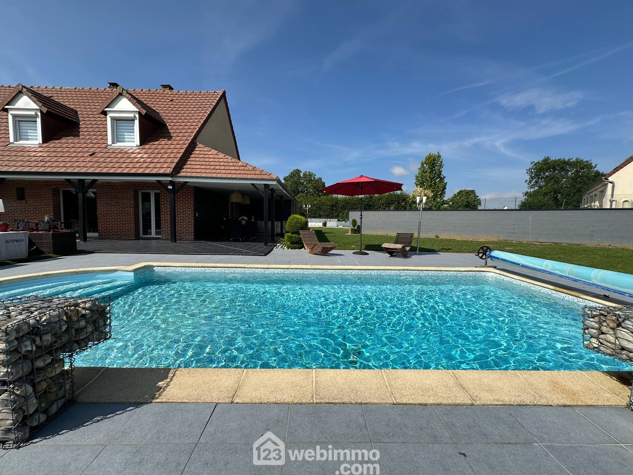 À l’extérieur, vous serez charmés par un cadre paisible et convivial : piscine, cuisine d’été, jardin clos de 2 359 m², portail motorisé et parking pour plusieurs véhicules. Un véritable havre de paix pensé pour la vie en famille et les moments de partage.