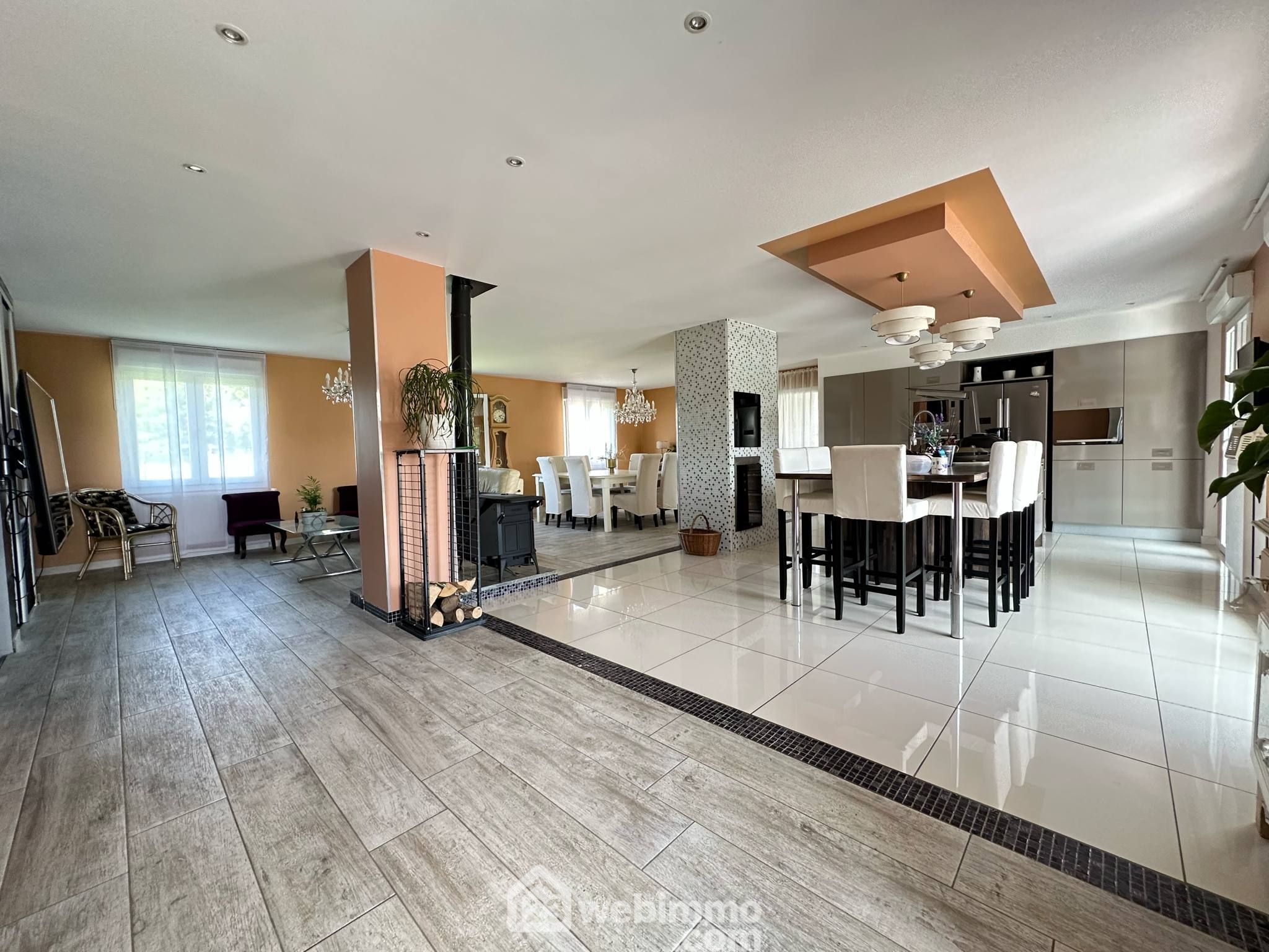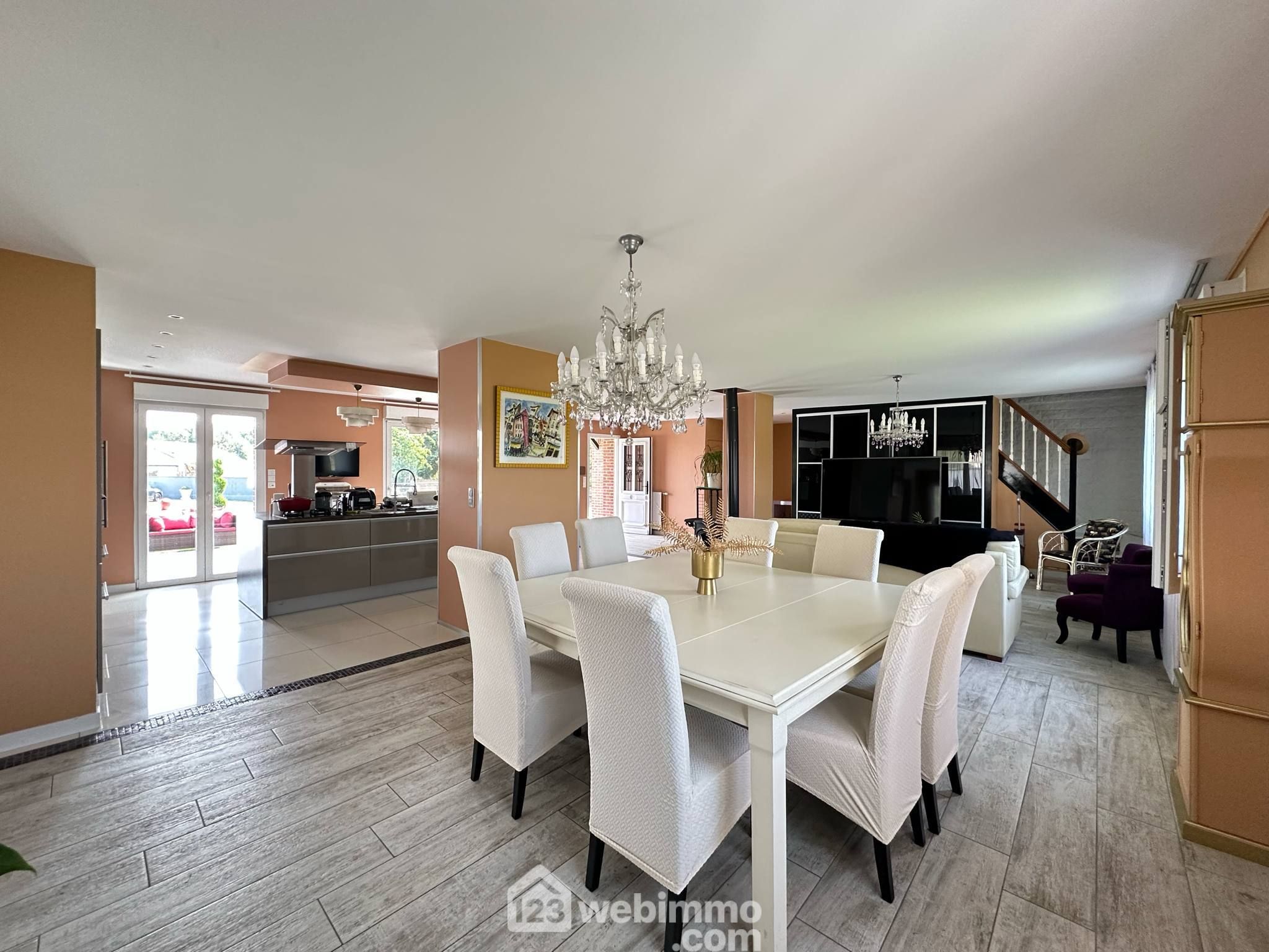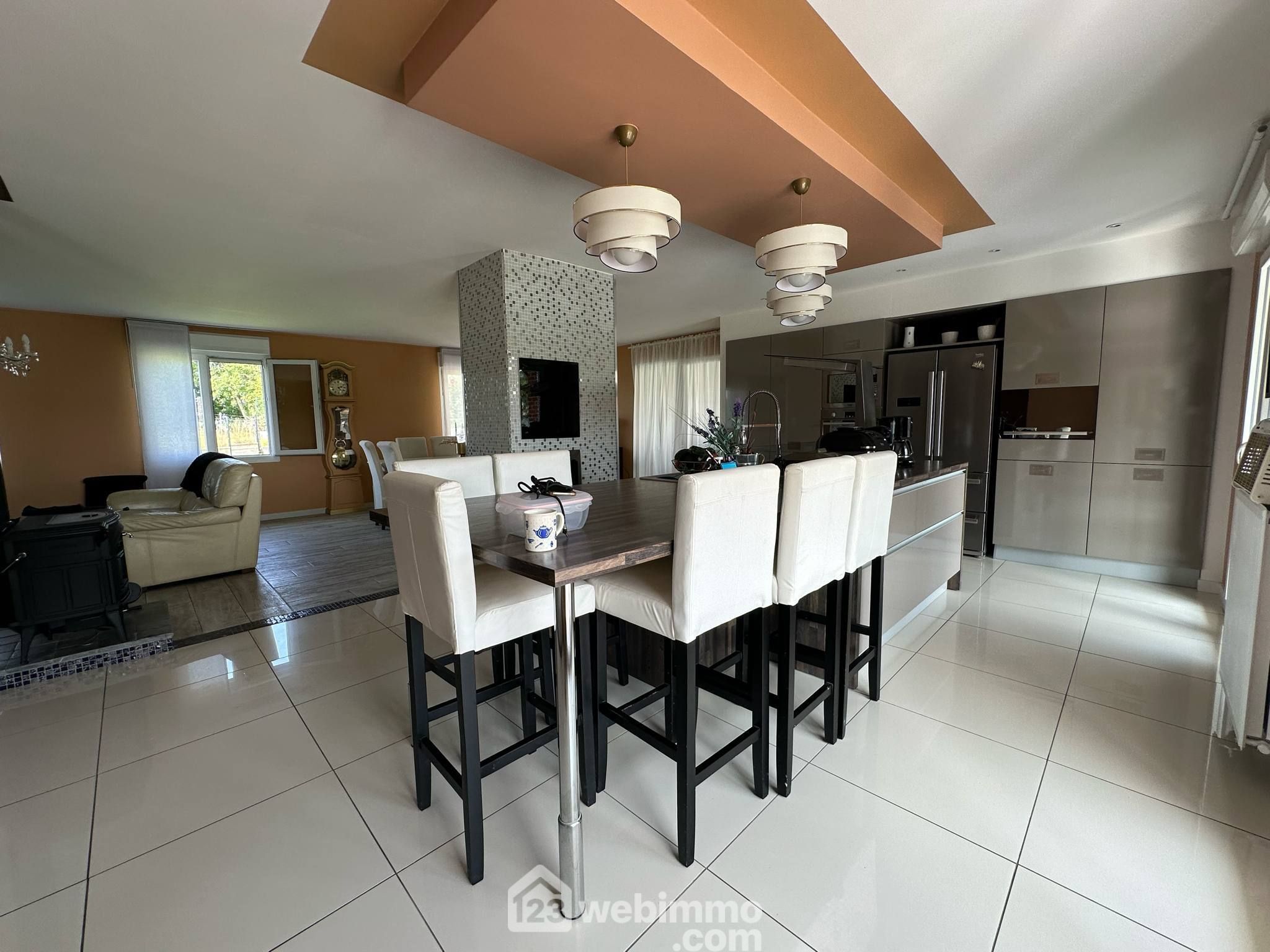 Découvrez cette magnifique maison coup de cœur, offrant une surface habitable de 204 m² avec commodités de plain-pied, posée sur un sous-sol complet. Vous y trouverez une superbe pièce de vie lumineuse de 74 m², ouverte sur une cuisine entièrement équipée avec son espace repas, 5 chambres, un bureau, et deux salles de bains.