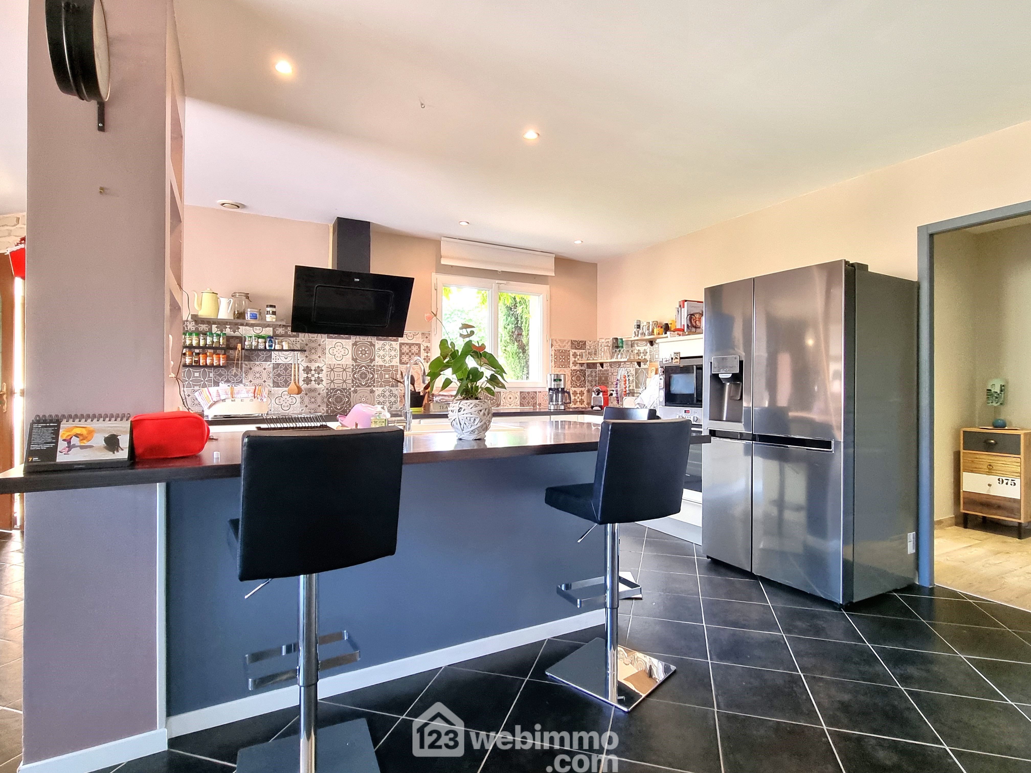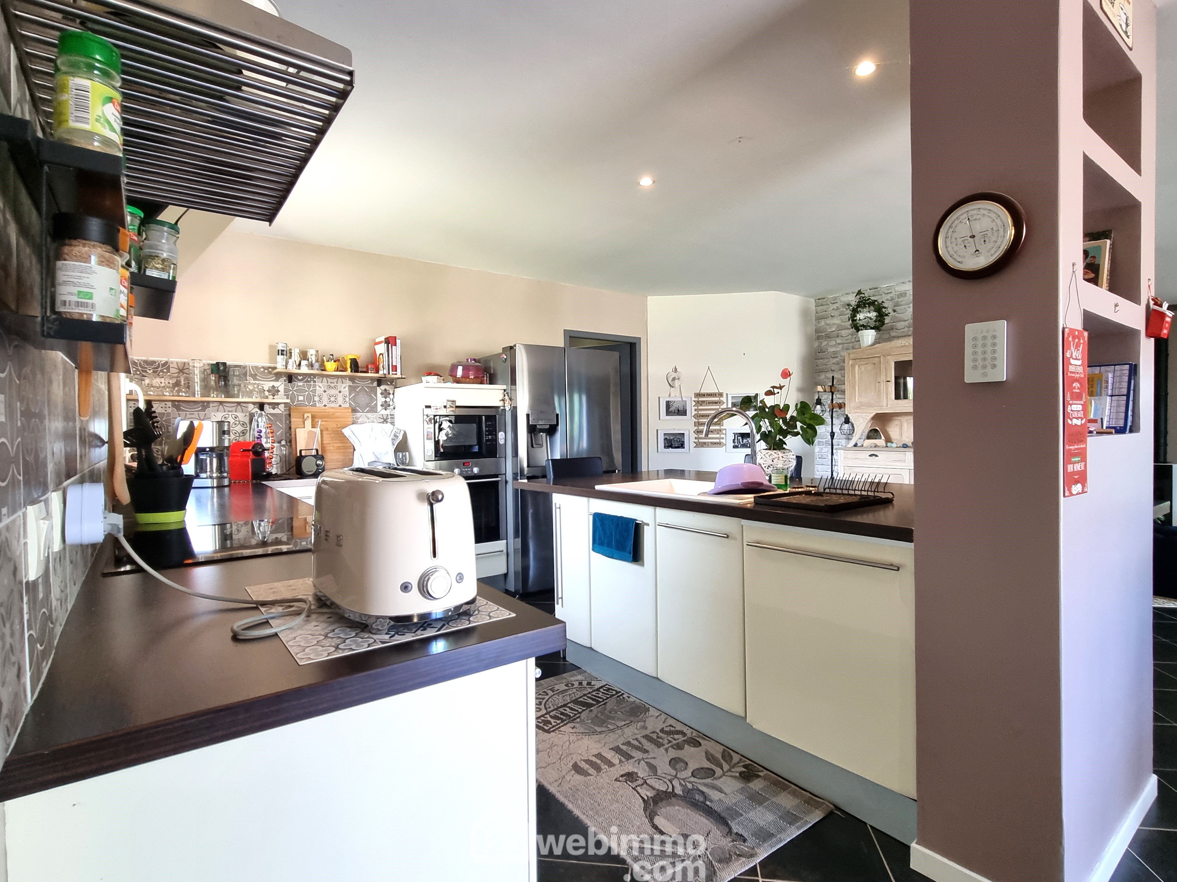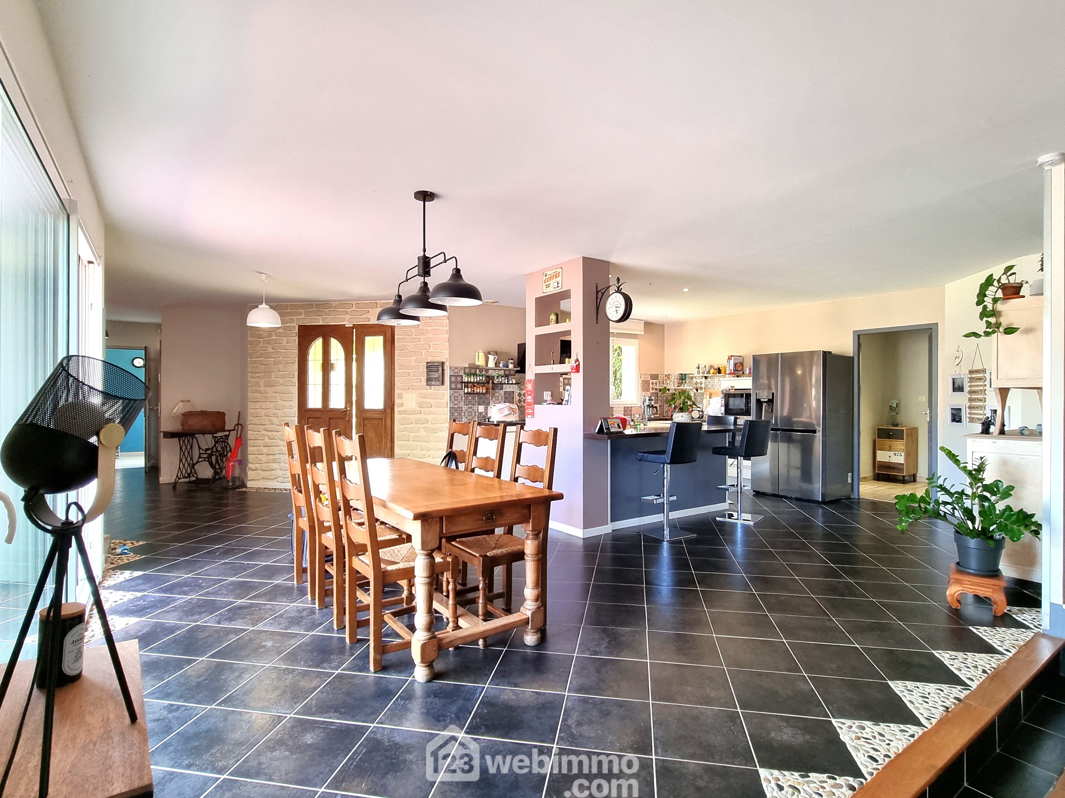 86380 Chabournay. A 5 mn de Neuville de Poitou, 15 mn du futuroscope et 20 mn de Poitiers. Proche commerces, commodités, écoles. Villa au calme. Vaste entrée, salon-séjour, cuisine ouverte façon US aménagée et équipée, 6 chambres dont 1 suite parentale avec salle d'eau / WC et placard, bureau, salle d'eau, cellier / chaufferie, buanderie, WC indépendant avec lave mains. Piscine chauffée 9 x 4, terrasse bois avec store banne électrique, adoucisseur, chauffage hydraulique par pompe à chaleur, cabanon de jardin, local technique piscine. Assainissement collectif. Un ensemble édifié sur un terrain paysager, entretenu et sans vis-à-vis.