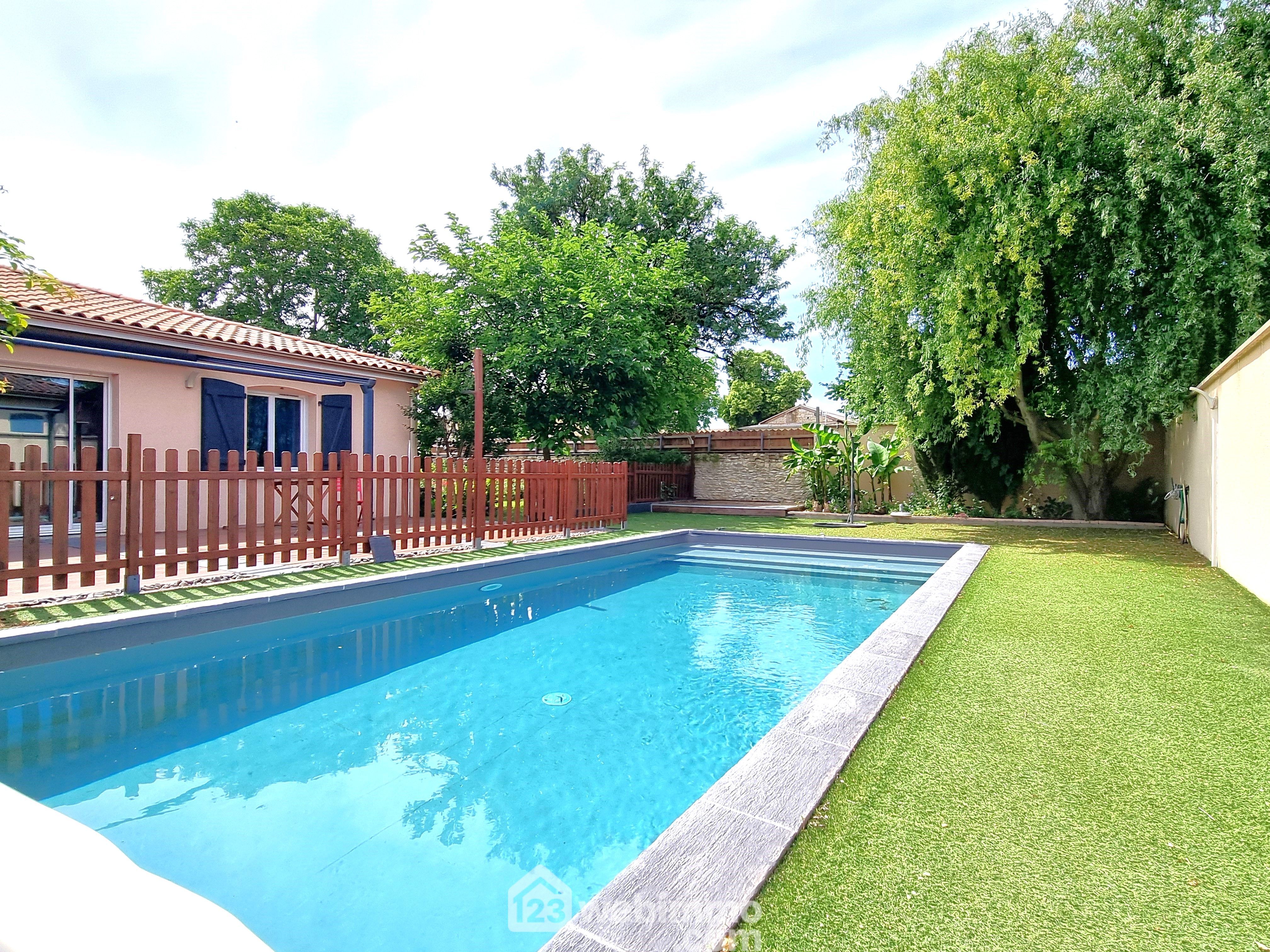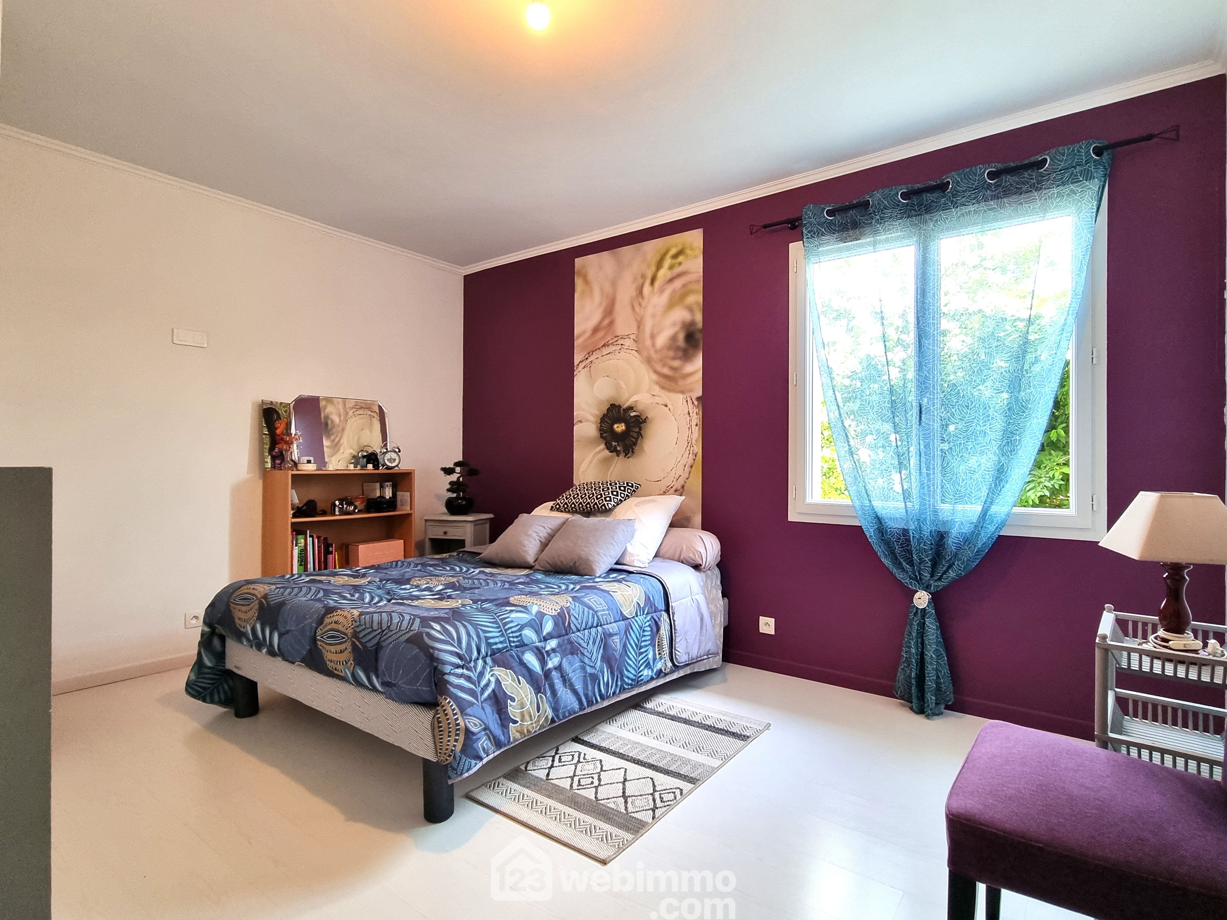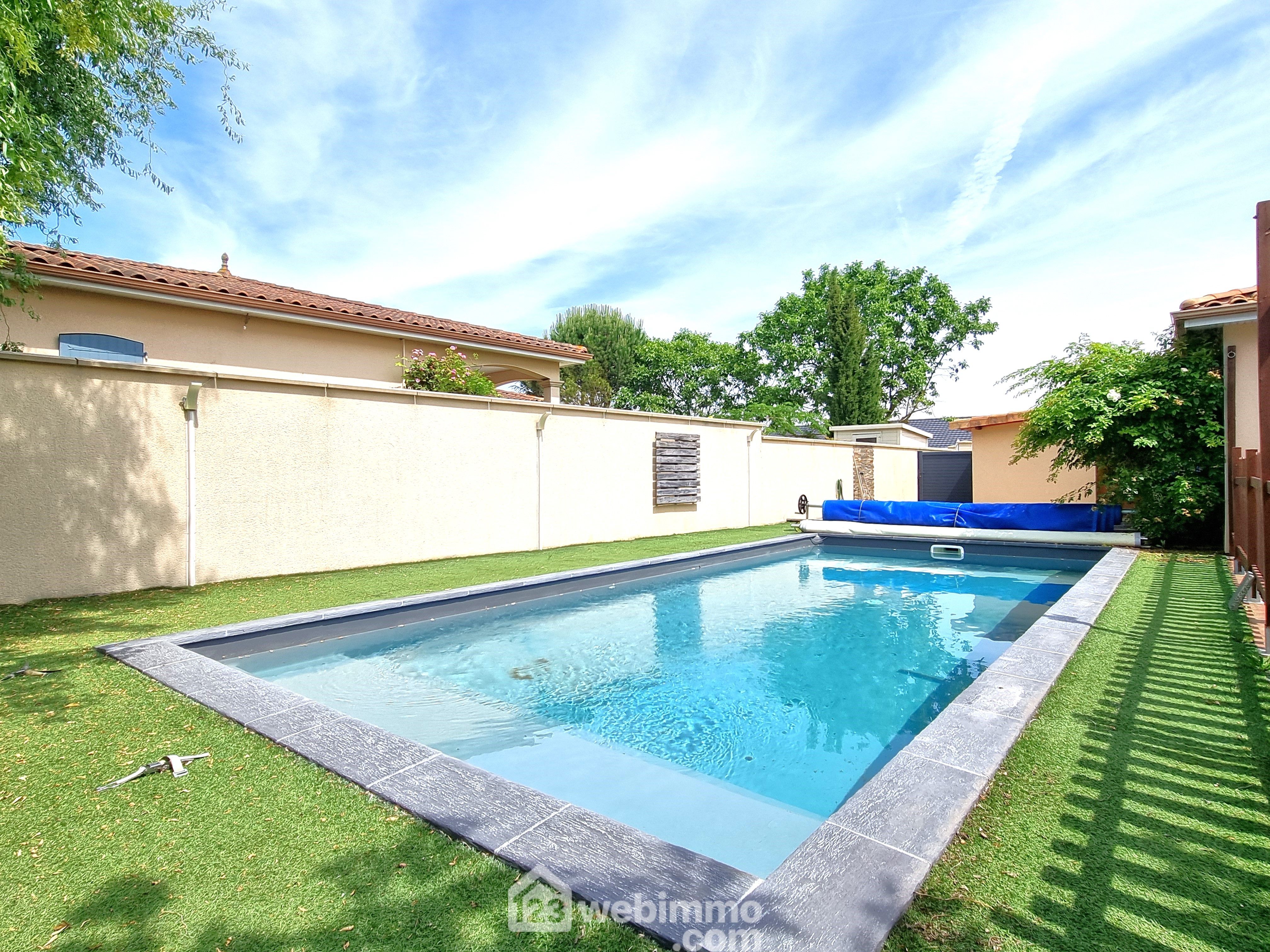 Villa de plain-pied, 207 m2 habitables, 8 pièces, 6 chambres, bureau, piscine chauffée, terrain de 1418 m2.