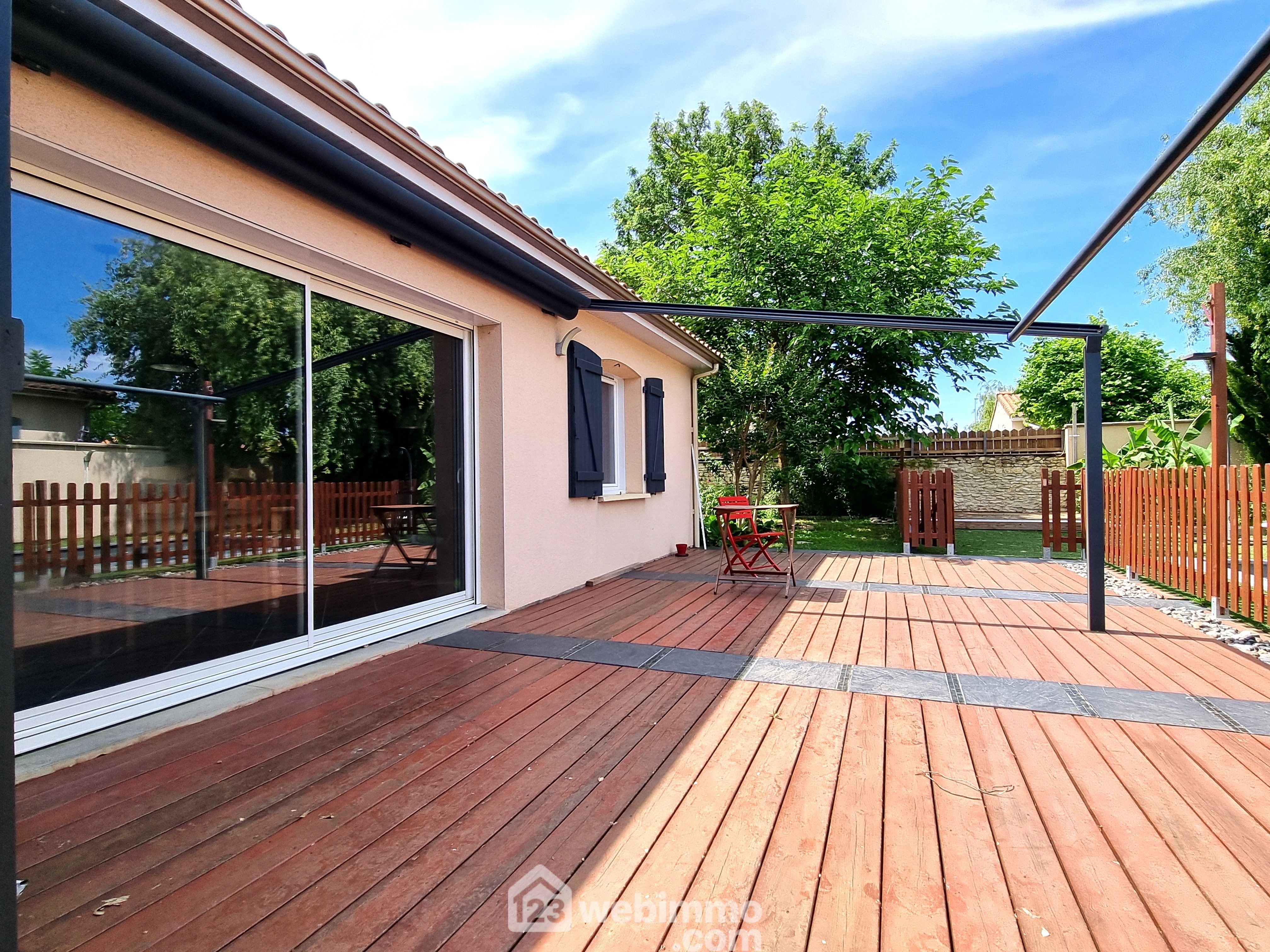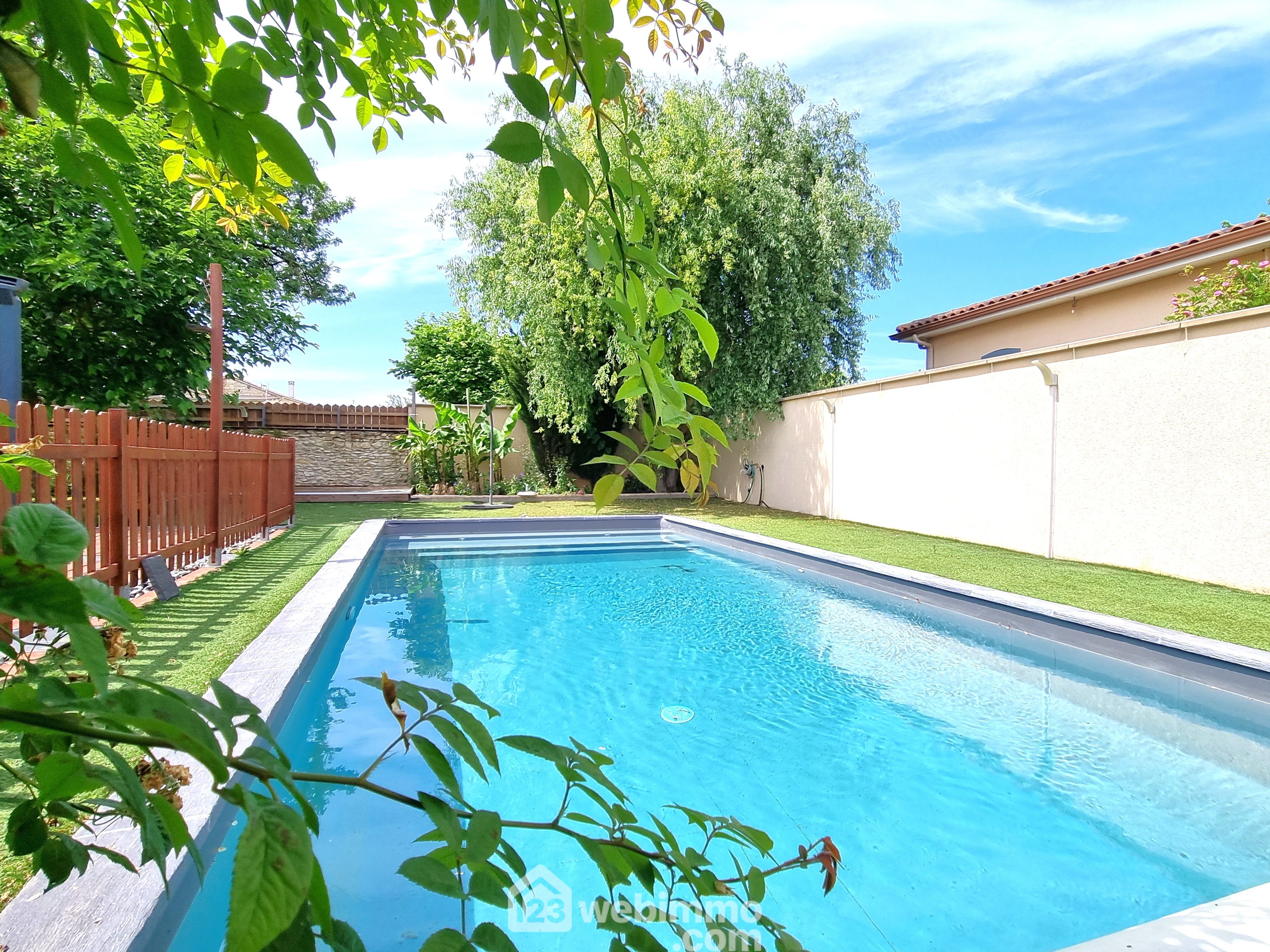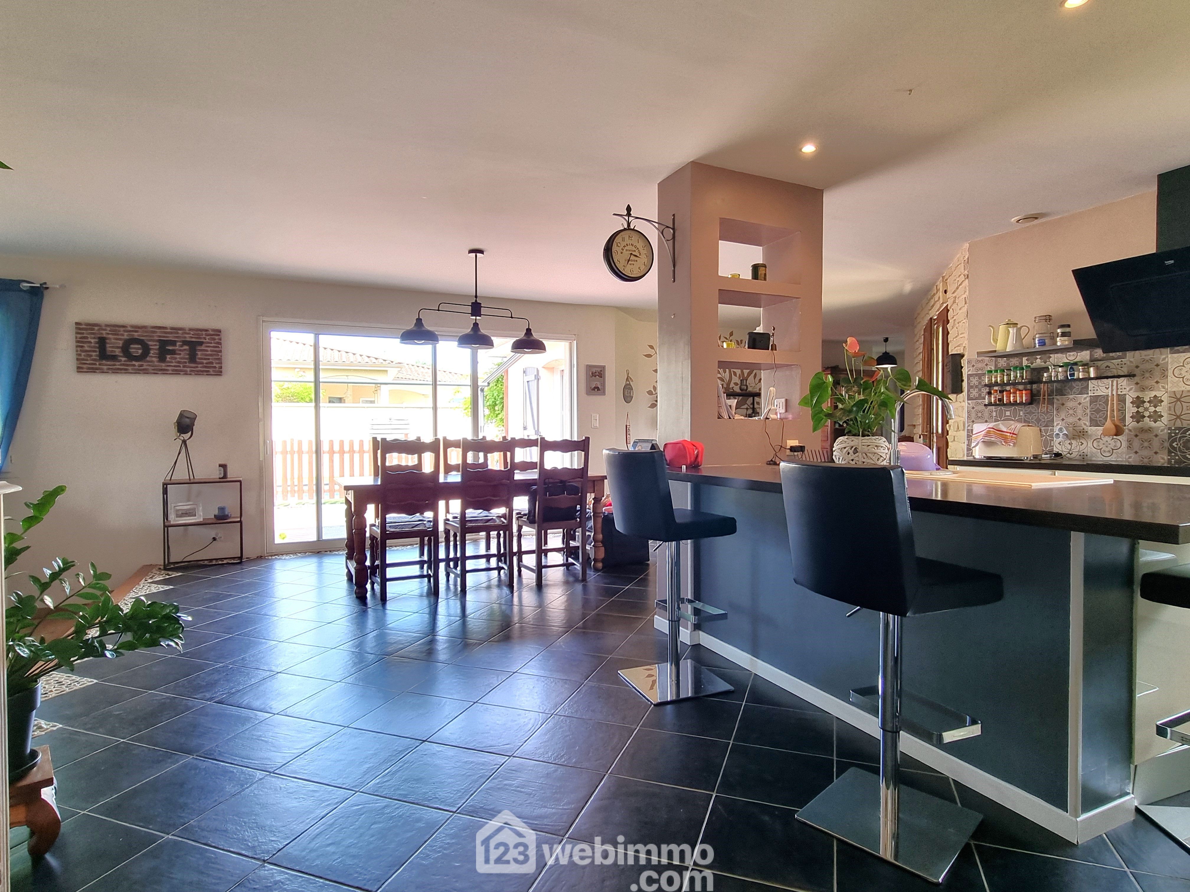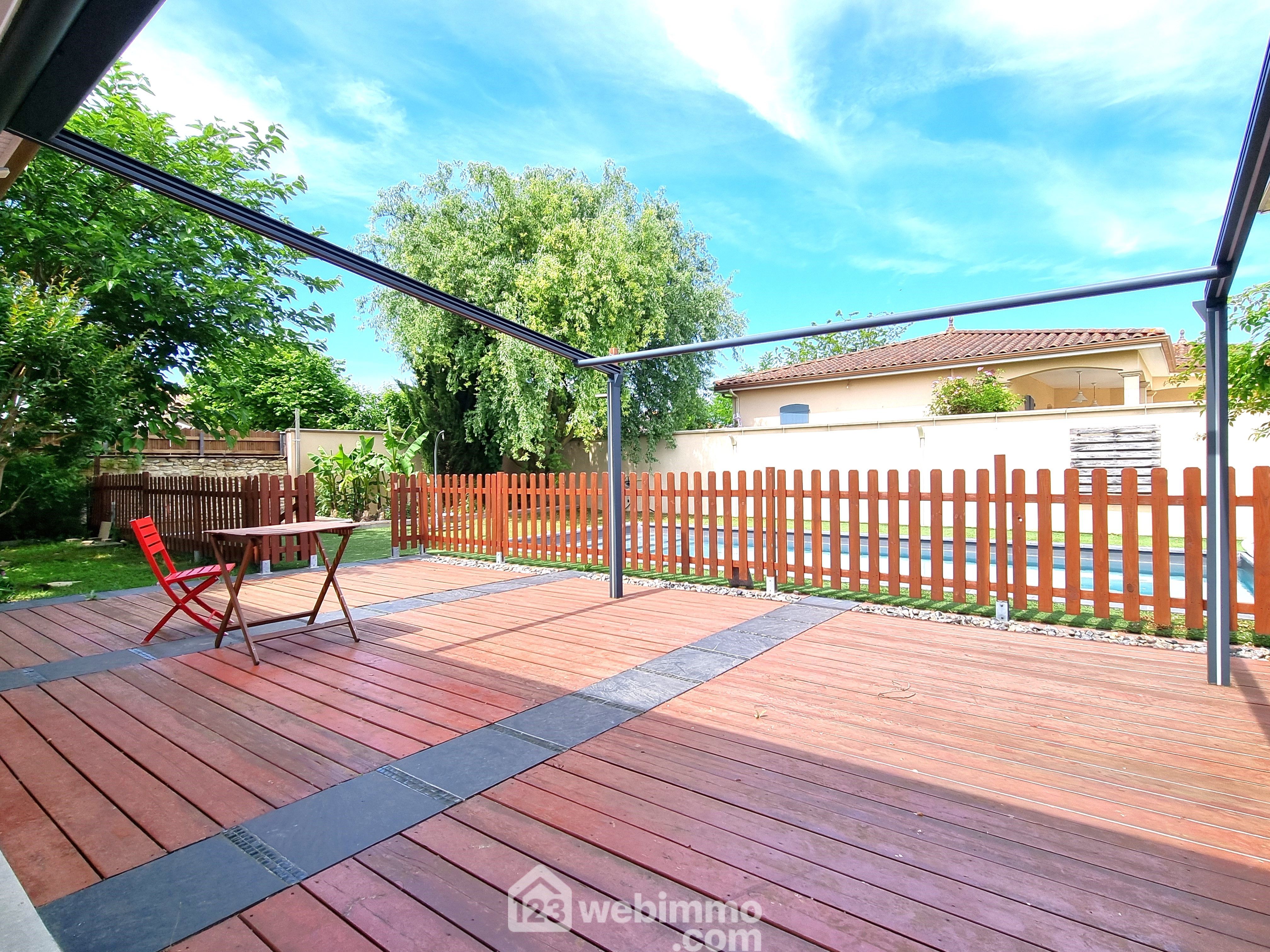 Villa de plain-pied, 207 m2 habitables, 8 pièces, 6 chambres, bureau, piscine chauffée, terrain de 1418 m2.