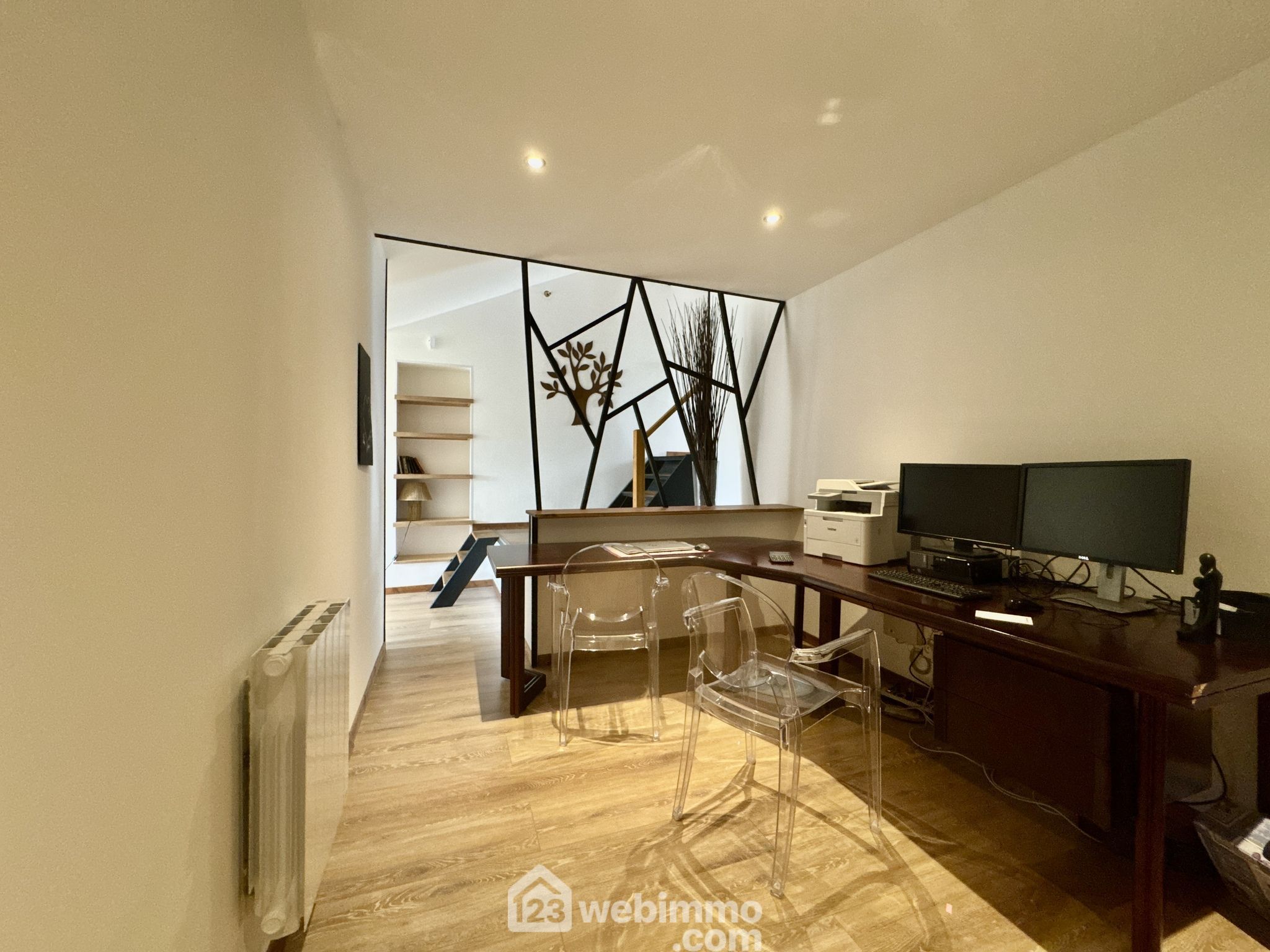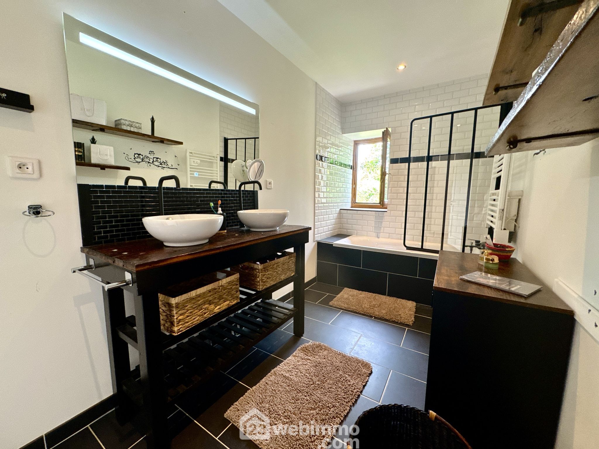 L’étage se compose d’un palier distribuant quatre chambres lumineuses, un bureau idéal pour le télétravail, un dressing, deux salles de bain.