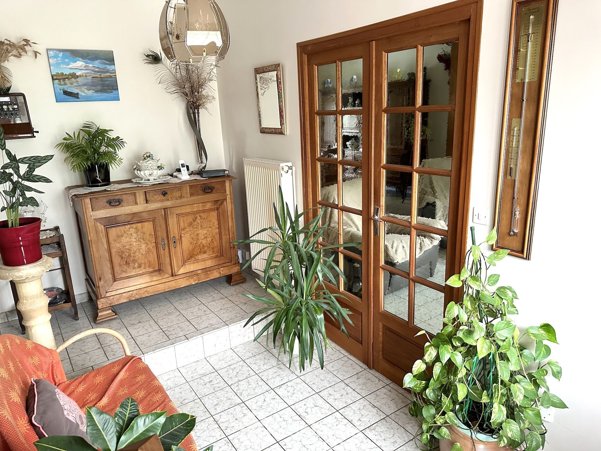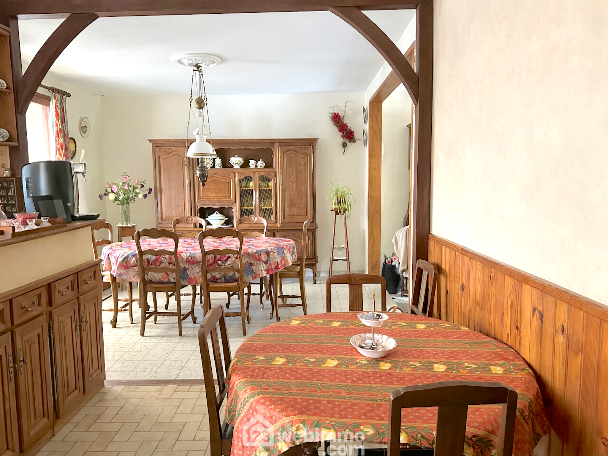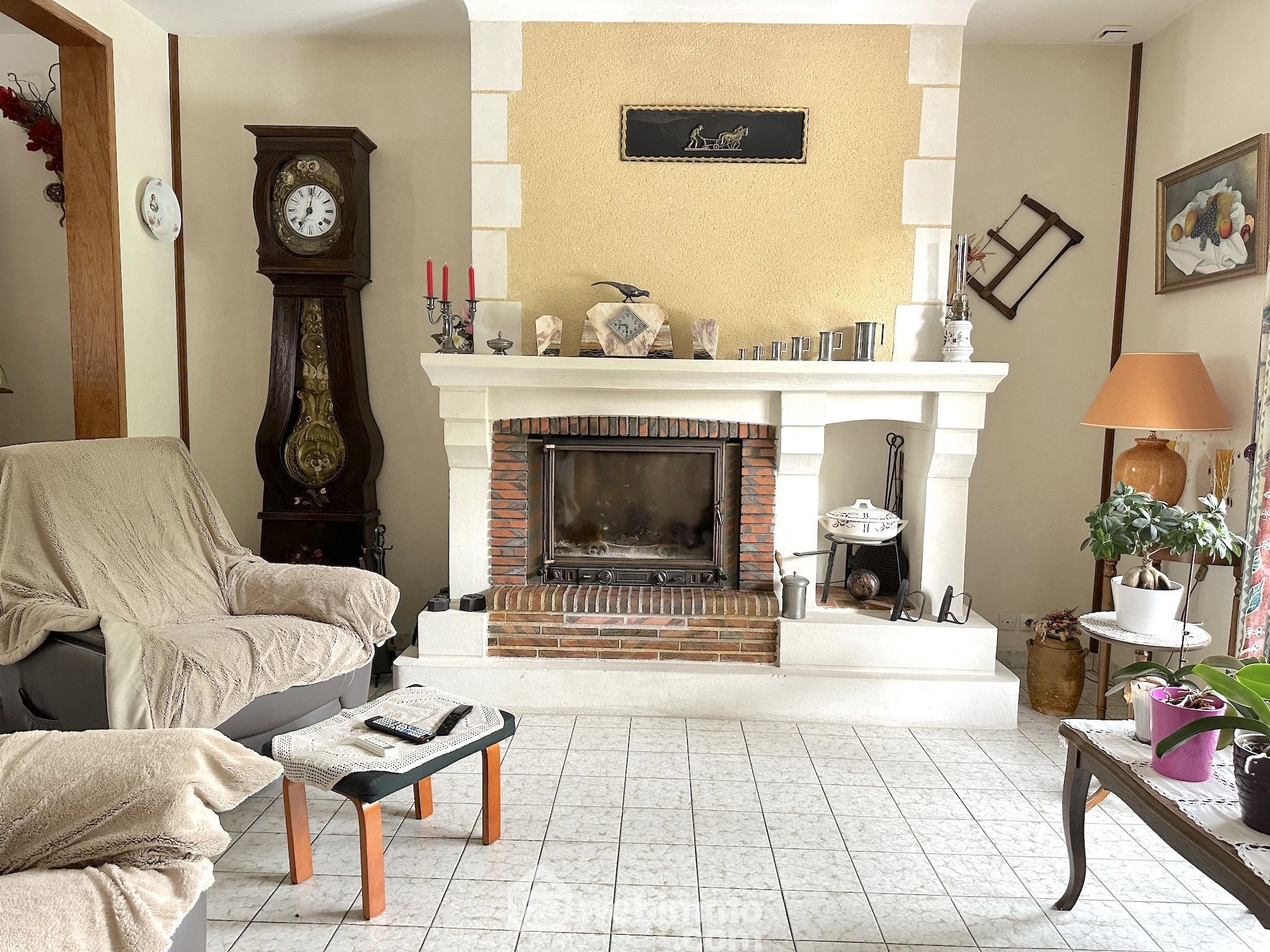 Côté prestations : chauffage au gaz complété par un insert bois dans le salon, combles isolés par soufflage de laine de roche, menuiseries bois double vitrage avec volets roulants électriques, toiture en ardoises naturelles et assainissement individuel. Des panneaux solaires sont utilisés pour la revente (revenu annuel d'environ 2000€).