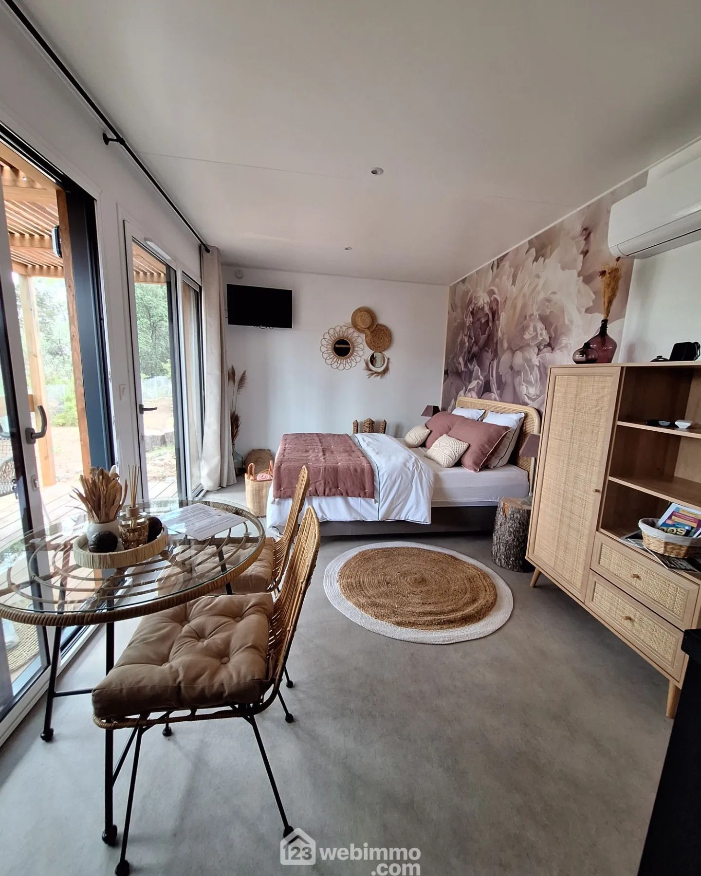 AU THORONET - Quartier Bellebarbe, Tiny toute aménagée, toute équipée de 19.5m² avec une pièce de vie, une kitchenette, une salle d'eau et wc. Terrasse.