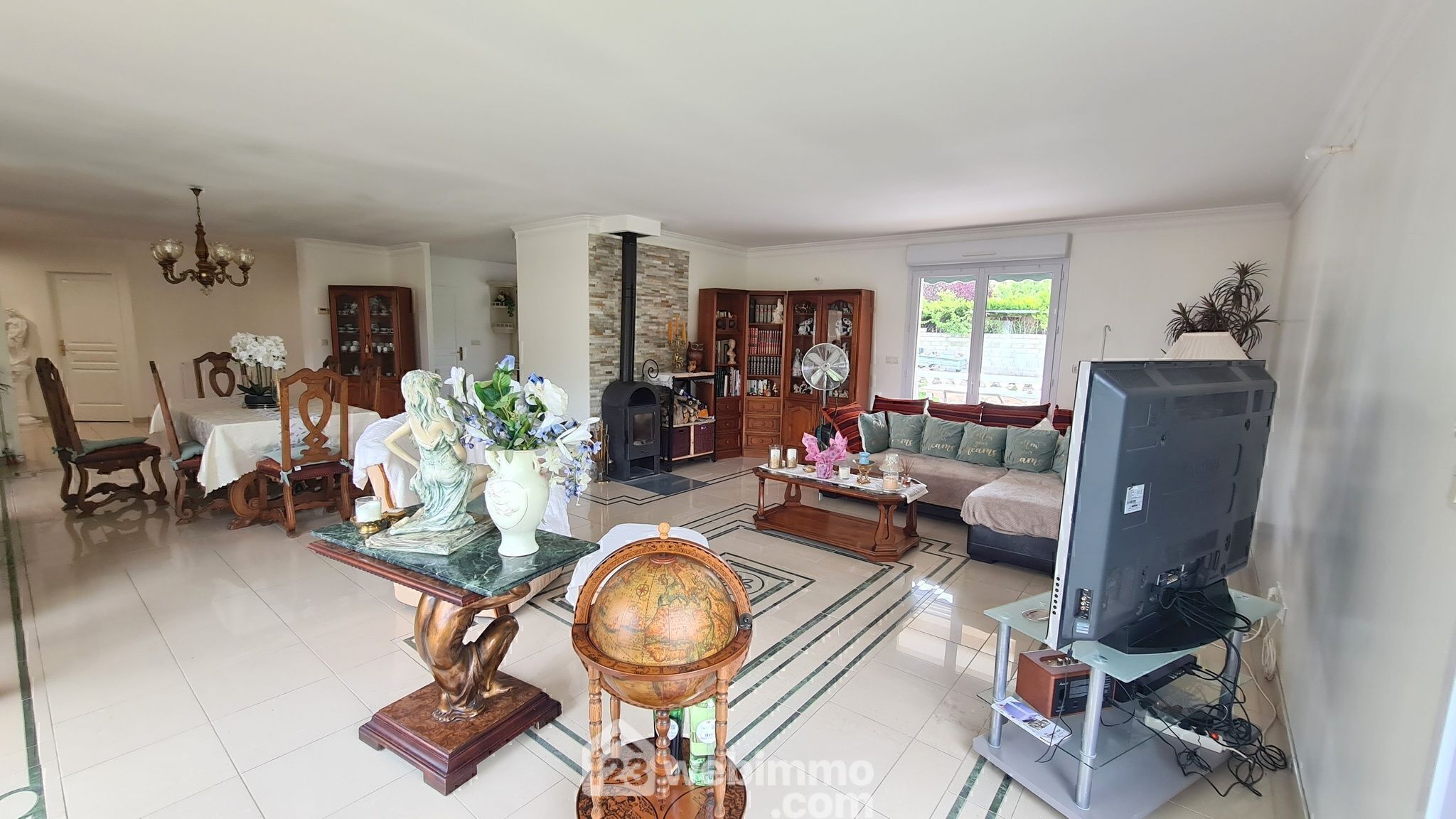 Dès l'entrée, cette propriété vous impressionne par ses volumes et son agencement soigné. Une vaste entrée mène à un triple séjour lumineux de 53 m², agrémenté d’un poêle à bois, qui se prolonge vers une salle à manger conviviale. La cuisine, entièrement équipée et spacieuse (17 m²), ravira les amateurs de gastronomie et de convivialité. Vous trouverez également cinq chambres lumineuses (de 21 à 16 m²), dont une suite parentale à aménager selon vos goûts (salle d’eau ou dressing), ainsi qu’un bureau pour le télétravail.