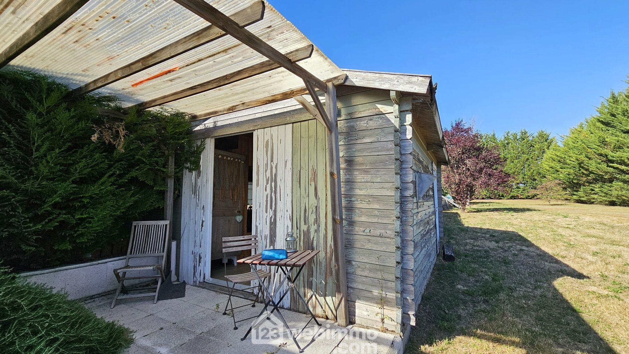 – Une première dépendance de 44 m² comprenant une entrée, une cuisine équipée, un séjour avec poêle à bois et un WC.