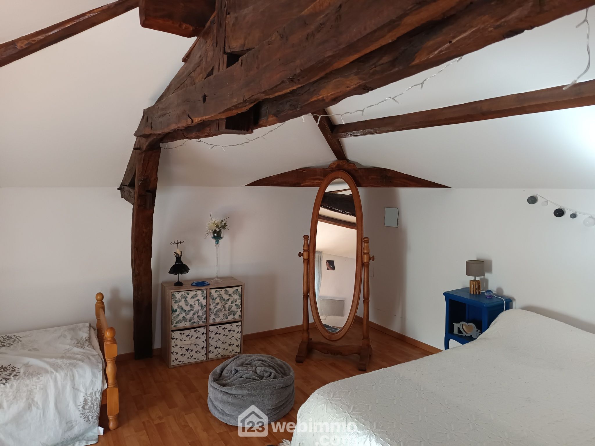 Il y a la possibilité de réaliser facilement deux logements indépendants de 120 m² chacun avec son accès à l'étage (escaliers déjà existants) pour les chambres.
