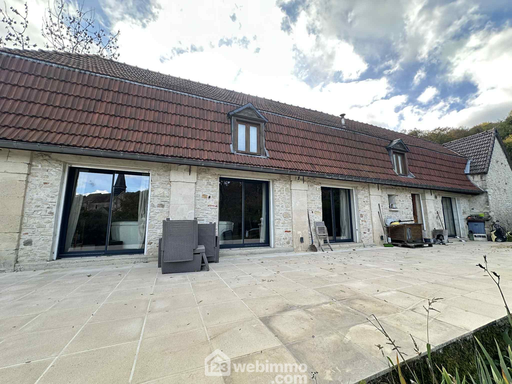 Située dans un environnement paisible et verdoyant, cette magnifique propriété de 210 m² habitables vous offre le charme authentique des pierres apparentes et des poutres d’époque, allié à des prestations modernes.
