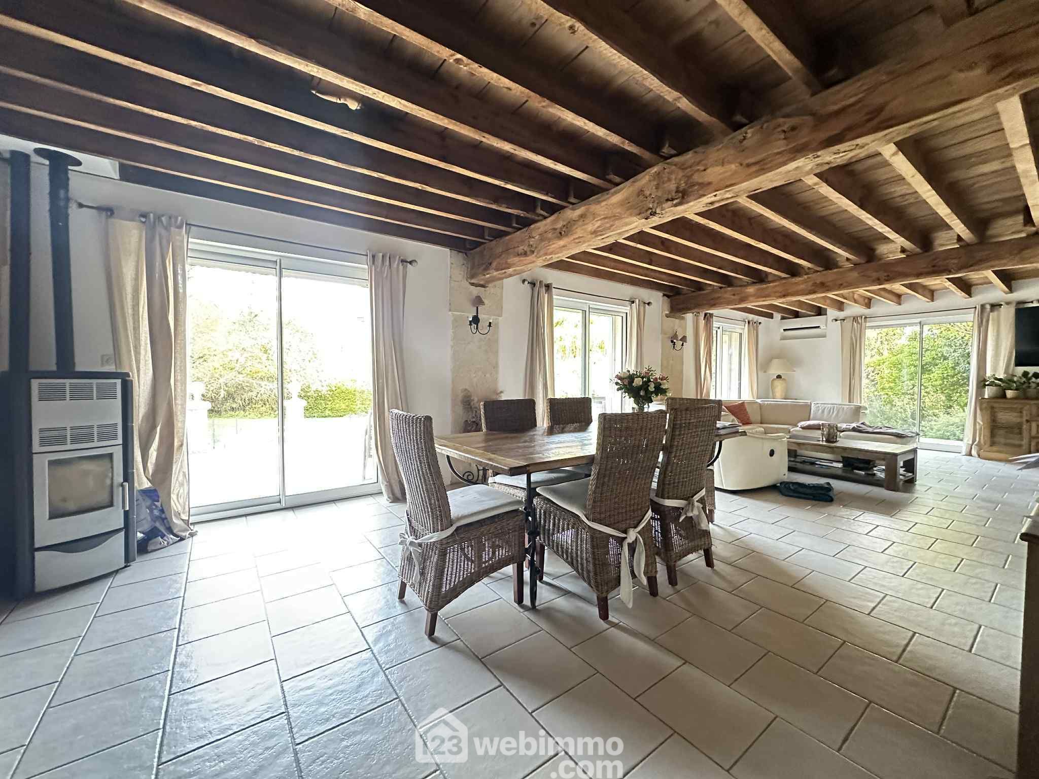 Dès l’entrée, vous découvrirez un vaste séjour lumineux, sublimé par une cheminée pour vos soirées d’hiver et un poêle à granulés pour un confort optimal. La cuisine entièrement équipée s’ouvre sur une belle terrasse carrelée, parfaite pour vos repas en famille ou entre amis.