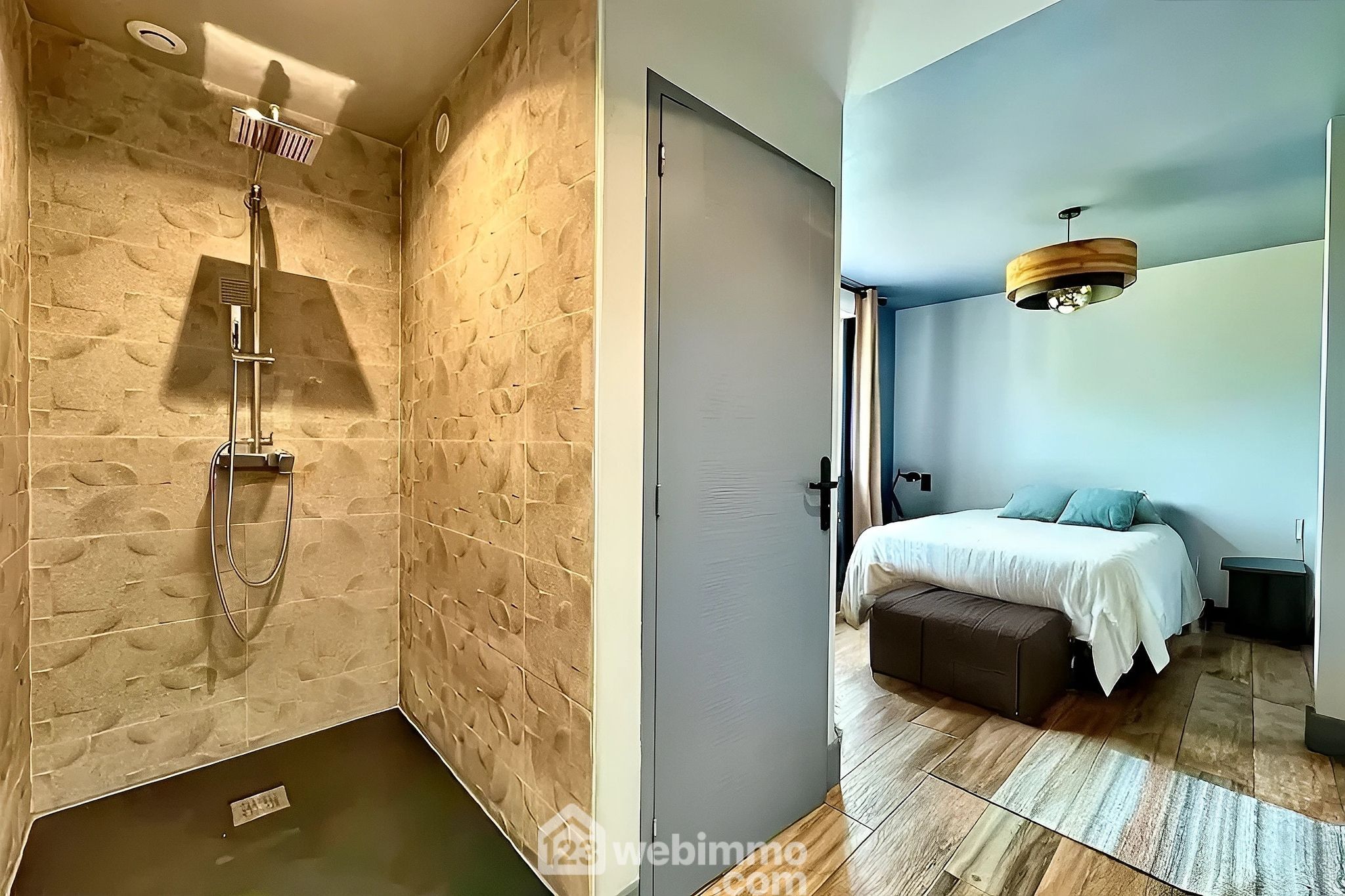 Au rez-de-chaussée, découvrez une grande cuisine aménagée et équipée, ouverte sur un salon-séjour lumineux et spacieux. Une cave aménagée, parfaite pour vos dégustations, complète cet espace.