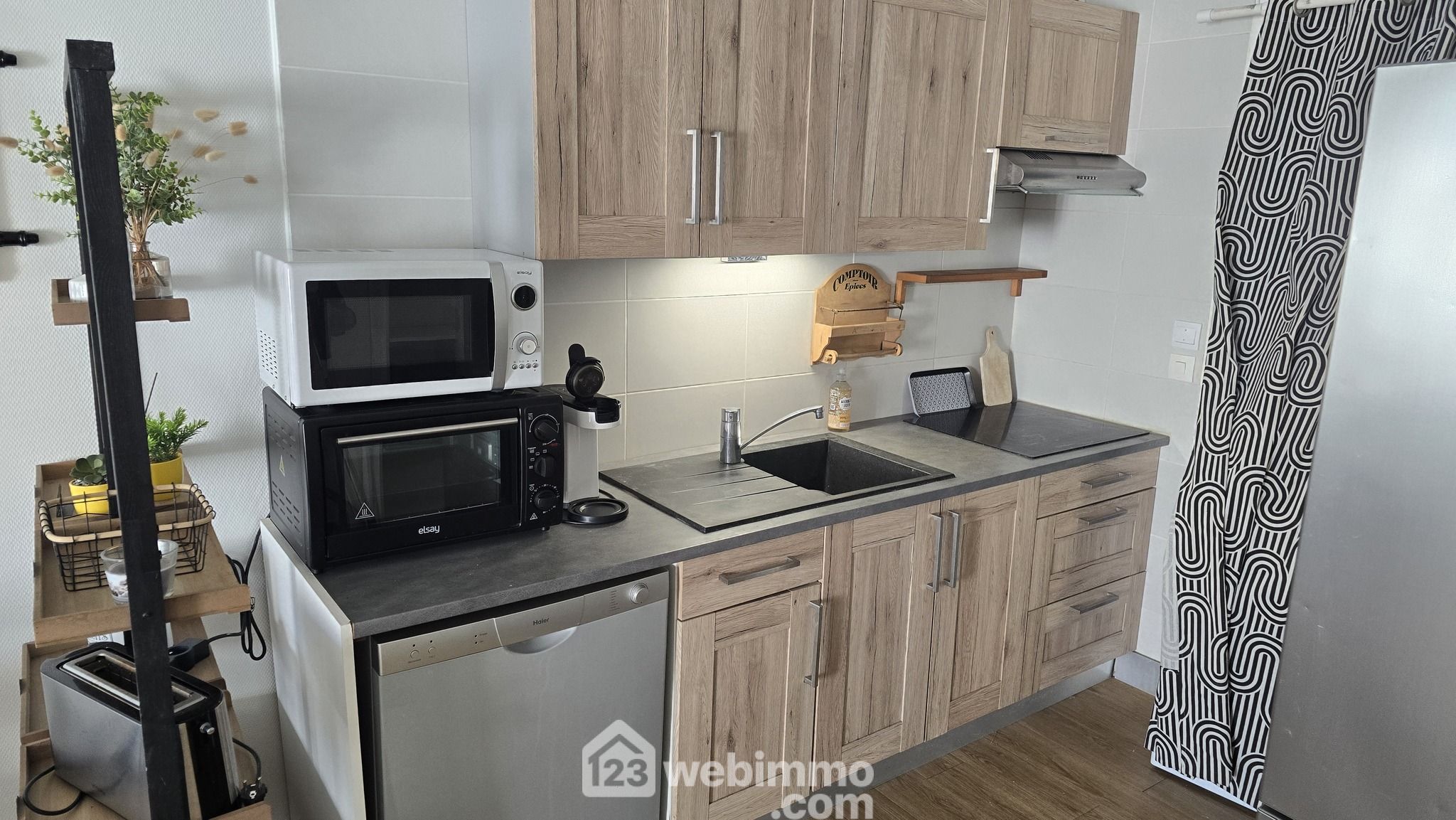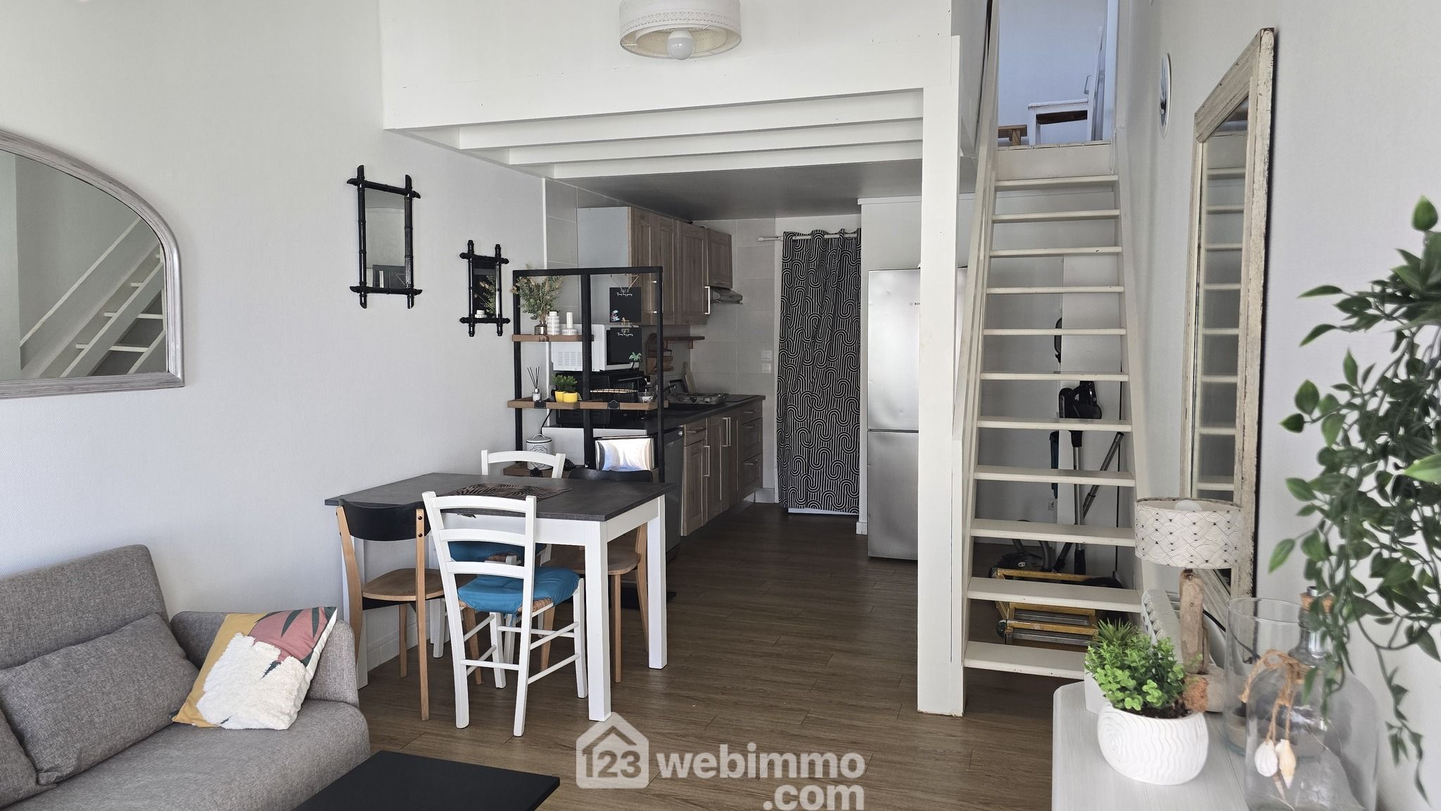 Le logement lumineux et entièrement rénové en 2021 est sur 2 niveaux. Il comprend au rez-de-chaussée un séjour, un espace cuisine, un buanderie, une salle de douche avec toilette. La mezzanine à l'étage offre un bel espace pour la chambre et son espace détente.