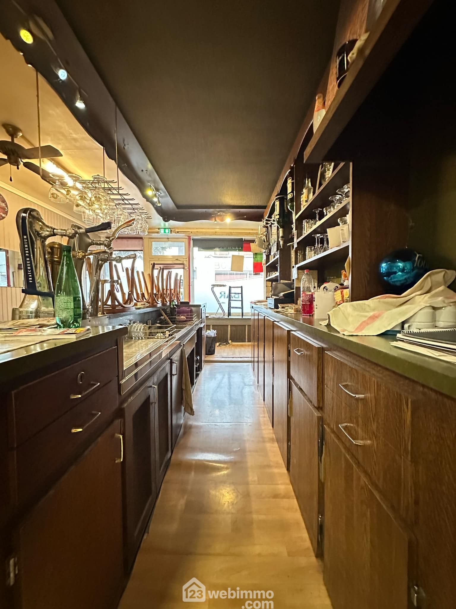 Avec ses 305 m², cet espace polyvalent comprend un local commercial de 180 m² parfaitement agencé : une pièce principale avec un bar, un espace restauration, une cuisine équipée, une arrière-cuisine et des sanitaires.