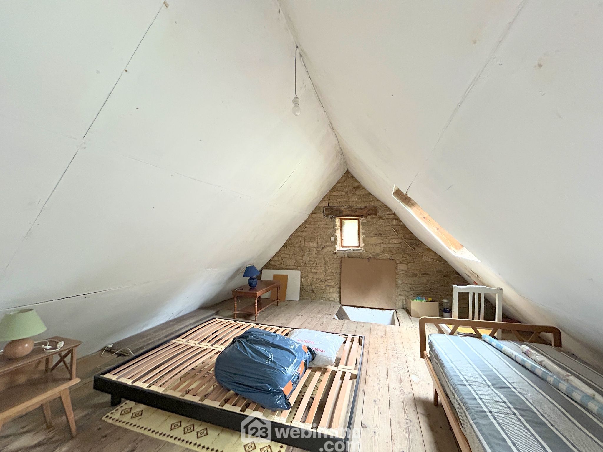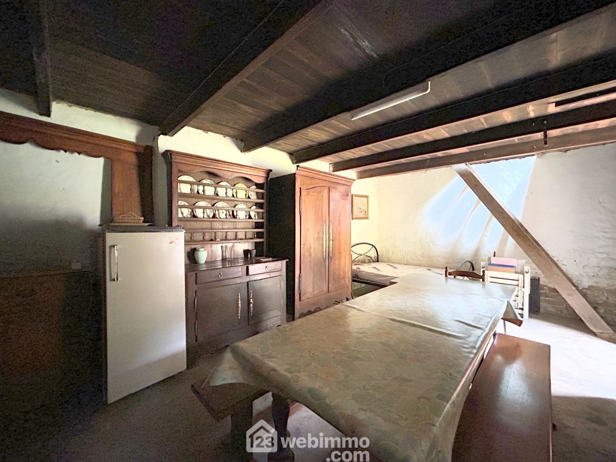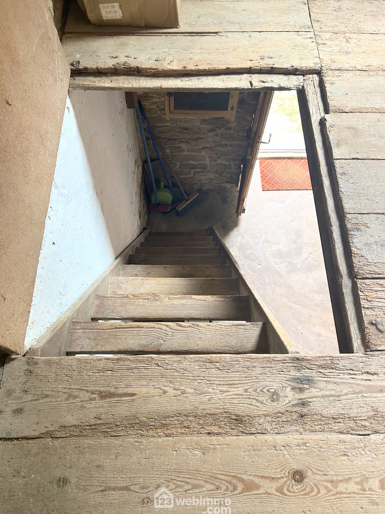 Le rez-de-chaussée comprend une pièce de 27m2 avec un poêle à bois et un escalier de meunier desservant une pièce de 9m2 habitables et de 27m2 au sol. Attenant à la maison, un débarras d'environ 15m2.