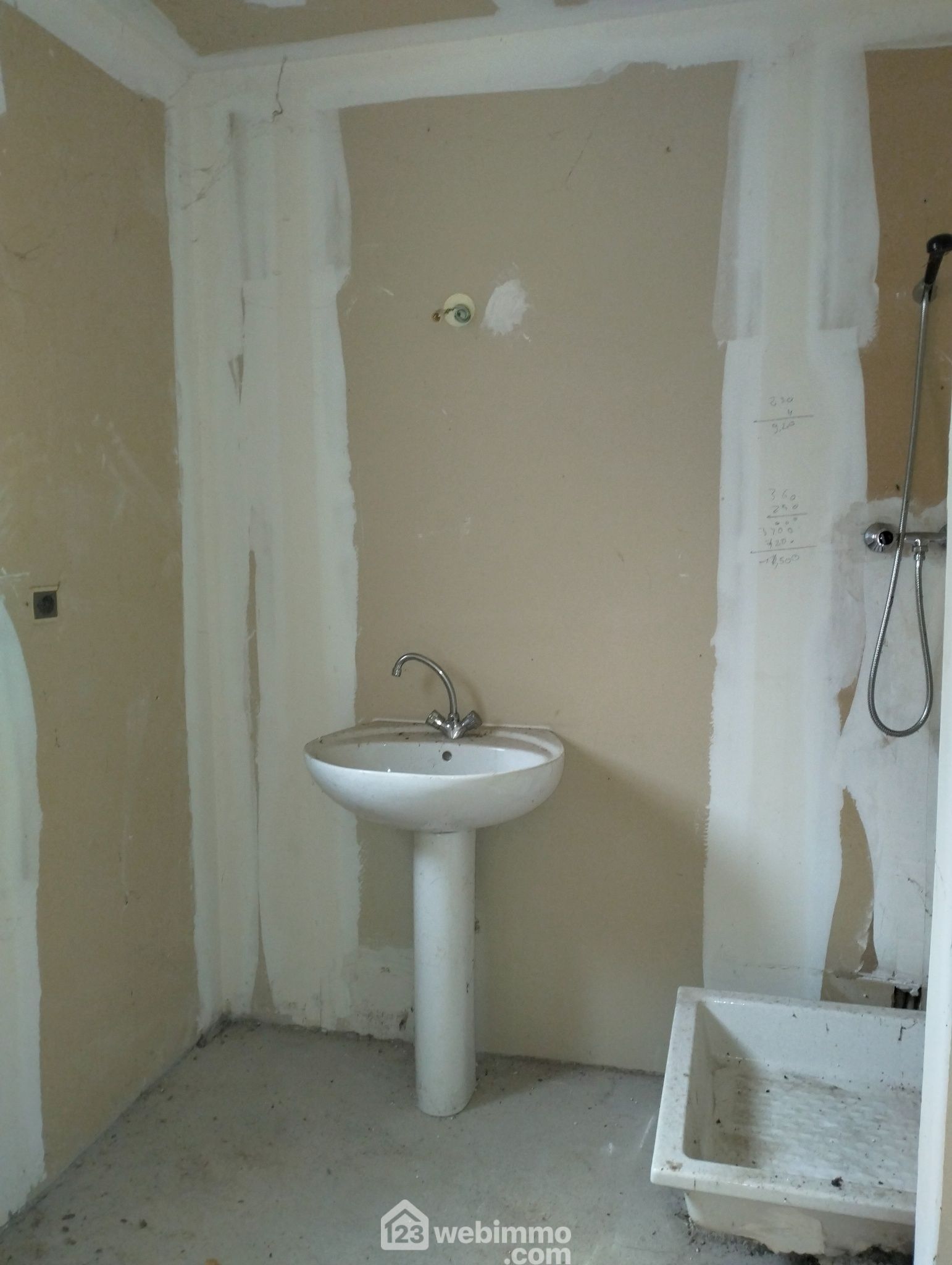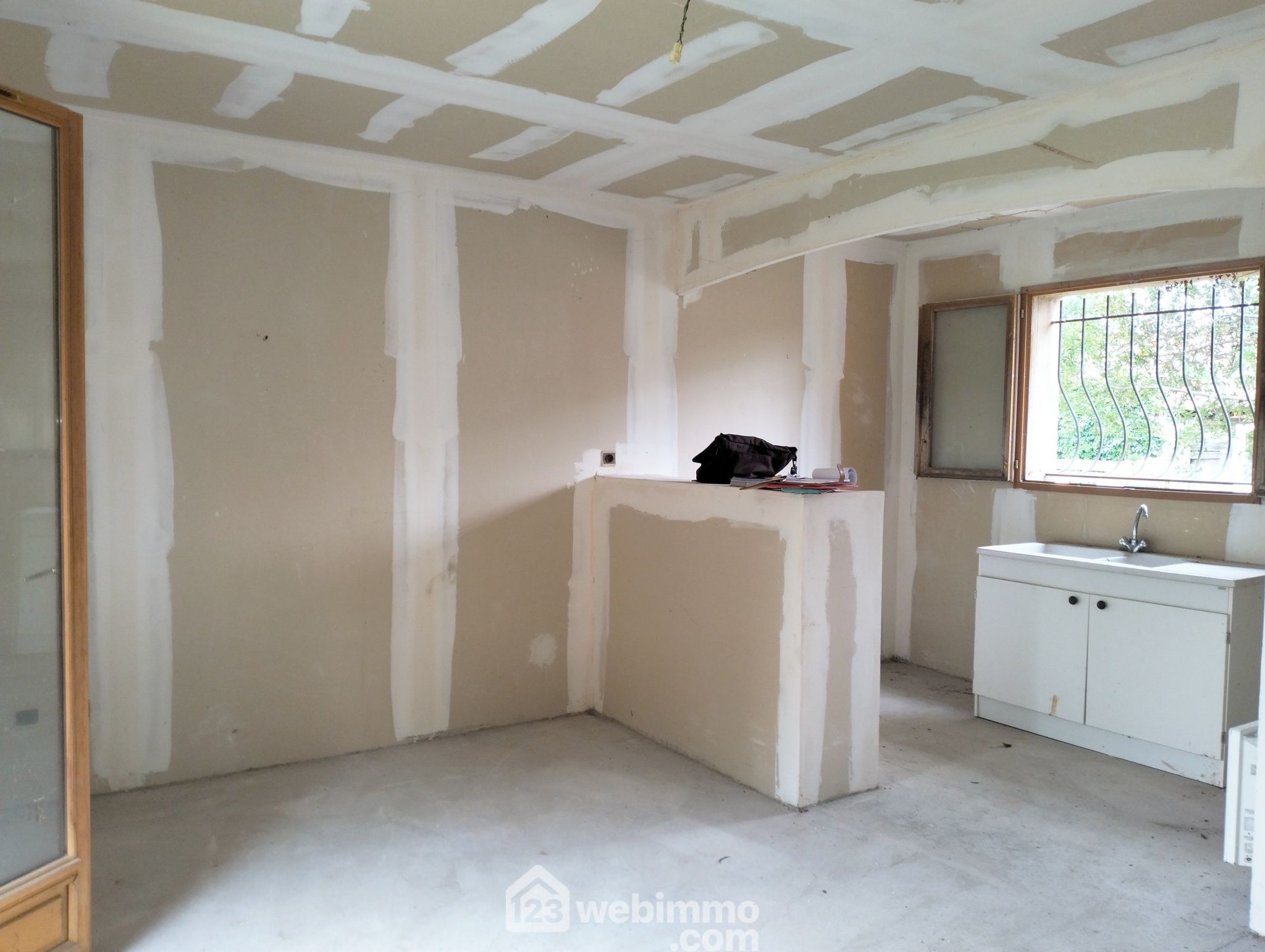 Les murs sont bruts de placo. Les huisseries en double vitrage bois mériterait d'être lasurées et les volets liftés.