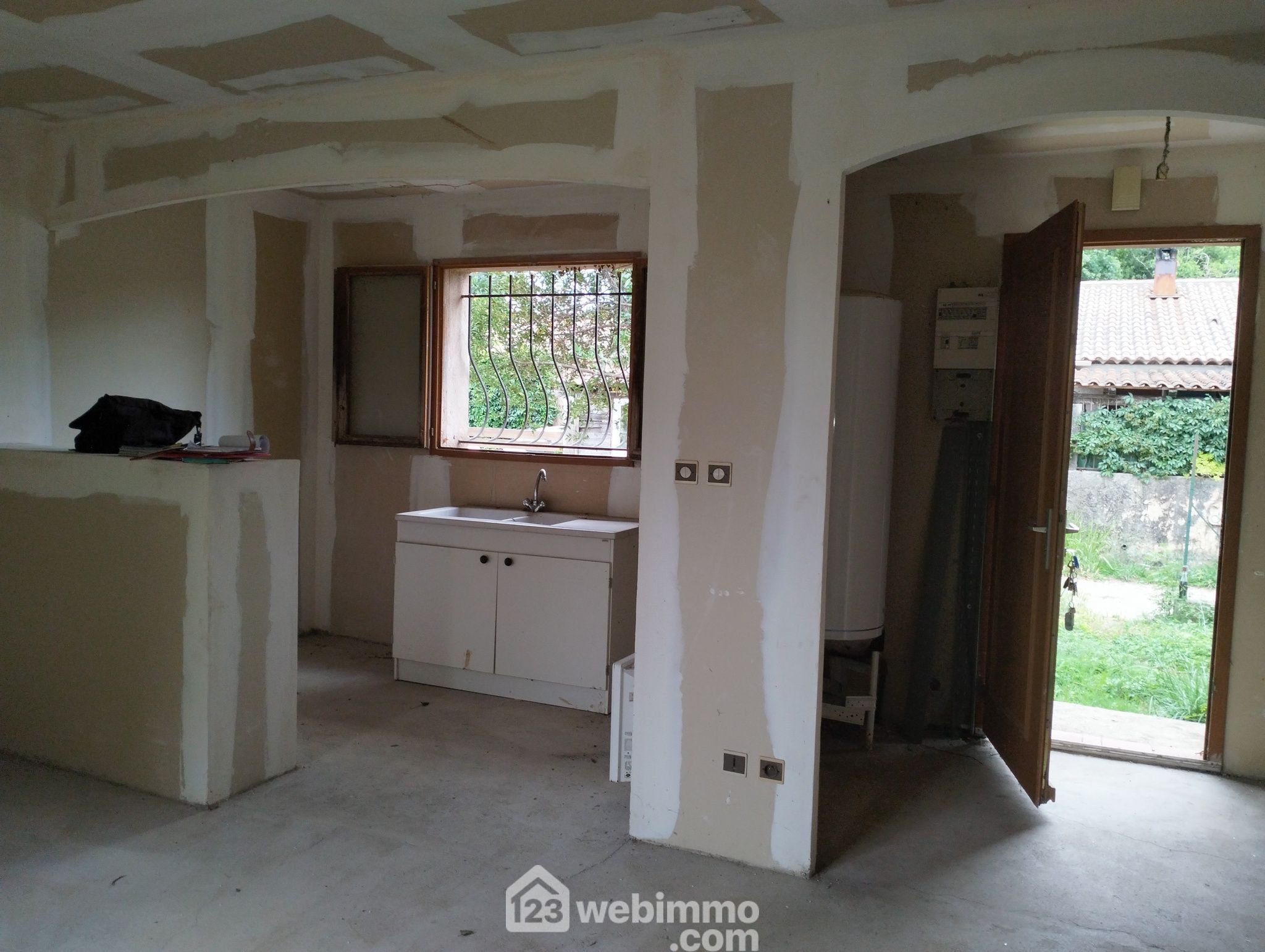 La maison est composée d'une entrée dans une pièce de vie avec porte-fenêtre sur jardin. Coin cuisine à aménager. Une chambre. Une salle d'eau avec wc.
