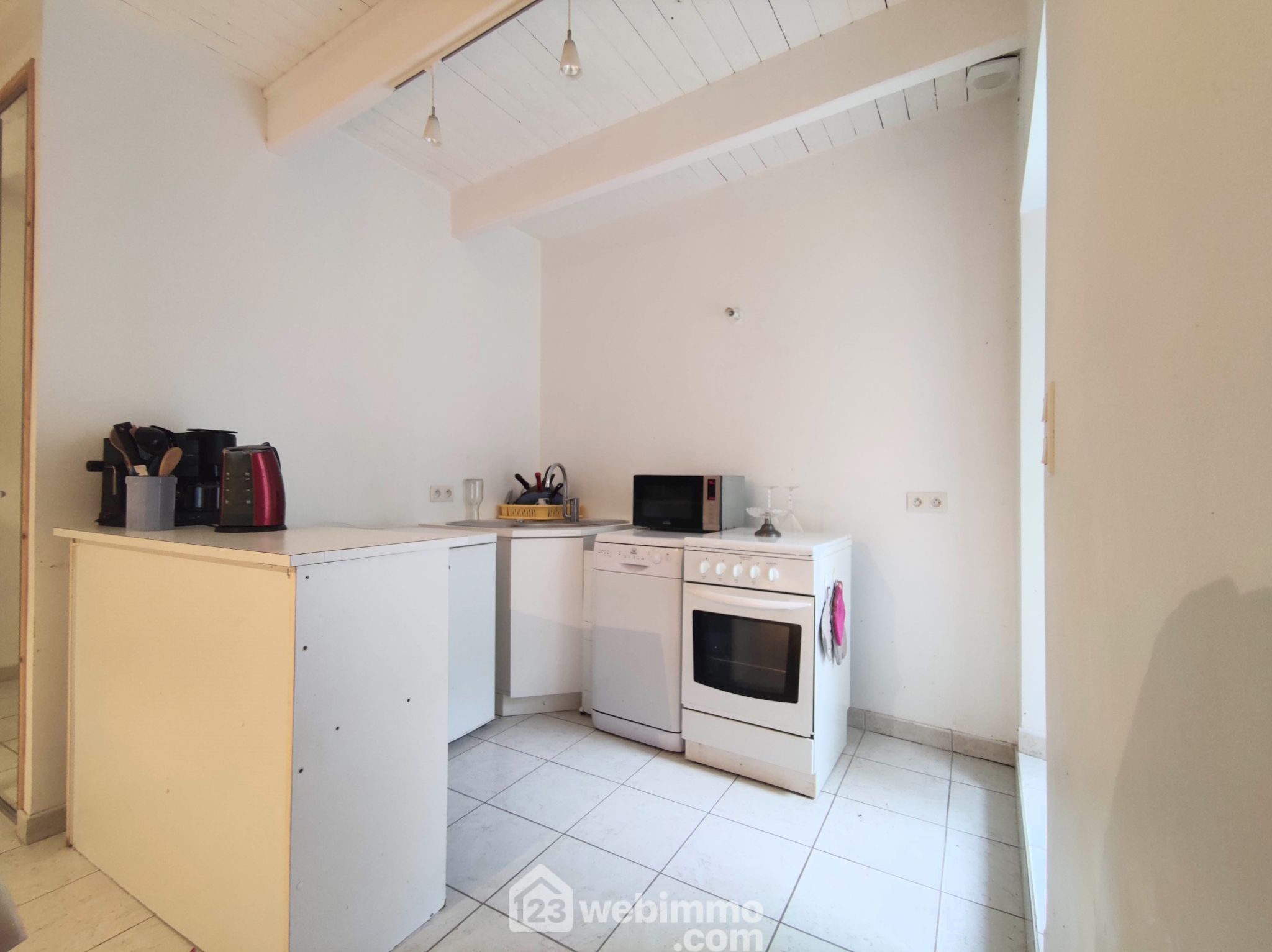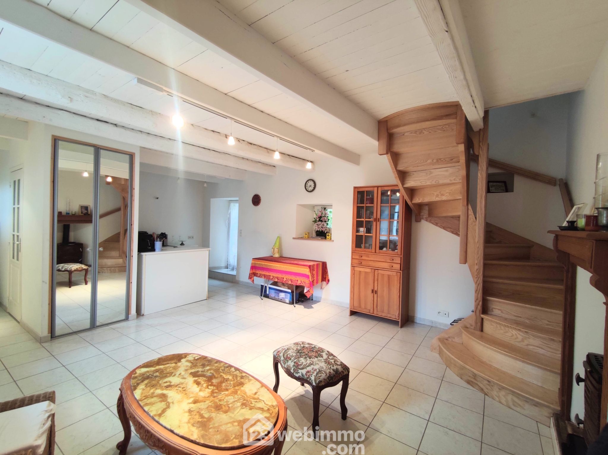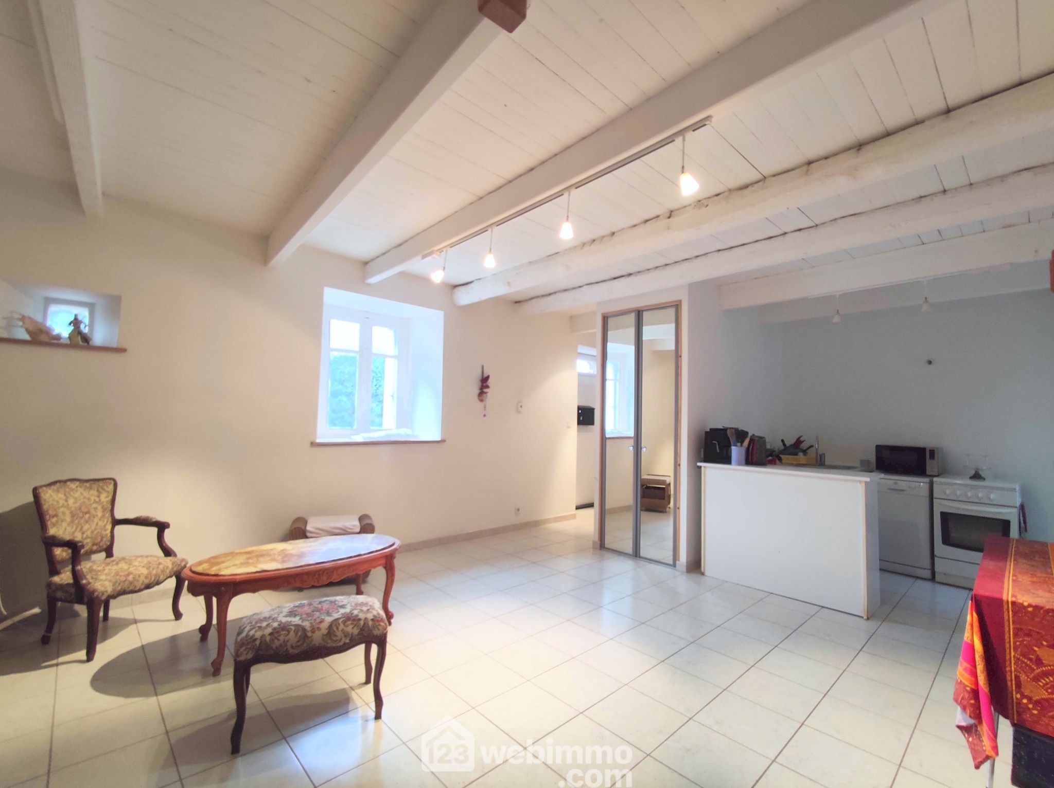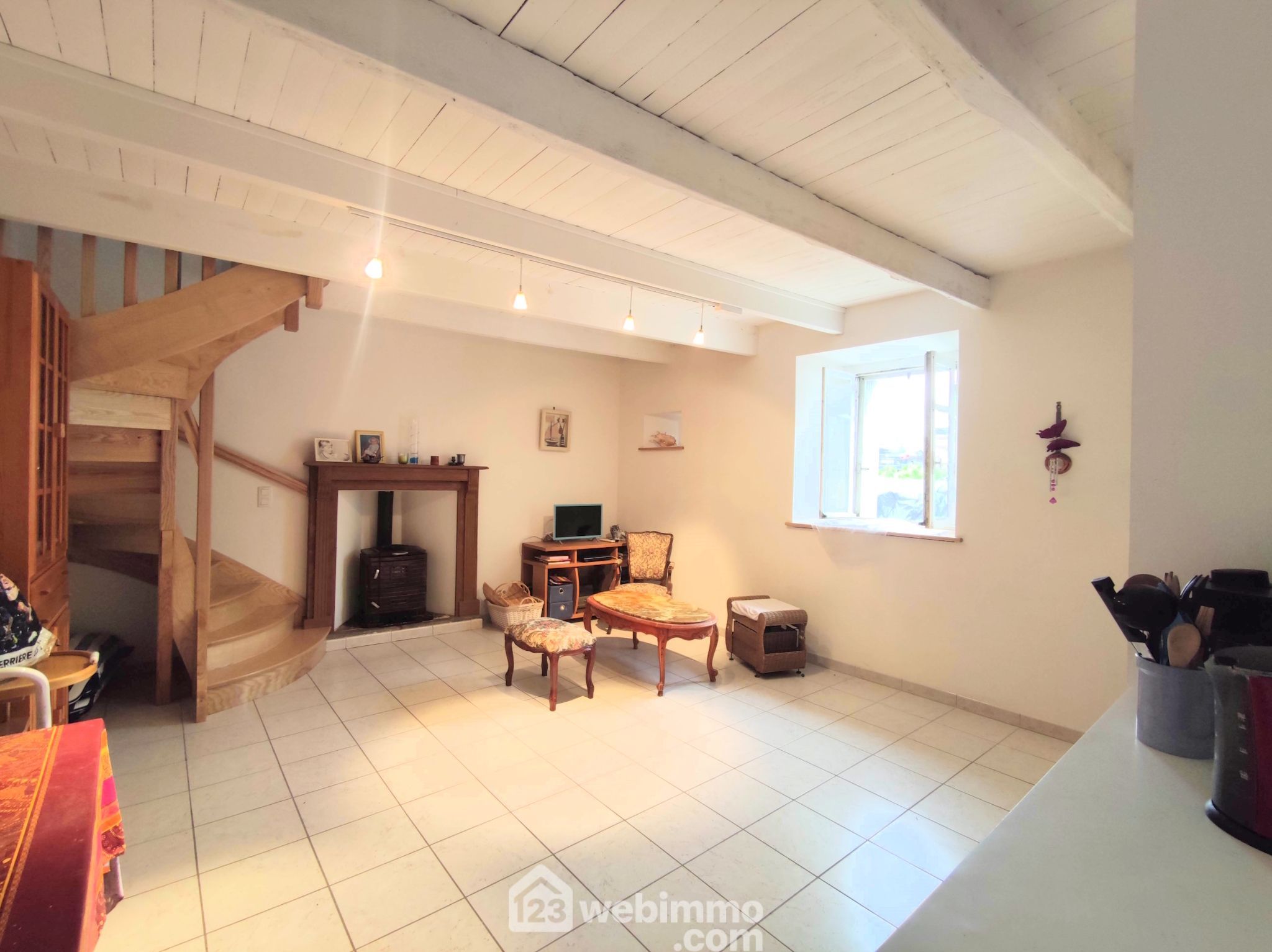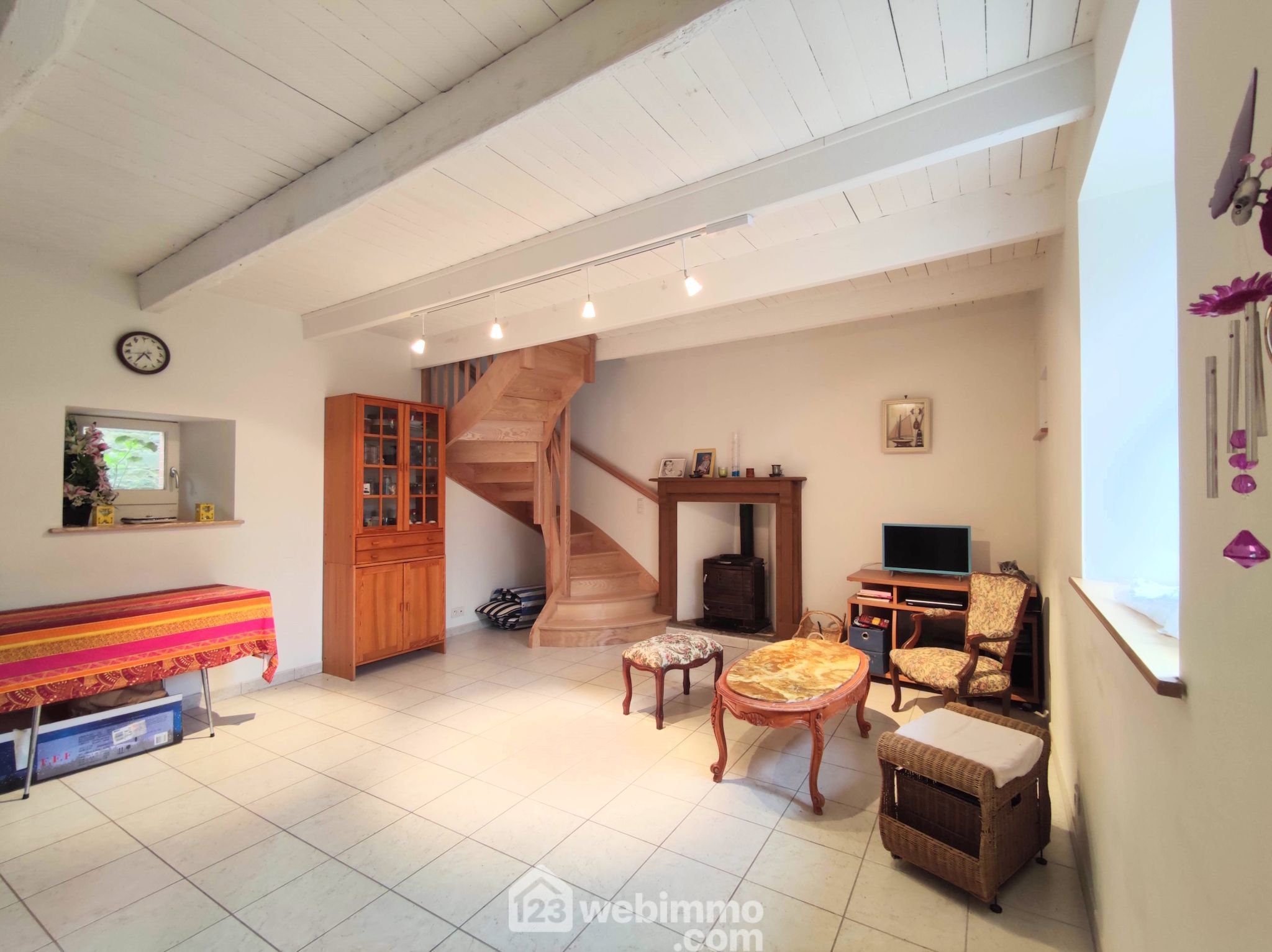 Cette charmante maison, se compose d'une entrée de 3m2, d'un salon-séjour de 21m2 avec un poêle à bois, une cuisine ouverte de 6m2 et un WC séparé avec lave mains.