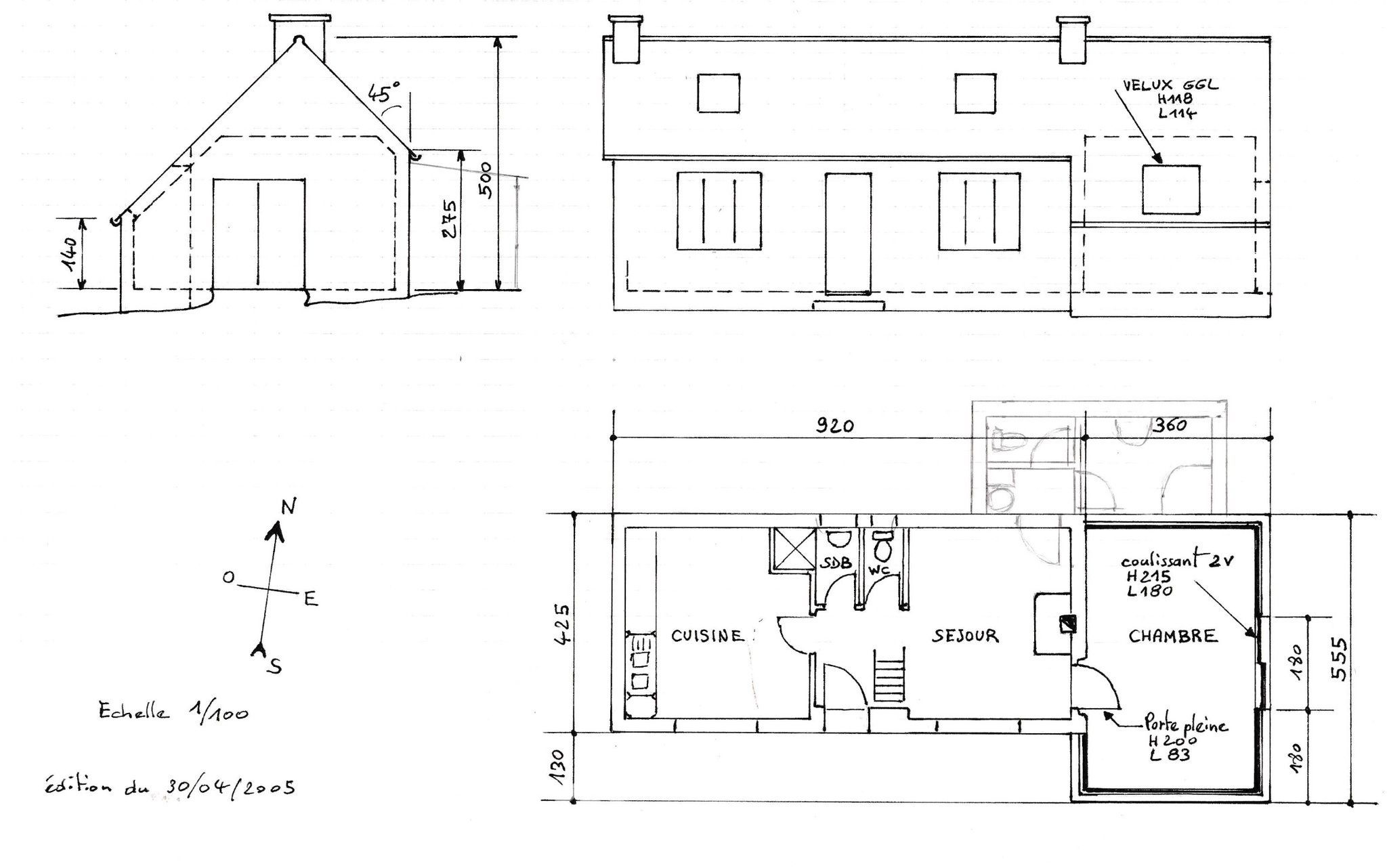La maison édifiée en 1972, orientée plein sud, se compose au rez-de-chaussée, d'un entrée de 4m2, d'un salon avec poêle à bois de 12m2, une cuisine aménagée et équipée indépendante de 12m2, un WC séparé, une salle d'eau avec une douche à l'italienne de 3m2 et une chambre de 16m2. Le RDC fait une surface de sol de 48m2.