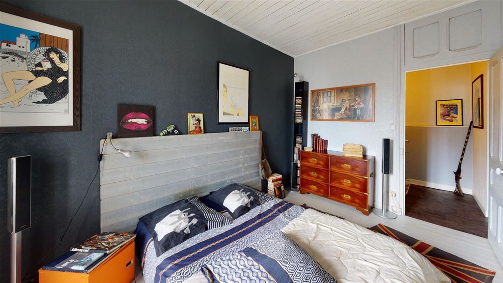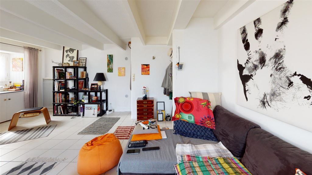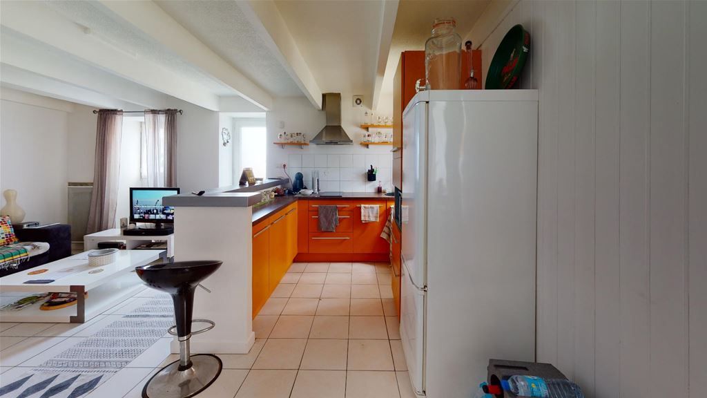 Maison comprenant un salon cuisine entièrement ouvert, deux chambres à l'étage, un WC séparé et une salle de douches. Un garage non attenant de 28m2 pour stocker ou aménager en studio.