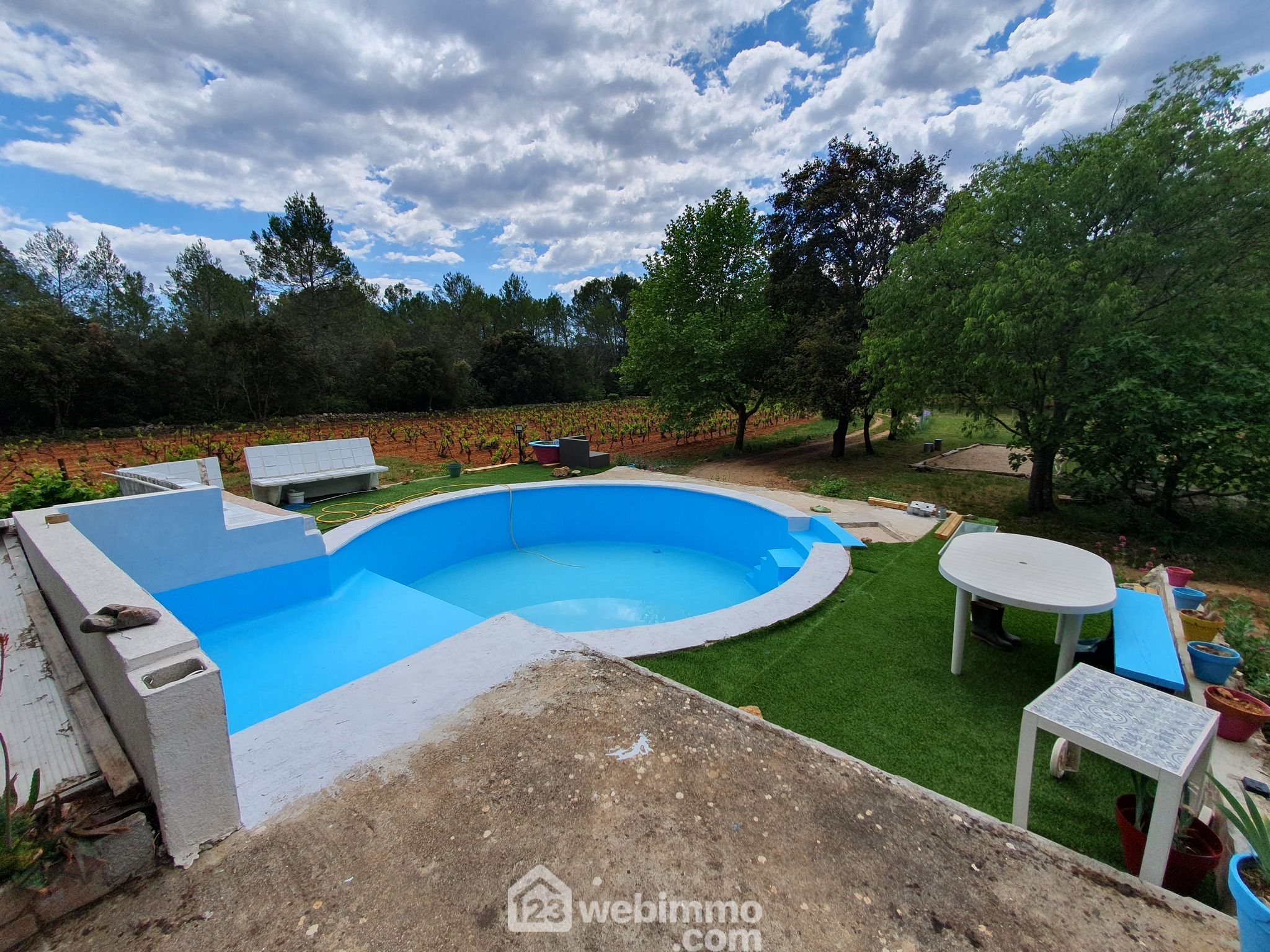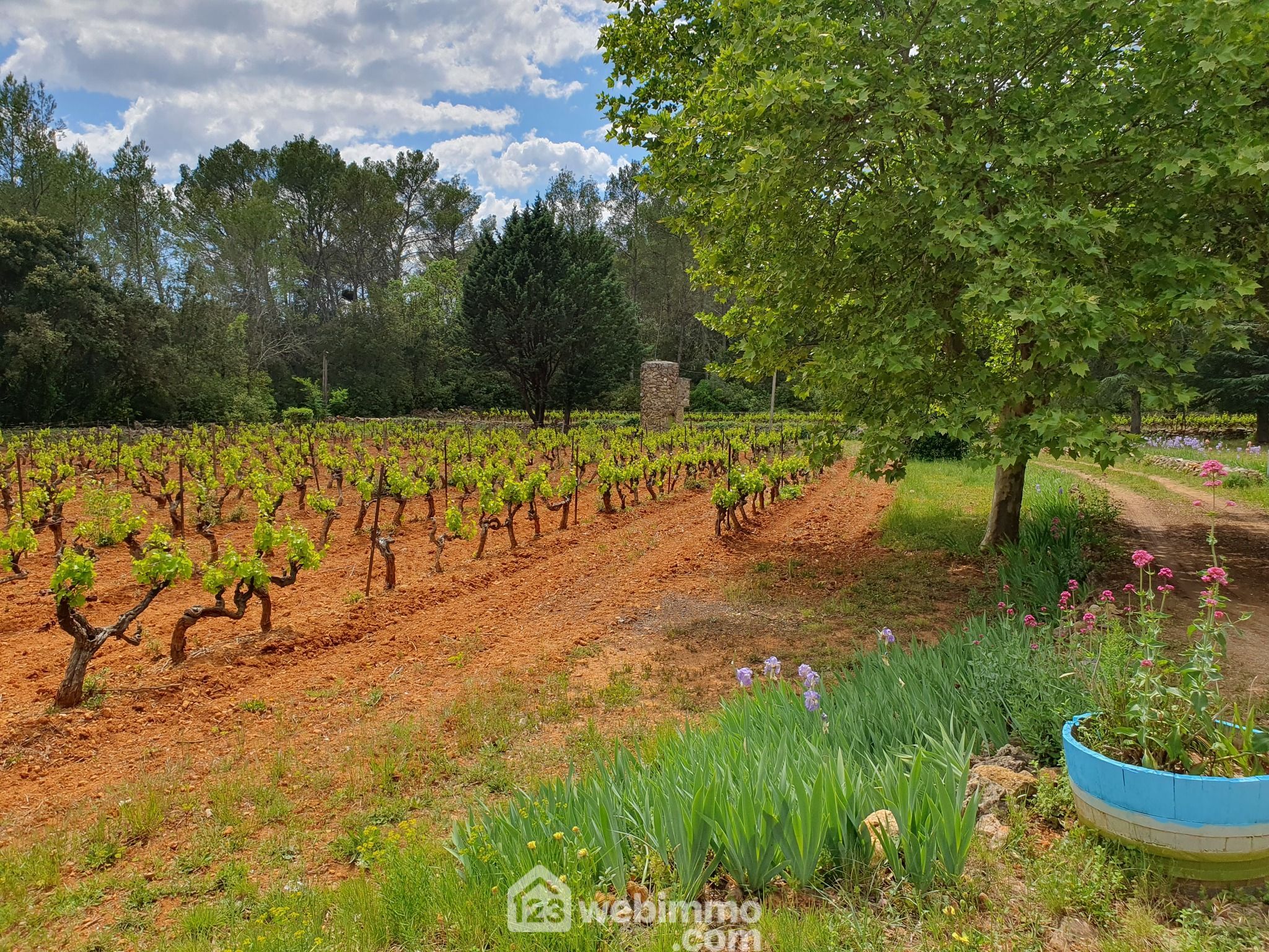 Belle maison de type 3 sur grand terrain arboré de 9430m² avec 2500m² de vignes AOC, olivier et arbre fruitier. Plusieurs bâtiment annexe sur le terrain (chalet, atelier, bureau).