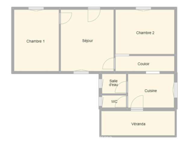 - Entrée dans véranda, cuisine 6.50 m², séjour 16.70 m² exposé Ouest, deux chambres 12.20 m² et 9 m², salle d'eau, WC, buanderie/chaufferie.