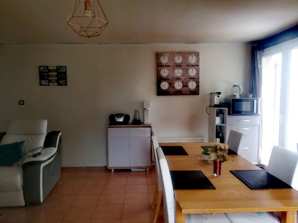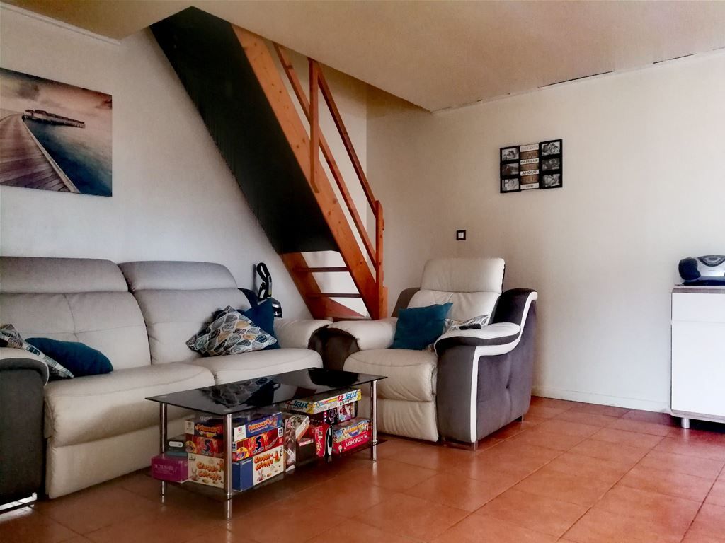 Maison à étage de 51 m2 composée au rez de chaussée d'un salon/séjour/cuisine avec accès direct sur la terrasse, Wc. A l'étage, 2 chambres dont une avec placard, et une salle de bains. L'ensemble sur un terrain clos de 388 m2 avec un garage attenant, faux grenier et deux places de parking.