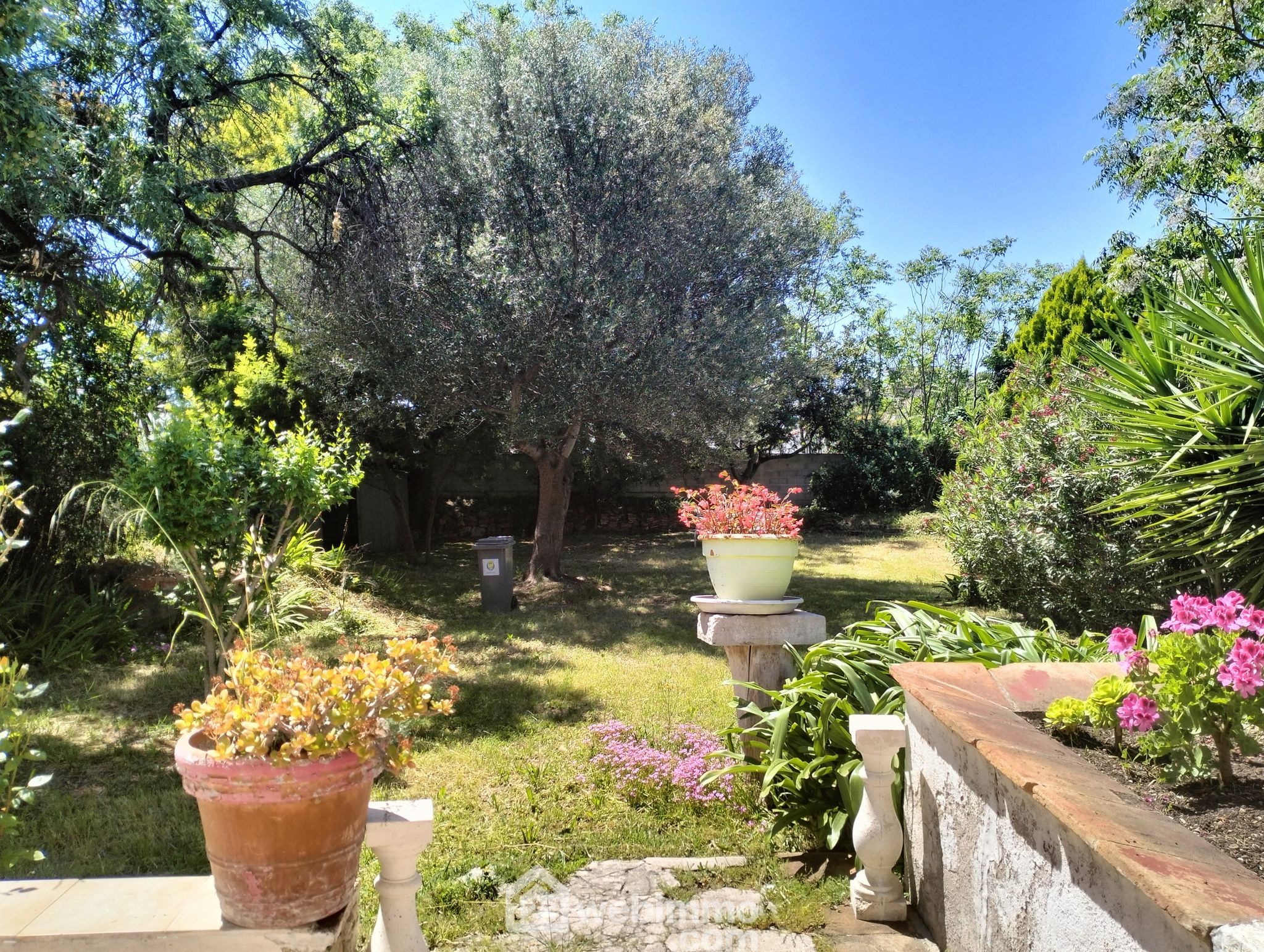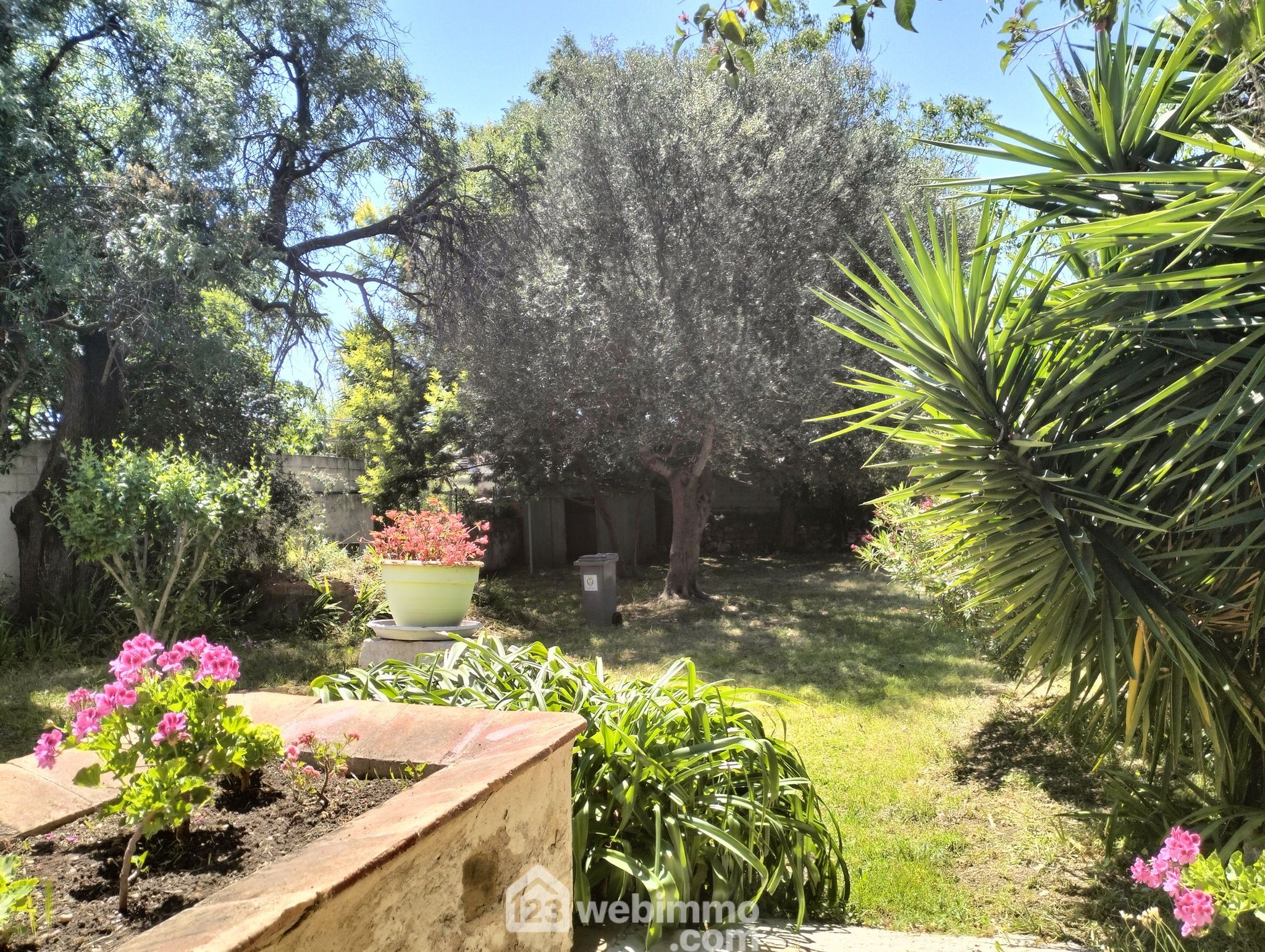 Le jardin, le bel atout de la propriété : parcelle de 550m2 arborée+puits.