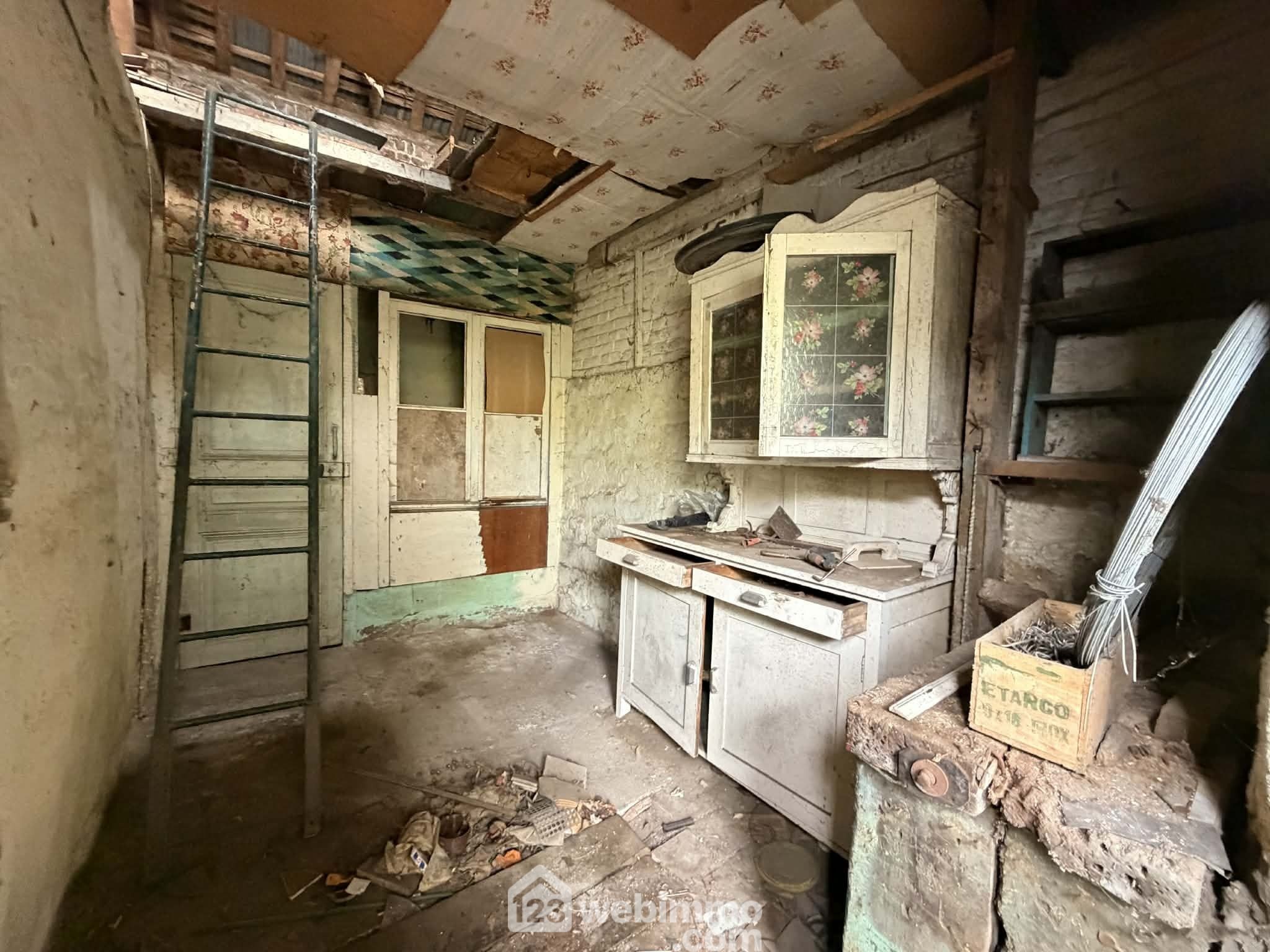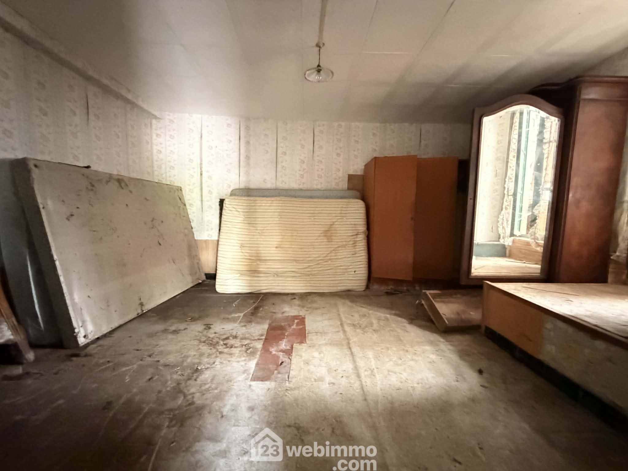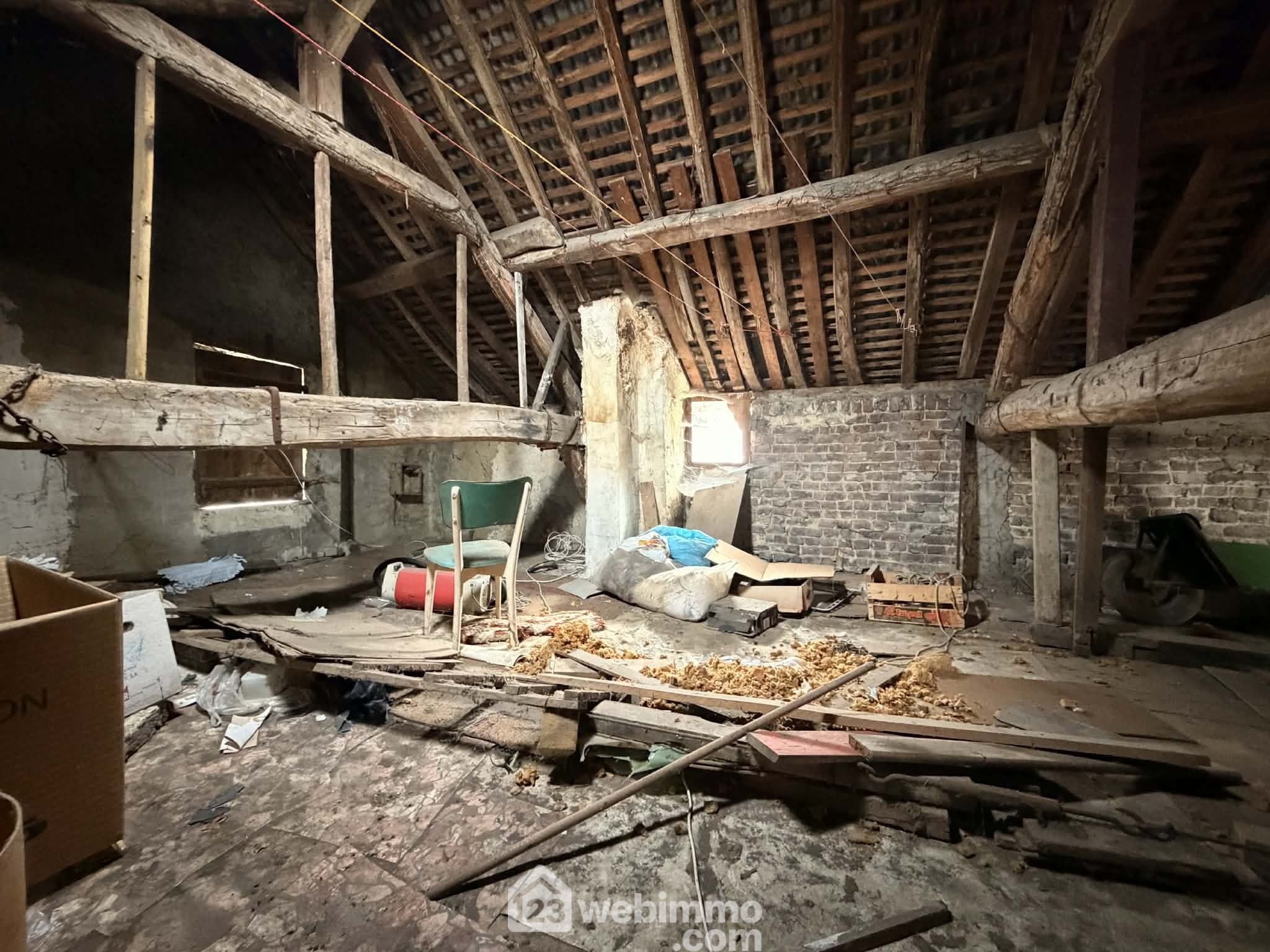 Une pièce à aménager en cuisine / salle à manger, un salon, une chambre ainsi qu’un grenier de 30 m² offrant de nombreuses possibilités d’aménagement.