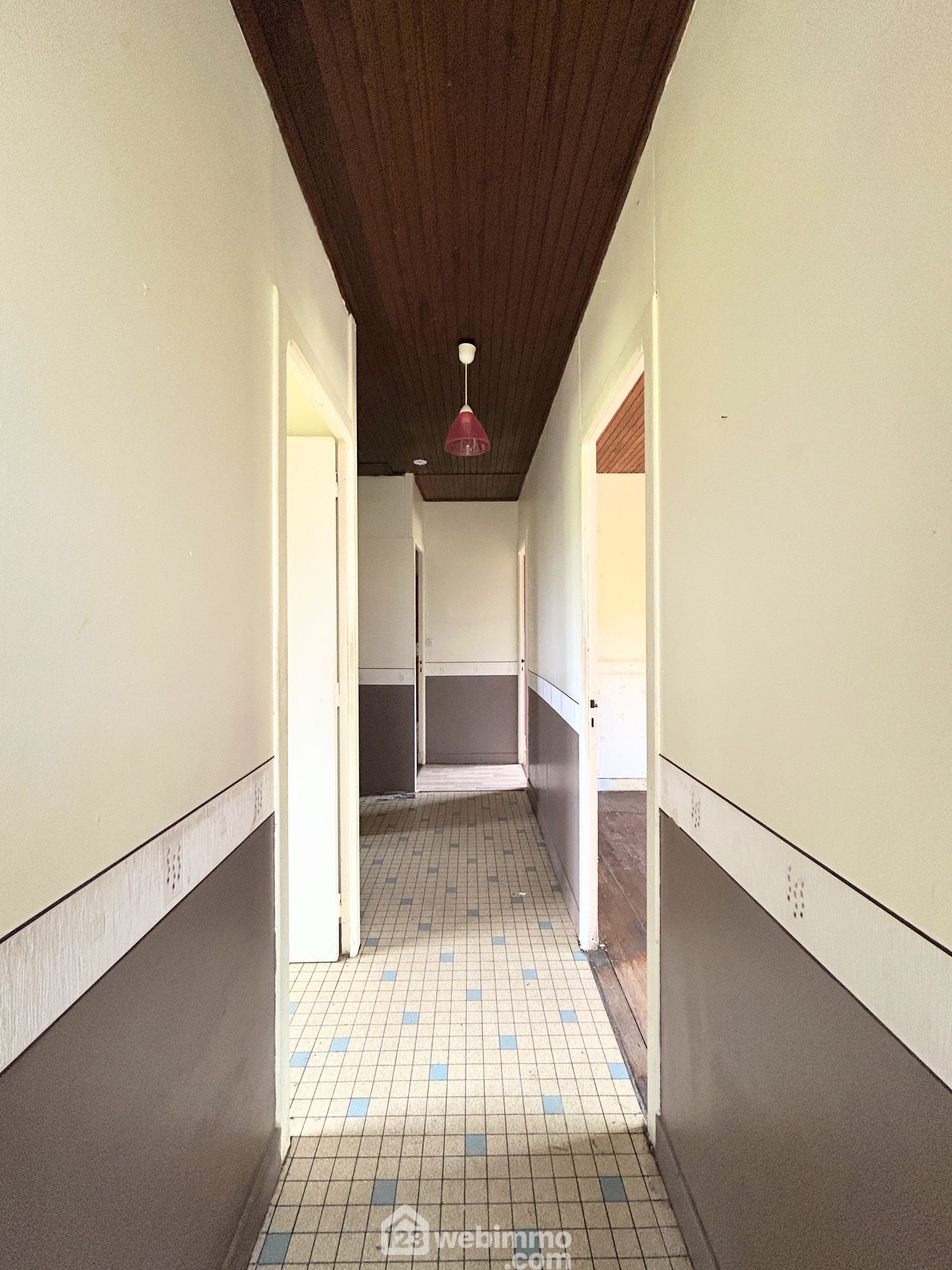 La maison se compose d'une entrée par une véranda de 2,8m2, donnant accès sur un couloir desservant un salon de 16,12m2, une cuisine de 9,4m2, une salle de douches avec WC et 2 chambres de 9,7 et 10,5m2.