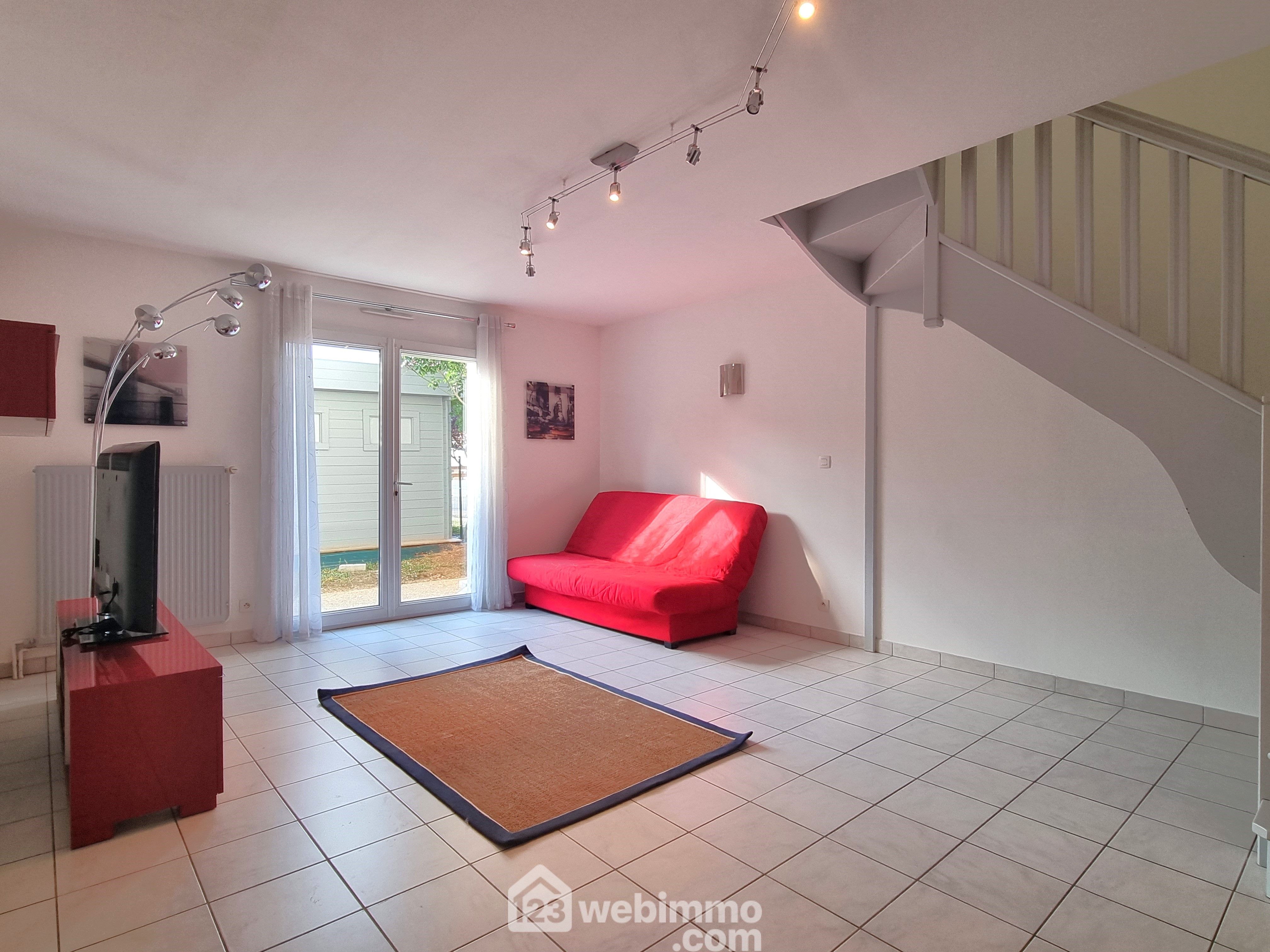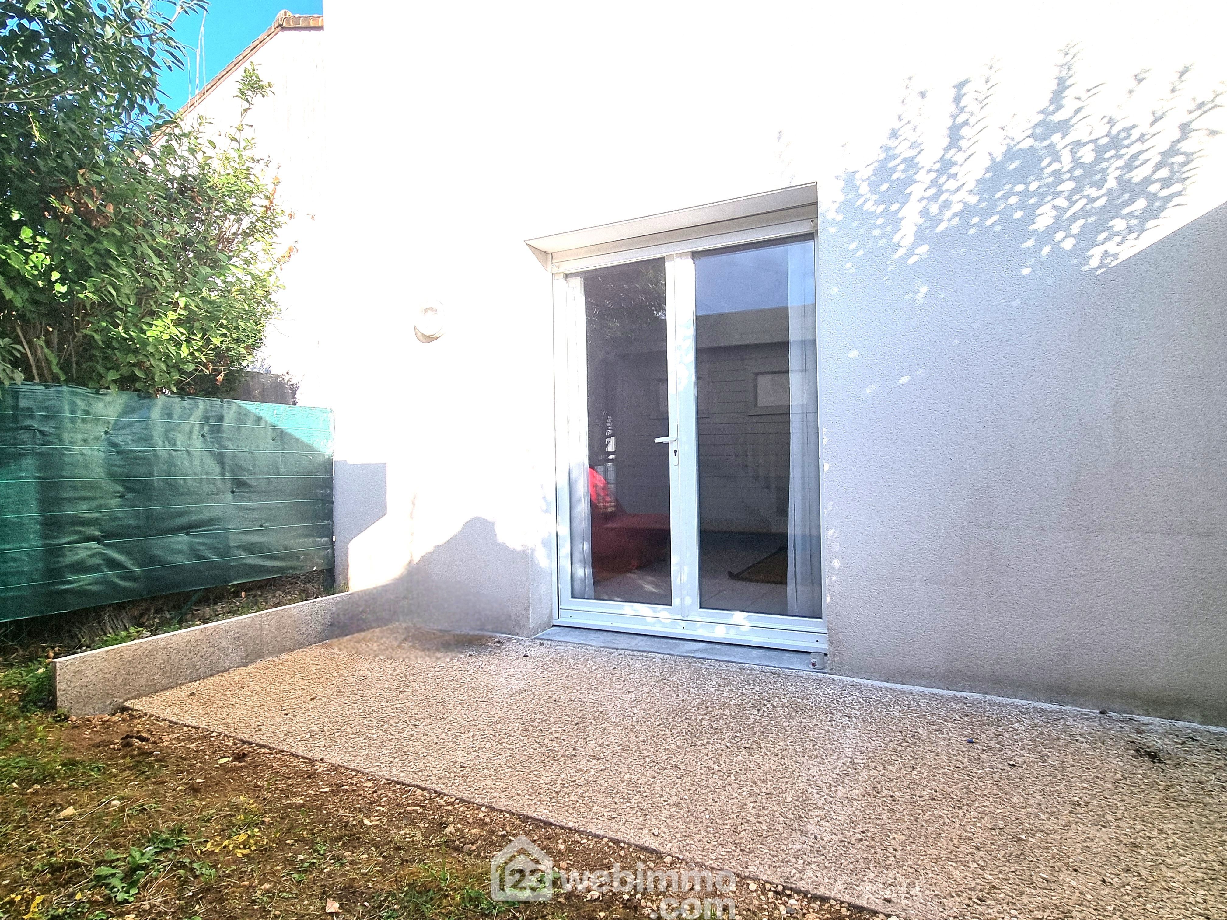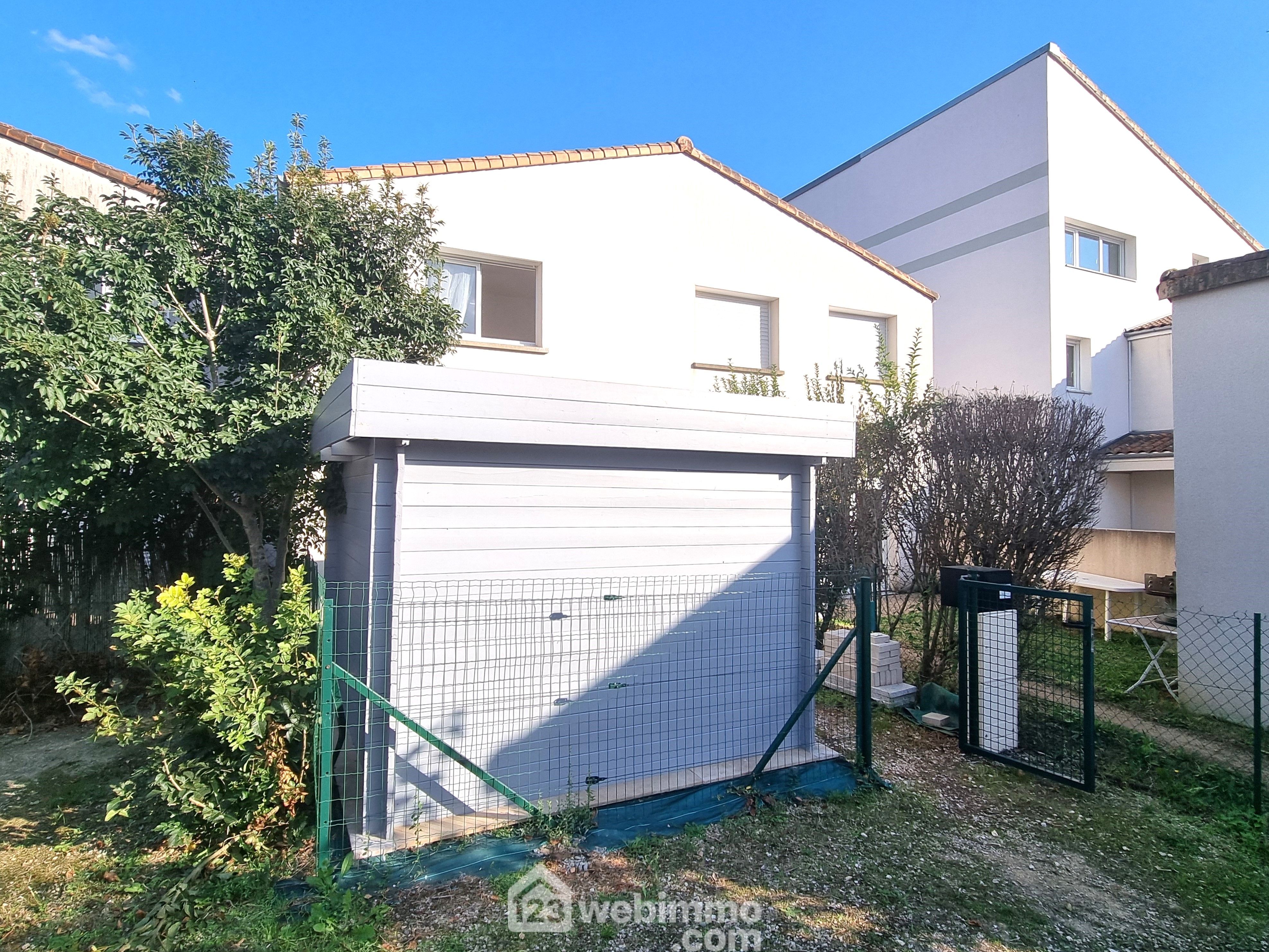 Maison mitoyenne T3 (aucun travaux à prévoir), 61 m2 habitables, 2 chambres. Jardinet avec terrasse, cabanon, places de stationnement.