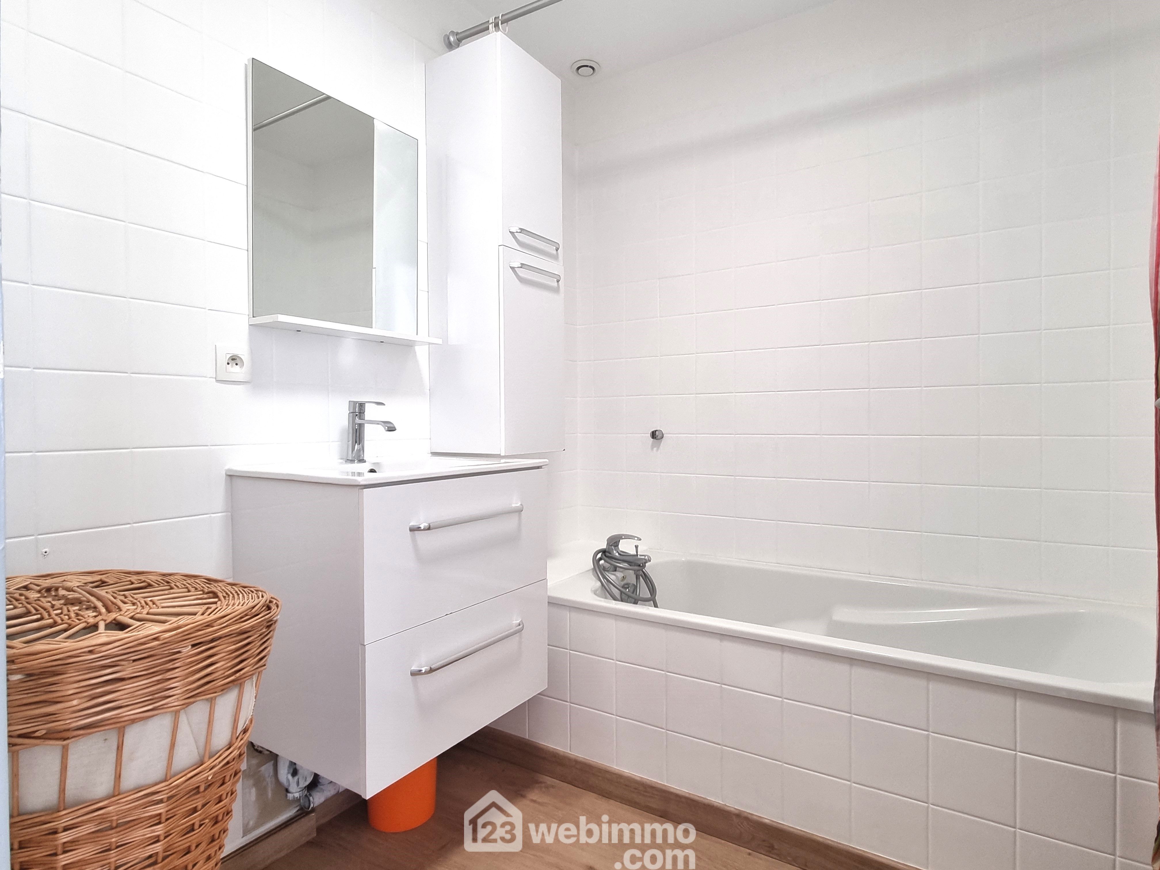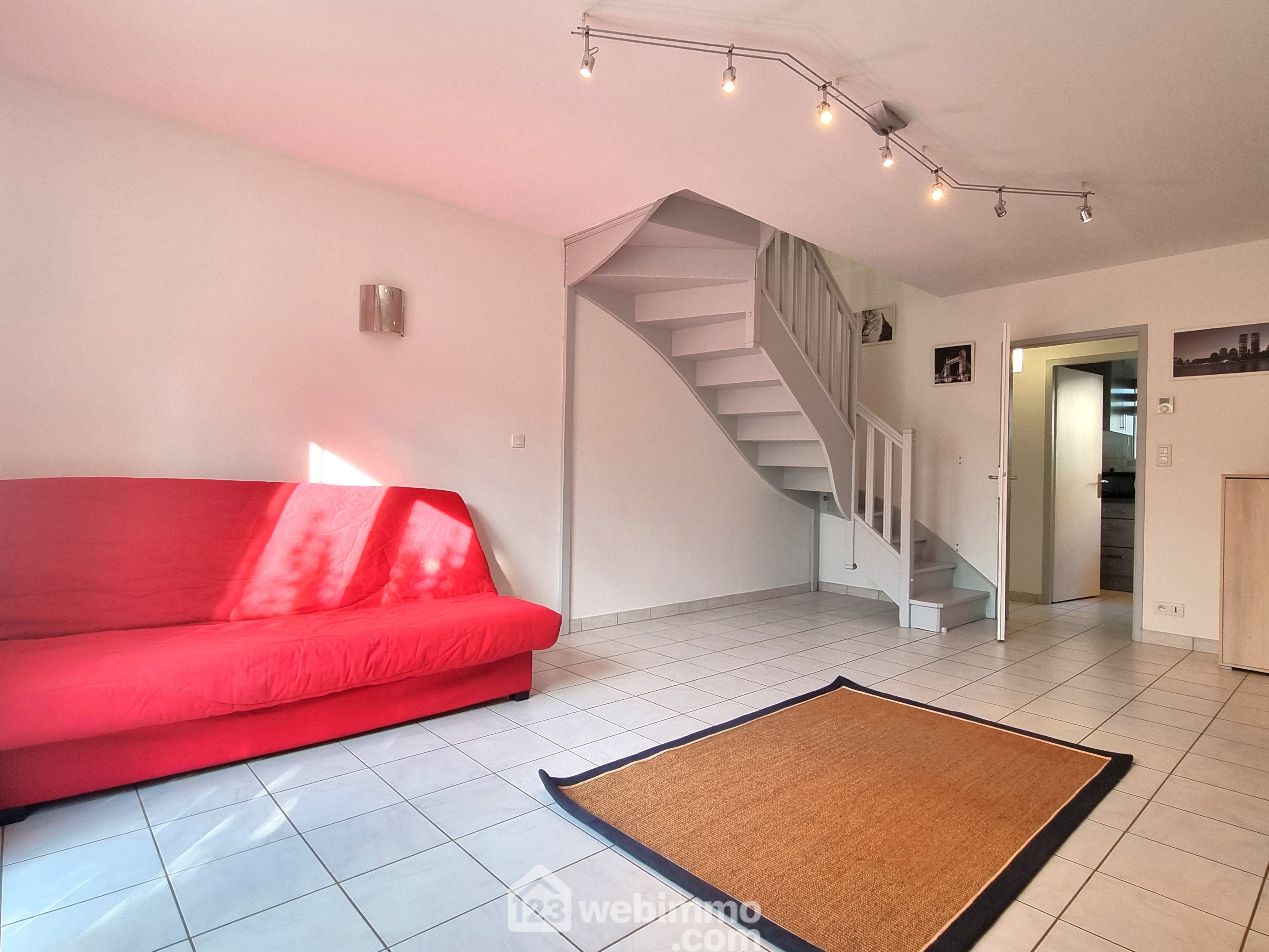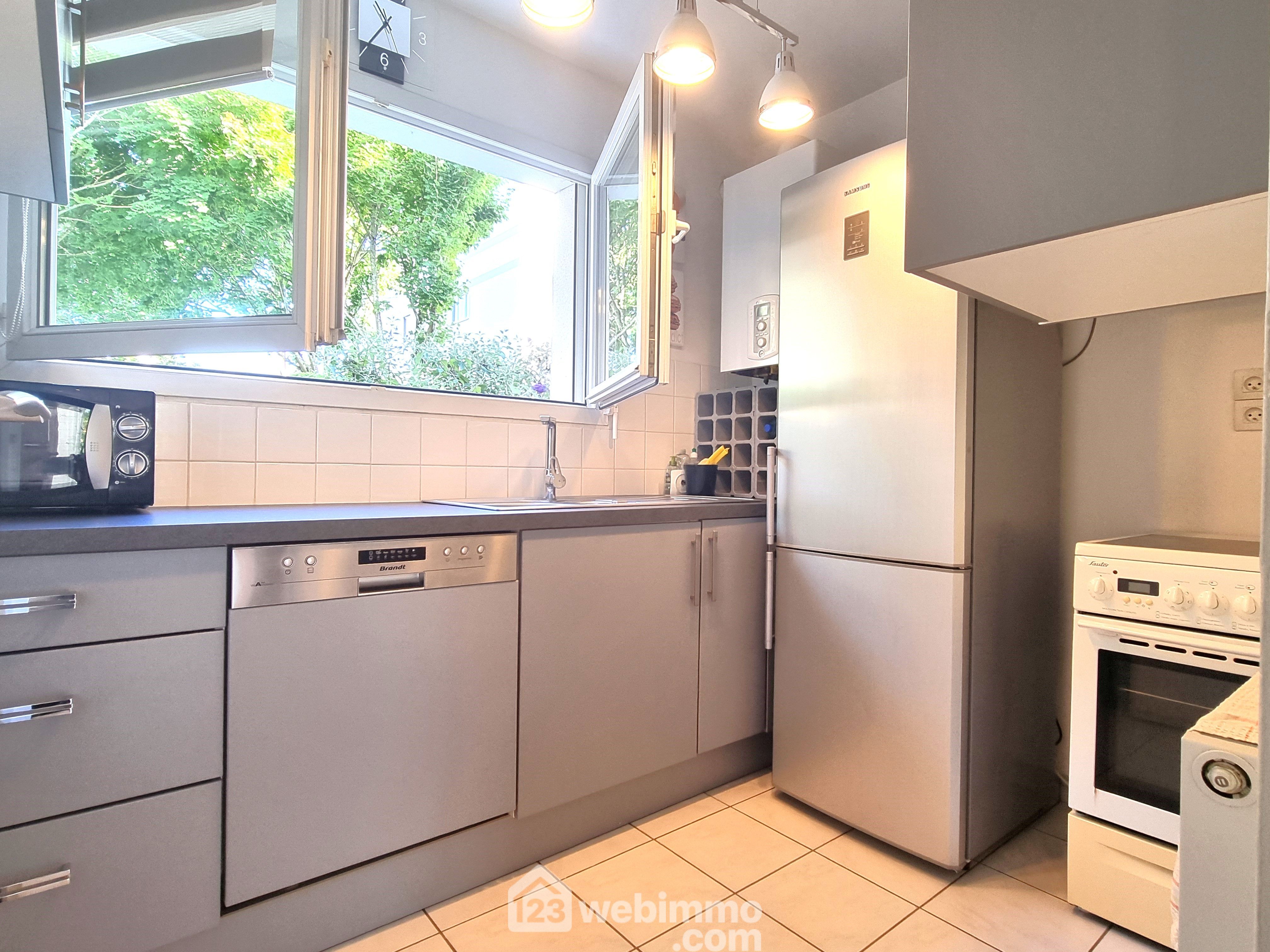 Maison mitoyenne T3 (aucun travaux à prévoir), 61 m2 habitables, 2 chambres. Jardinet avec terrasse, cabanon, places de stationnement.