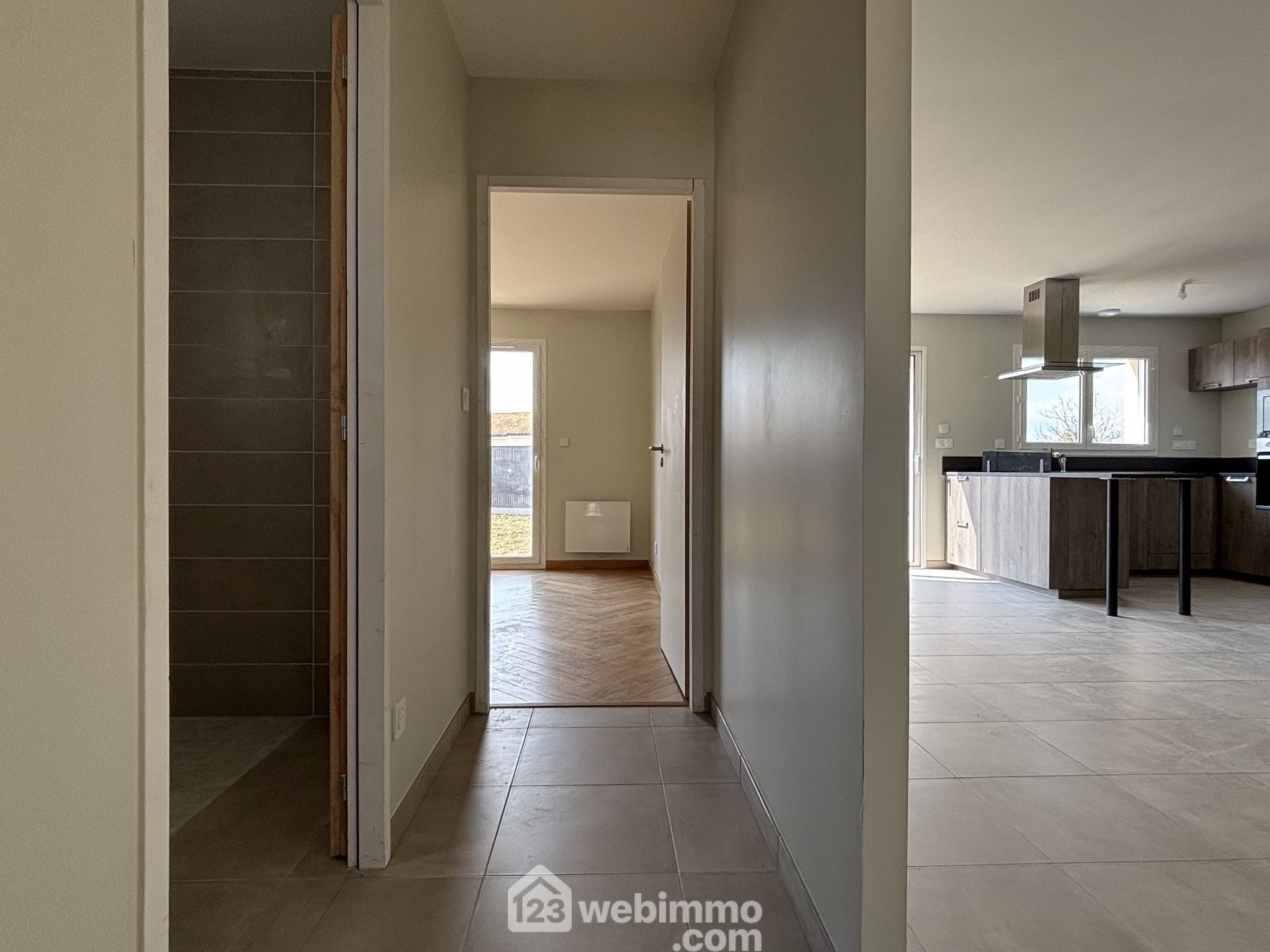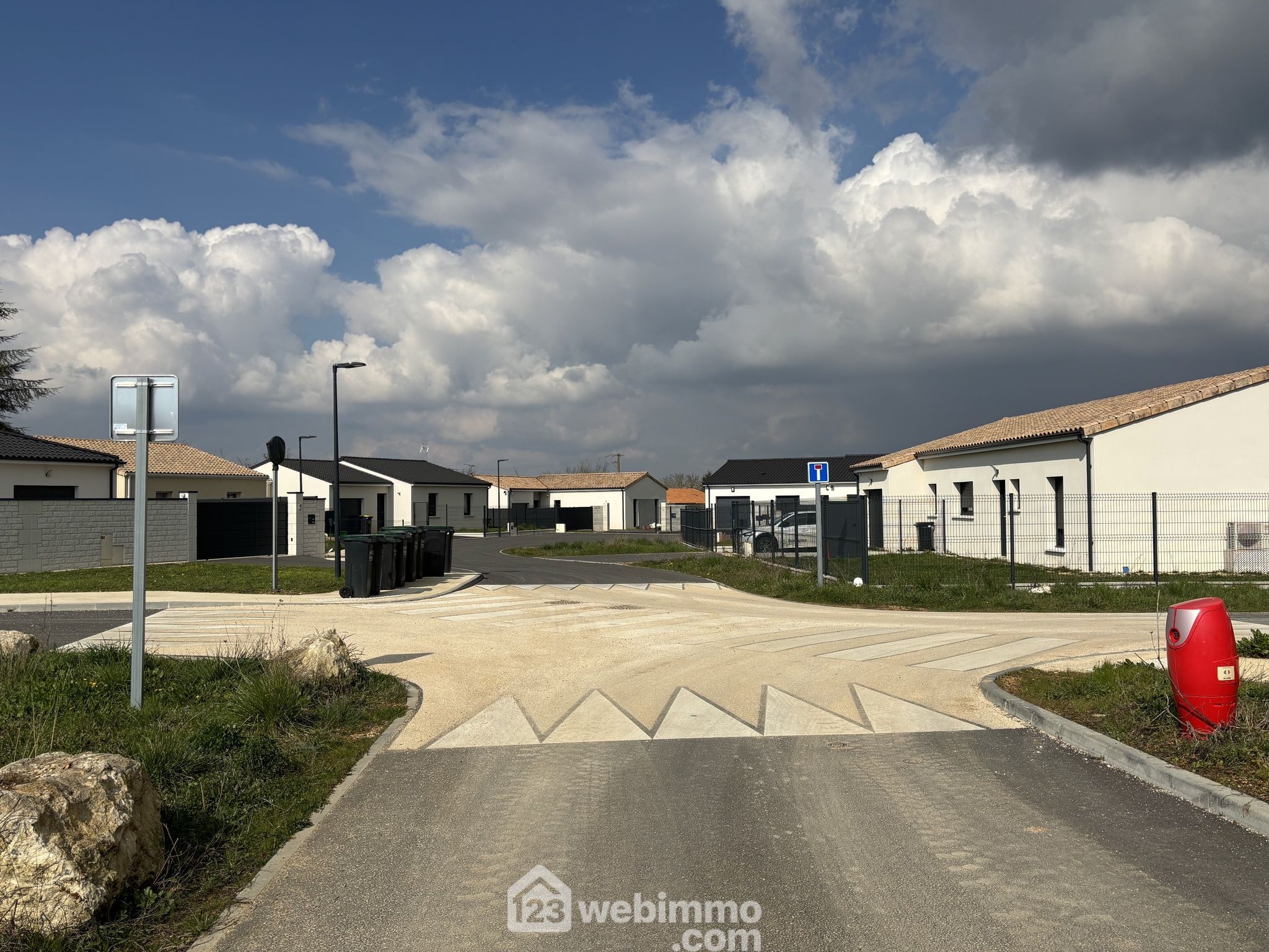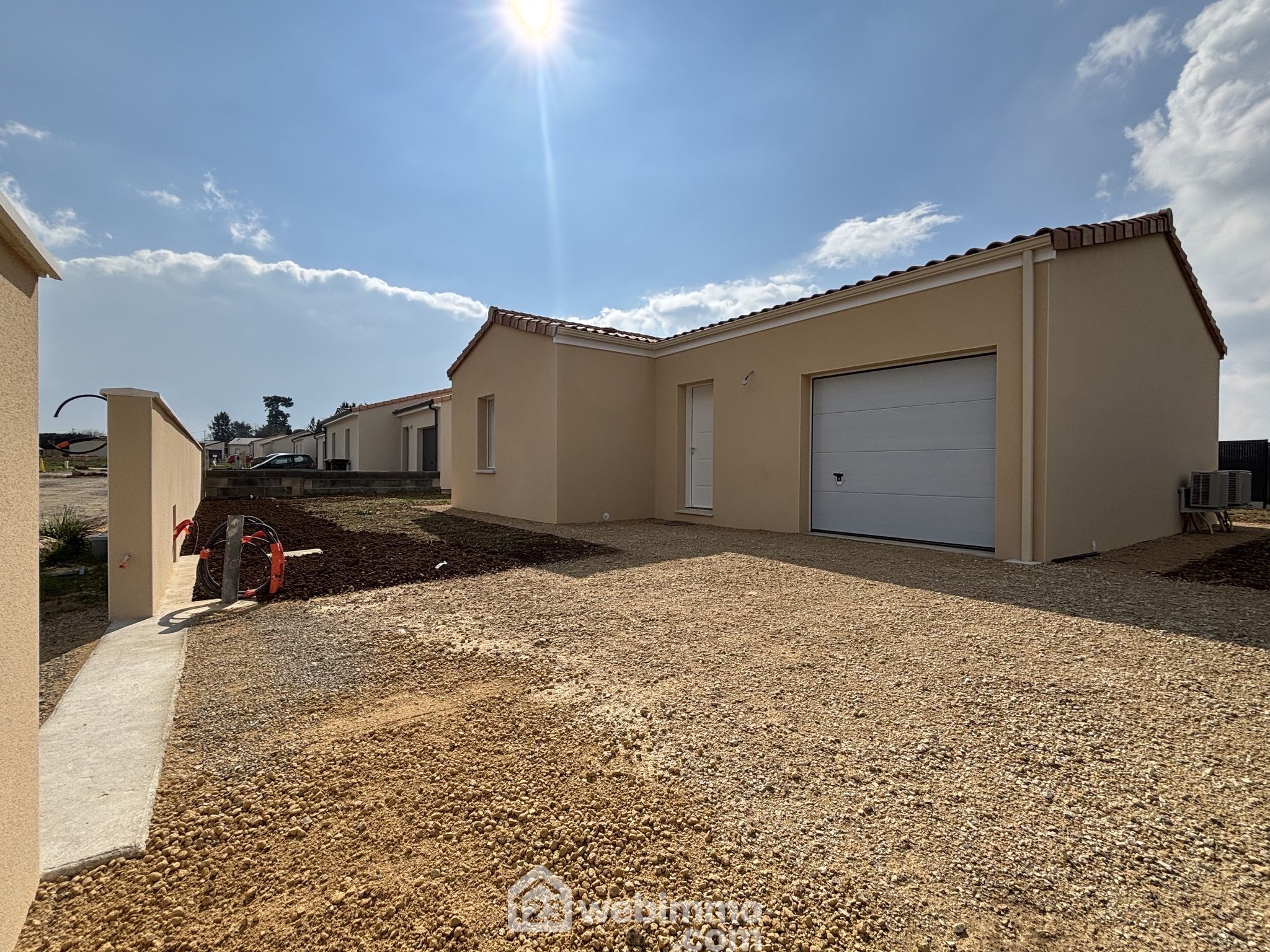 Maison neuve de plain-pied, 3 pièces, 62 m2 habitables, sur terrain clos de 501 m2.