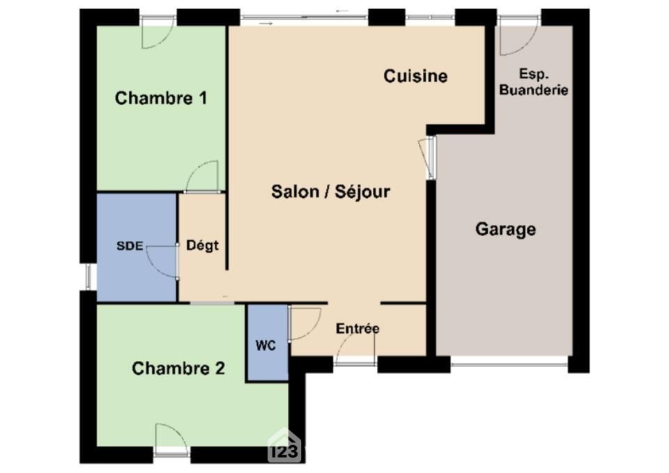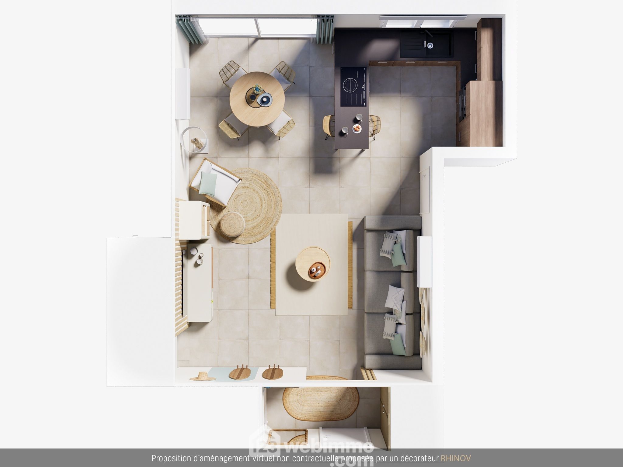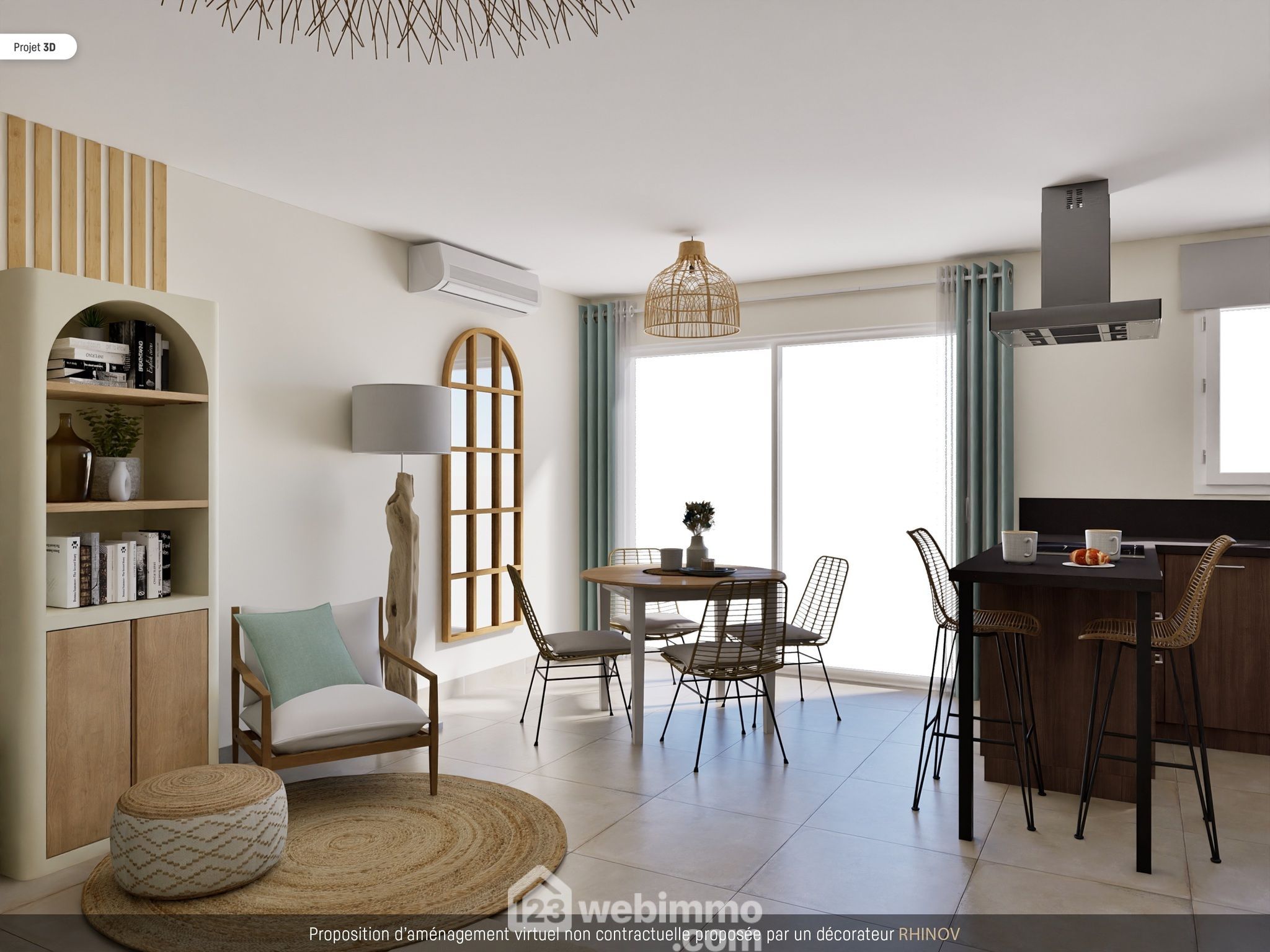 Elle comprend : entrée, salon-séjour avec cuisine ouverte aménagée et équipée, 2 chambres, salle d'eau, WC.