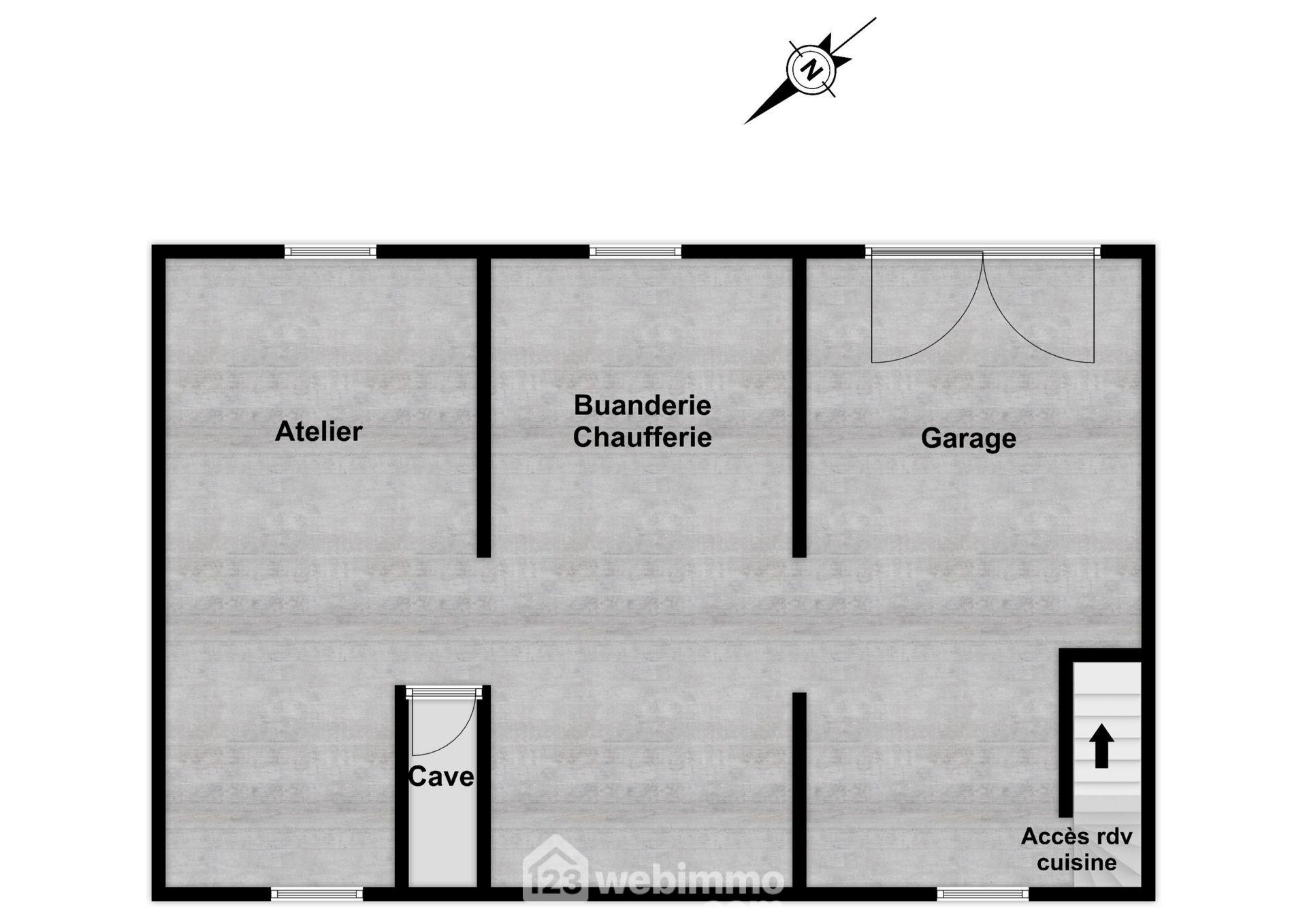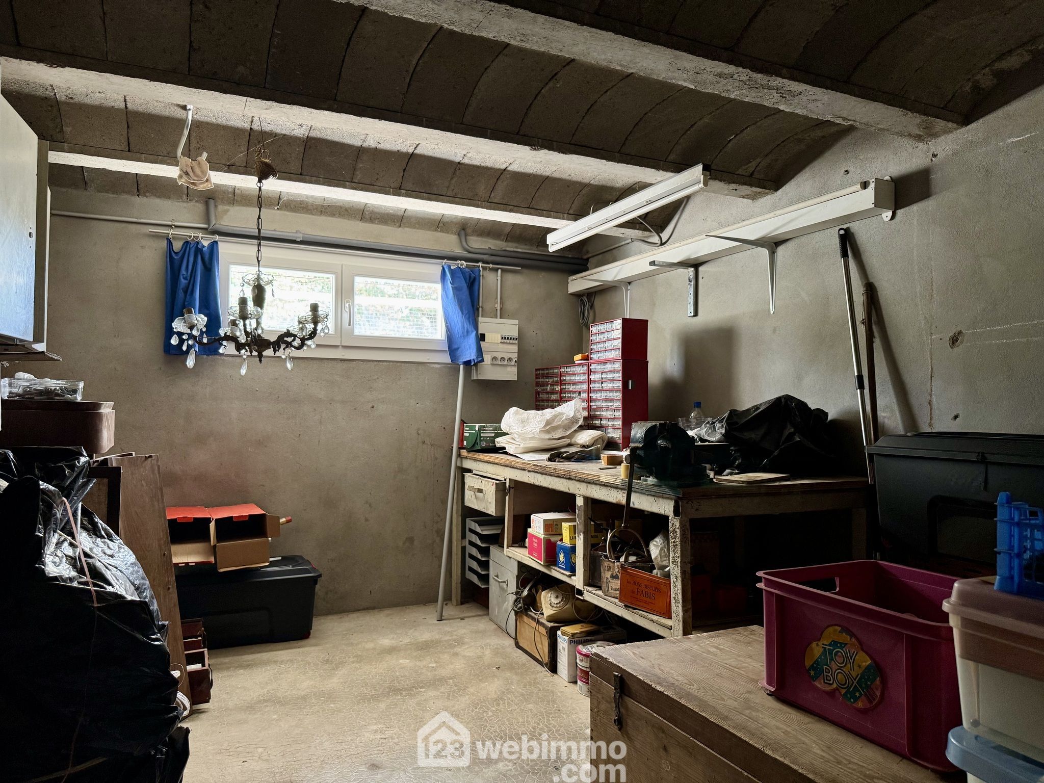 Au sous-sol de 65 m2 : buanderie, atelier, cave et garage.