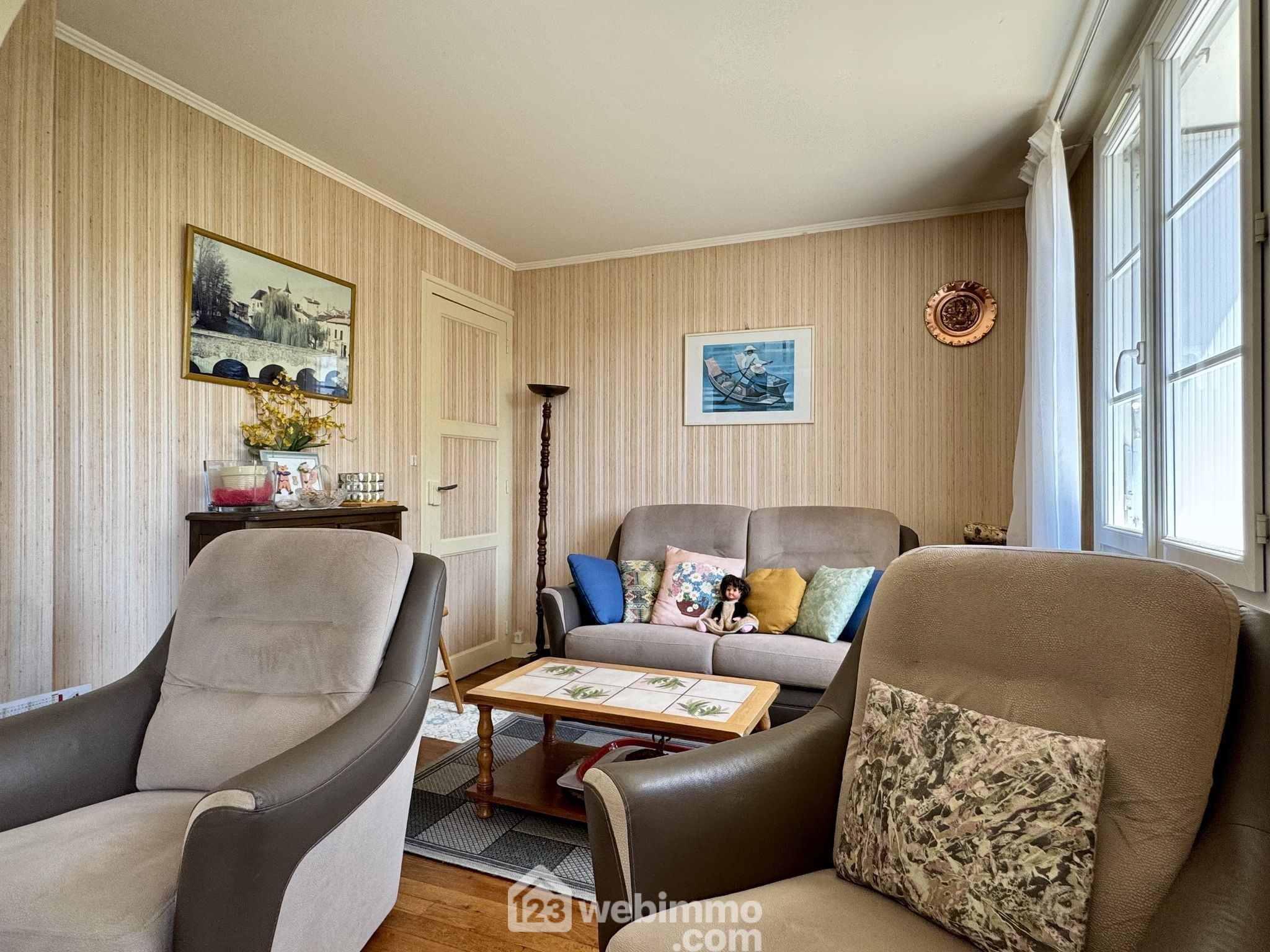 Maison des années 60 comprenant en rez-de-rue : entrée, cuisine indépendante de 9 m2 aménagée, séjour-salon de 25 m2 sur parquet massif d'origine (ces deux pièces peuvent fusionner en une pièce de vie de 35 m2), 2 chambres de 9 à 12 m2 dont l'une sur parquet massif en chêne, salle d'eau et WC indépendant. Terrasse.