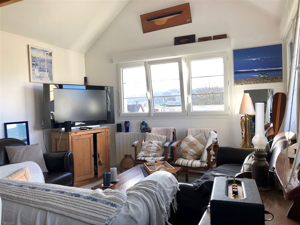 Construite sur un terrain de plus de 400 m2, maison époque après-guerre, pleine de charme, avec extension construite en 2008, exposée Ouest. Comprenant : entrée-cuisine 14m2, 2 chambres de 9 et 16m2 dont 1 avec dressing, séjour de 23 m2 avec vue mer, salle de douche 6m2, wc séparé 1,60m2. Garage semi-enterré de 25m2. Maison très fonctionnelle bénéficiant d'une belle logeabilité. La maison secondaire idéale à 2h30 de la Porte d'Auteuil, 1h10 de Rouen. Photos complémentaires sur dde. Taxe F 650€.