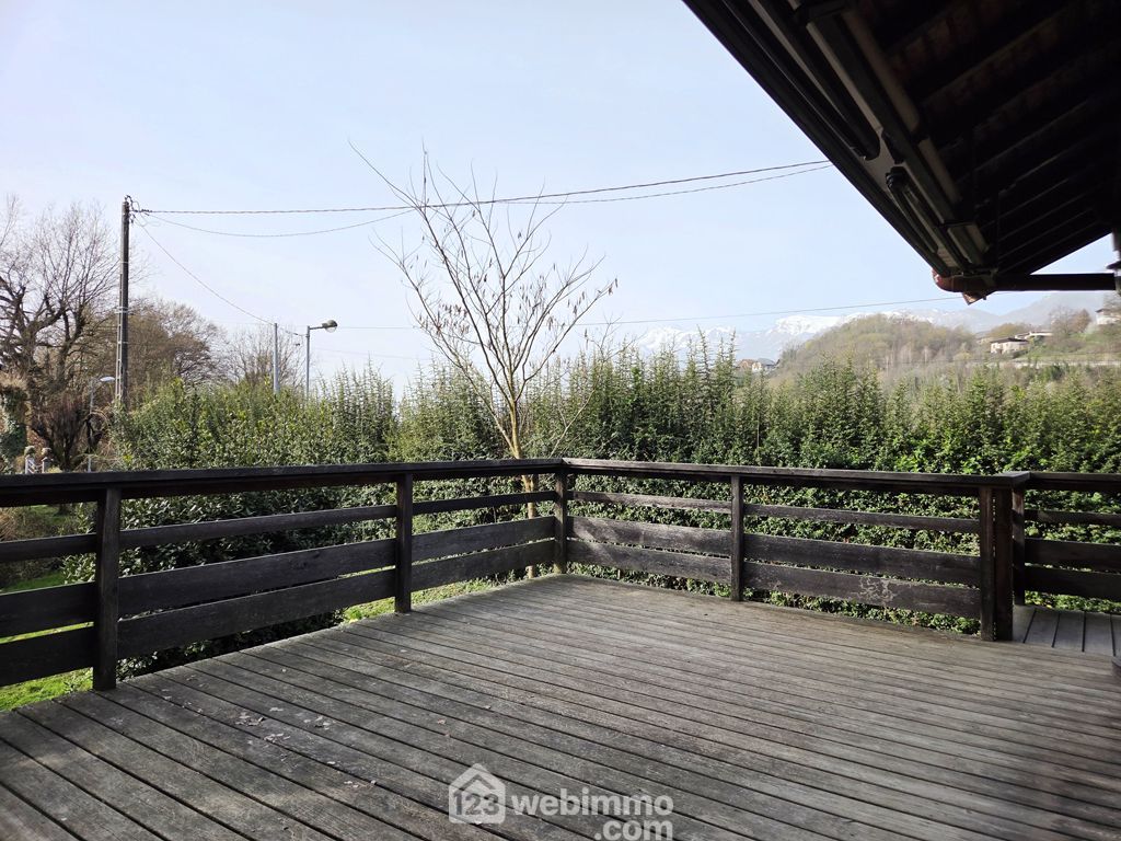 Au premier étage, elle est composée d'une cuisine donnant accès à une grande terrasse exposée plein Sud avec une vue dégagée sur les montagnes. Elle dispose également d'un séjour de 32m² avec une cheminée à foyer ouvert pour une ambiance chaleureuse en hiver ainsi qu'un balcon exposé Ouest.