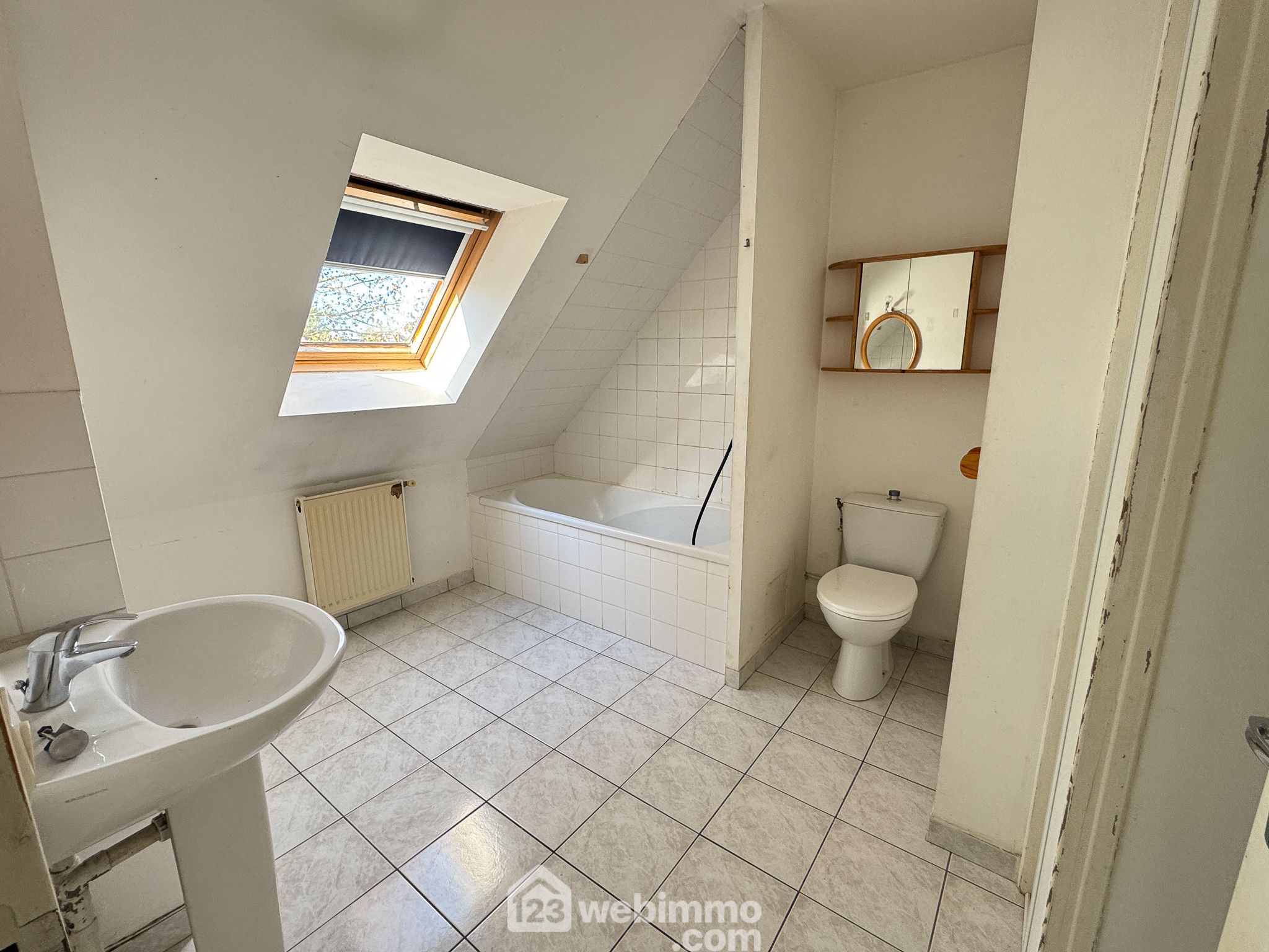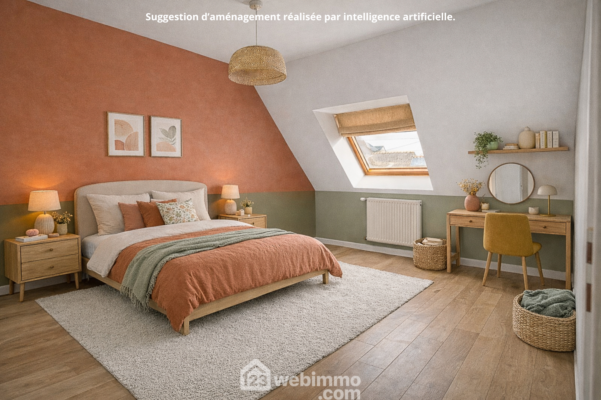 À l’étage, le palier distribue trois chambres lumineuses ainsi qu’une salle de bain avec WC.
