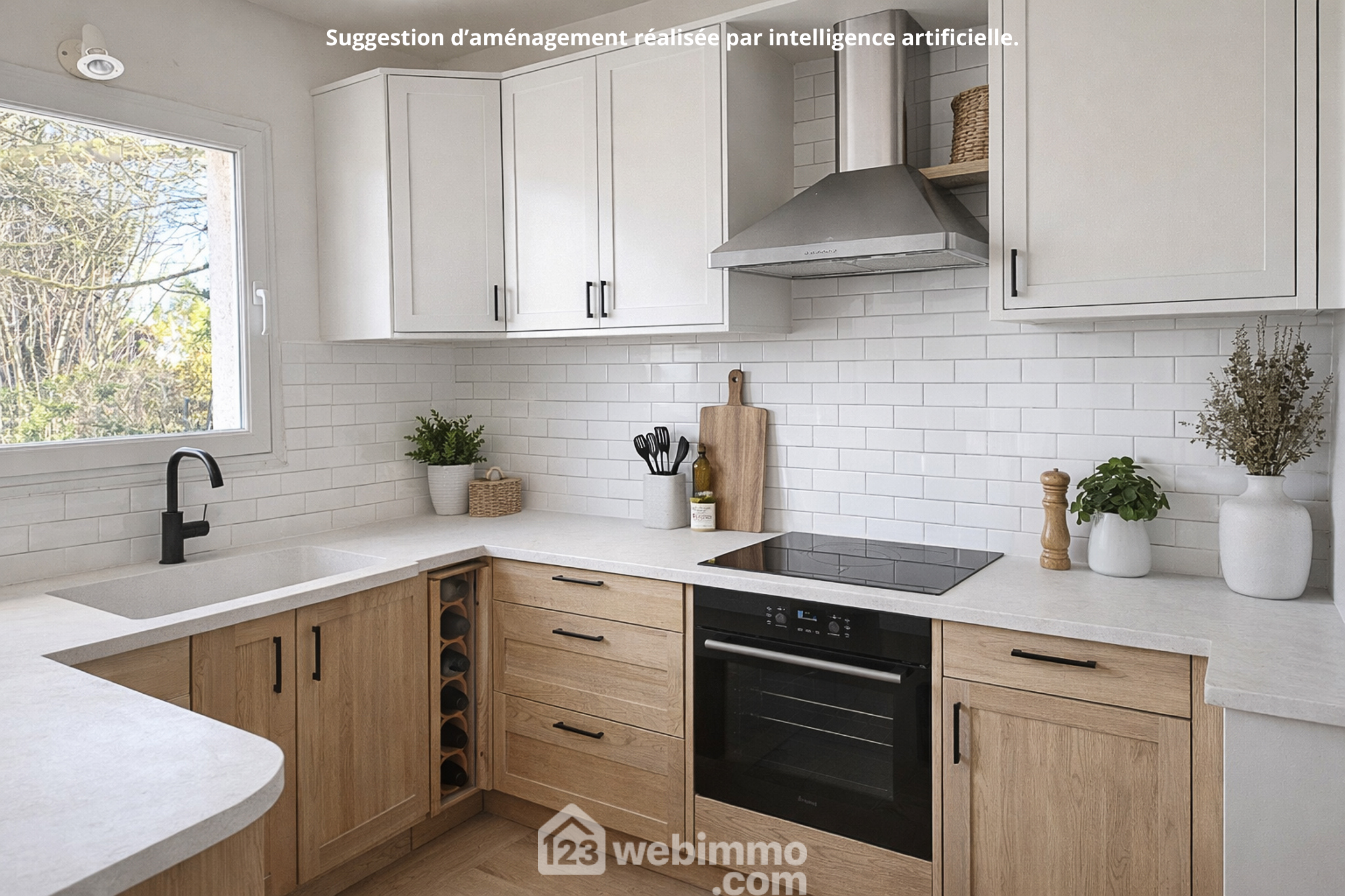 Au rez-de-chaussée, vous profitez d’une pièce de vie lumineuse ouverte sur la cuisine, créant un espace convivial et traversant. Une buanderie vient compléter l’organisation du quotidien. Le garage attenant apporte un réel confort de stationnement et de rangement.
