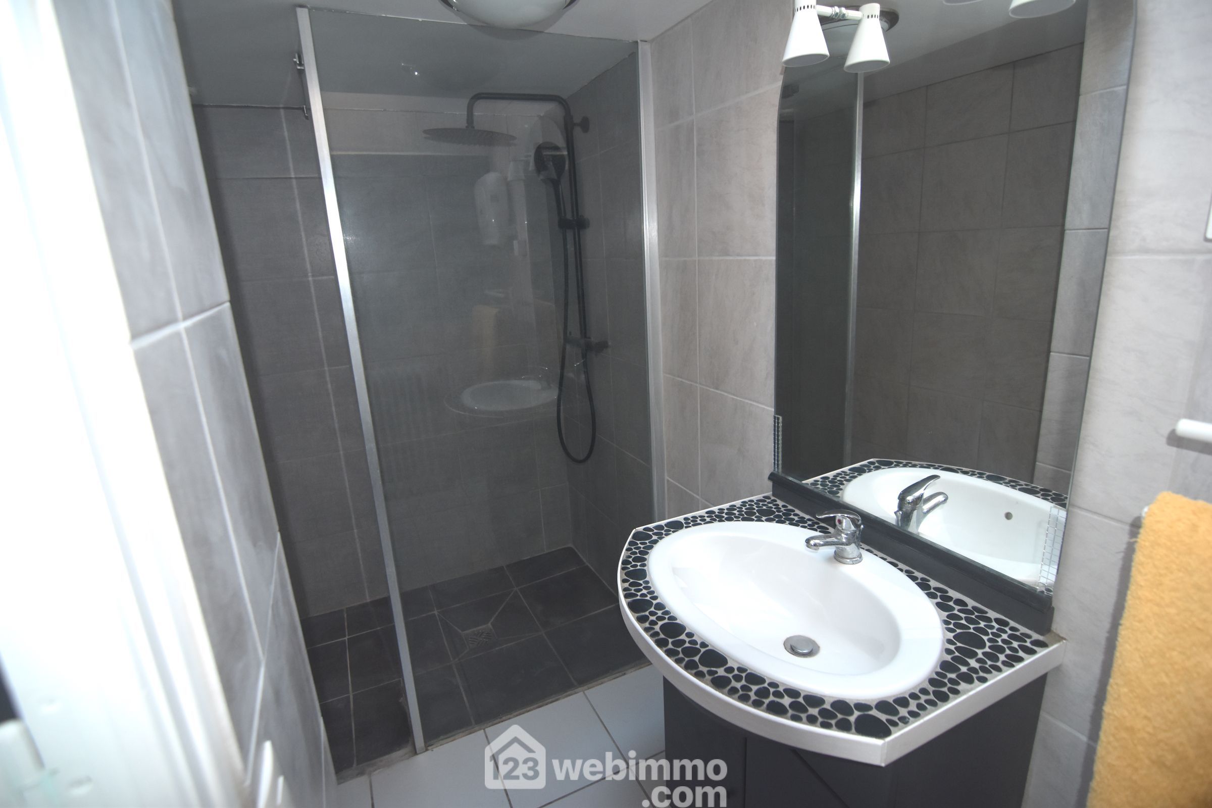 Cuisine neuve, moderne, aménagée et équipée avec électroménager sous garantie, salle d’eau neuve également, WC séparé.